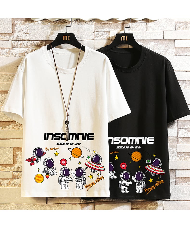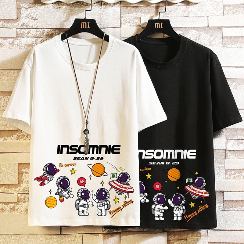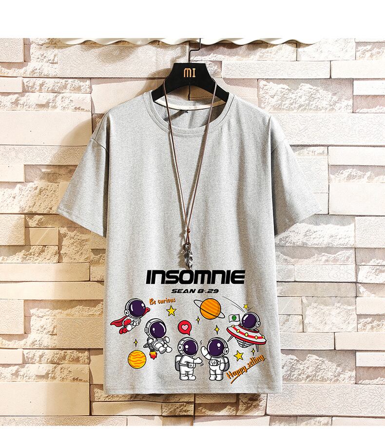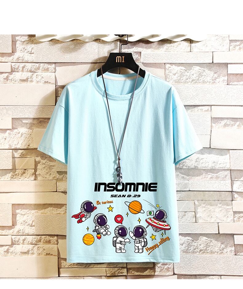 Cartoon short-sleeved t-shirt men's tide brand trend summer loose cotton half-sleeved men's youth student ice silk t-shirt コットン サマー 夏物 シルク Tシャツ doushi88437286228