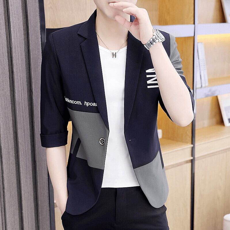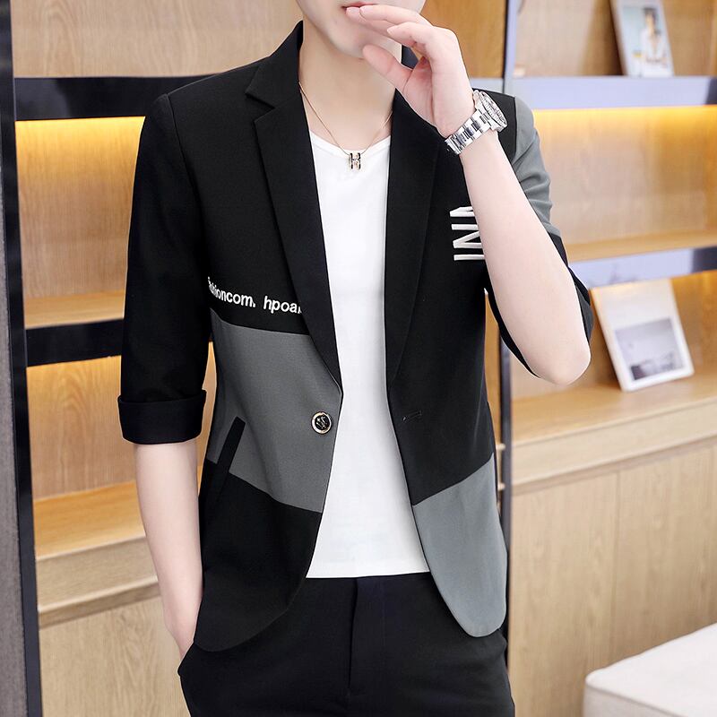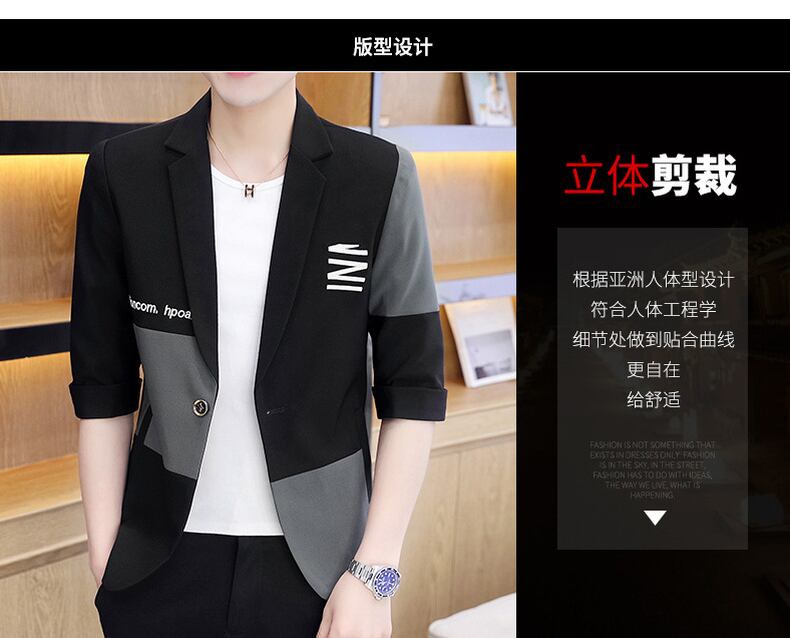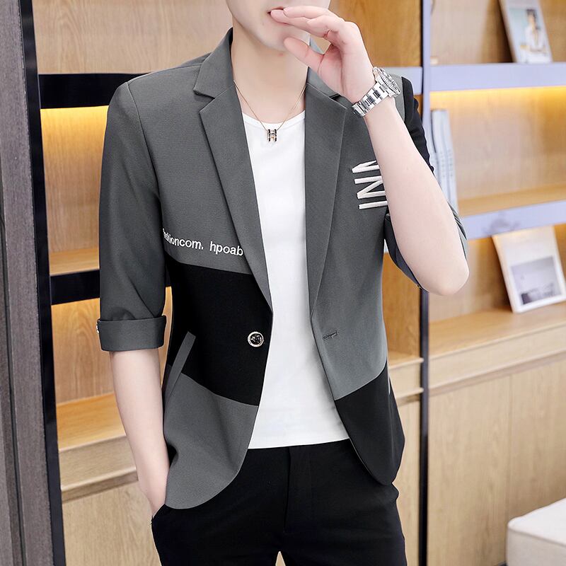 2022 new summer men's three-quarter sleeve suit tide ruffian handsome slim top middle sleeve casual fashion small suit カジュアル サマー 夏物 スリム doushi86407955719