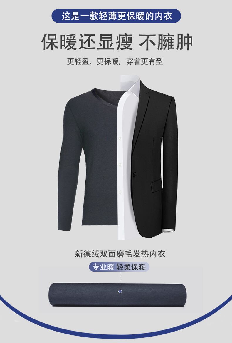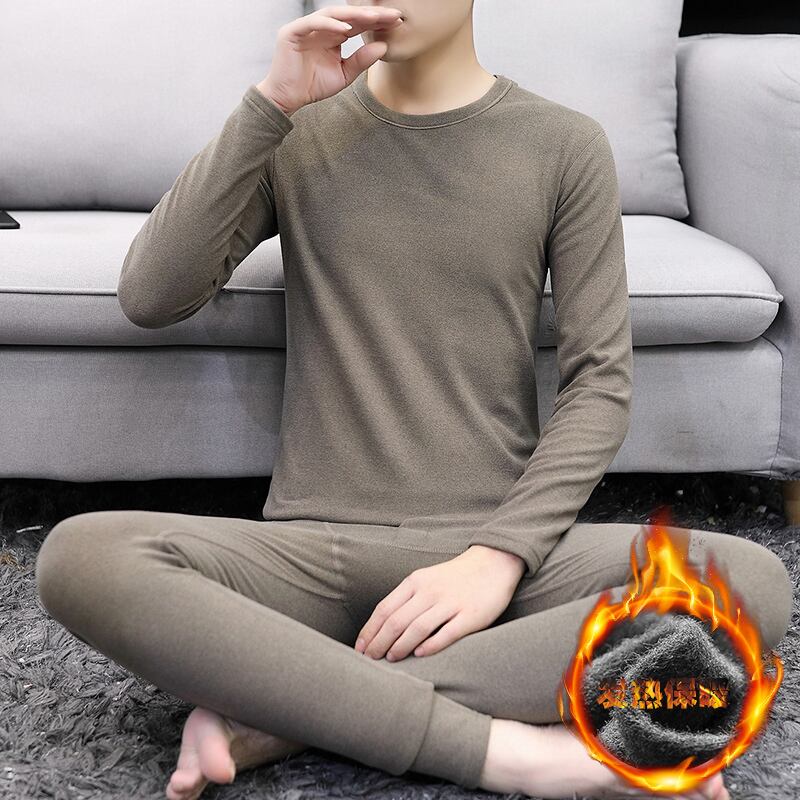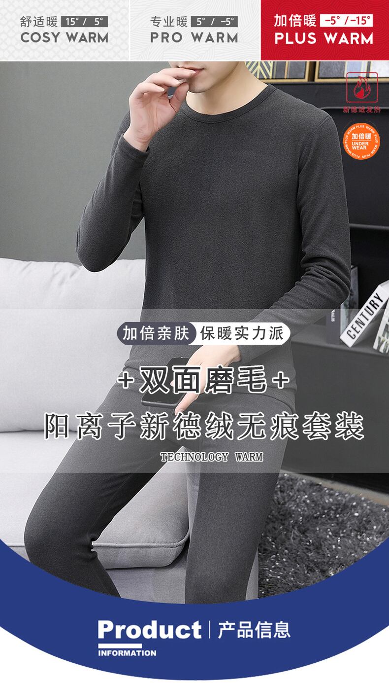 Men's double-sided velvet bottoming shirt thermal underwear suit youth inner wear autumn clothes seamless plus velvet round neck T-shirt men オータム 秋物 Oネック Tシャツ doushi42614588441