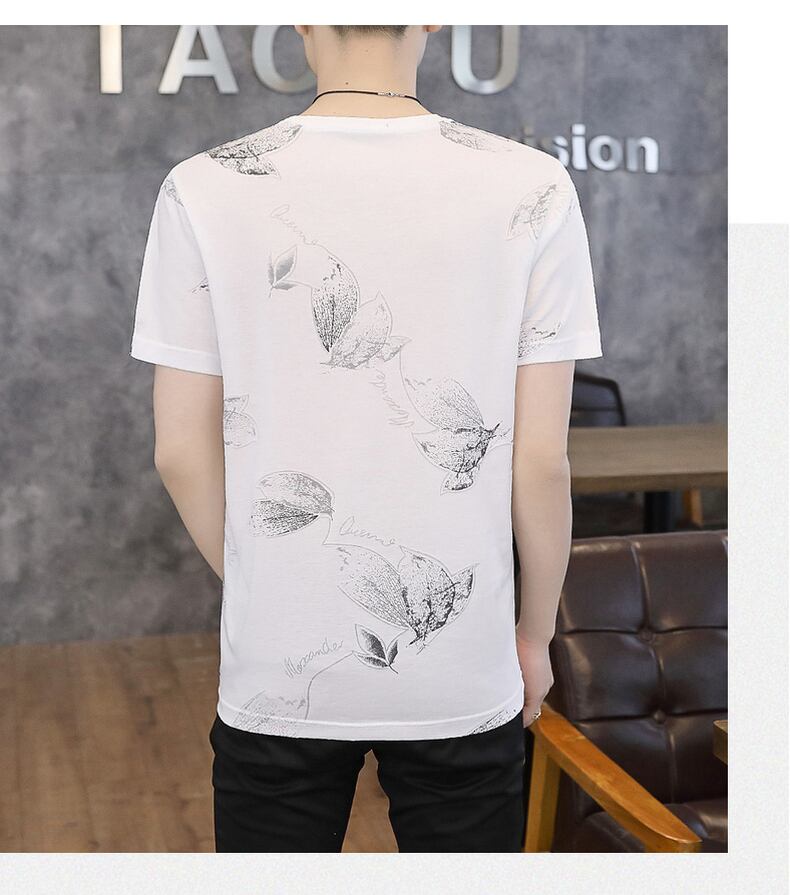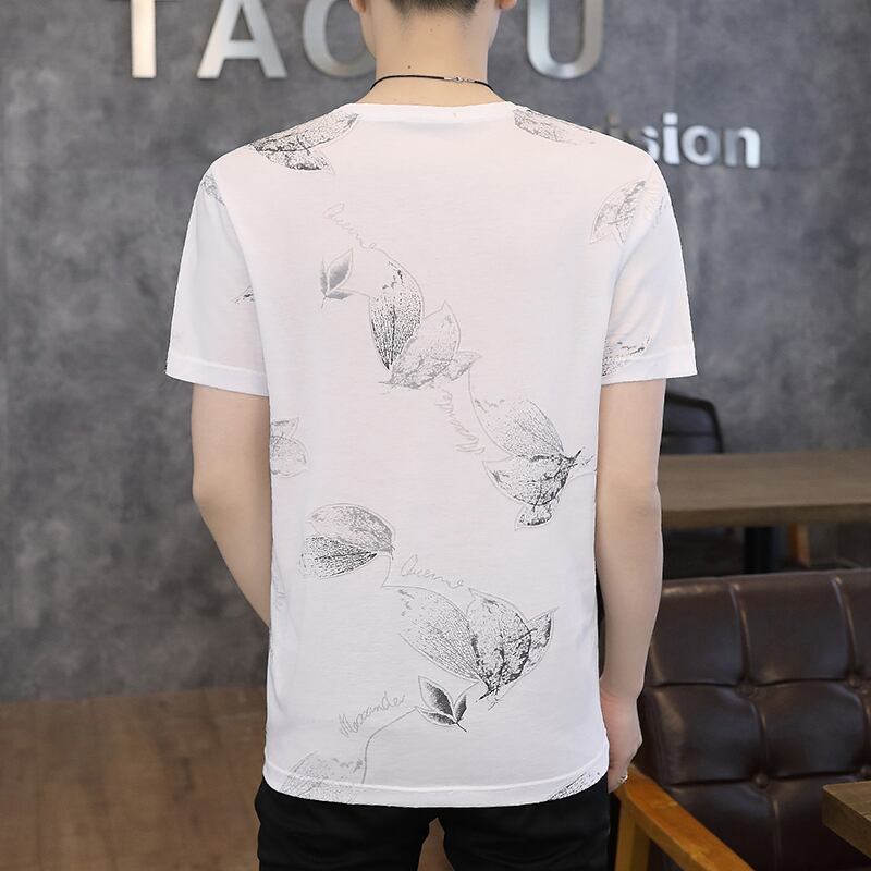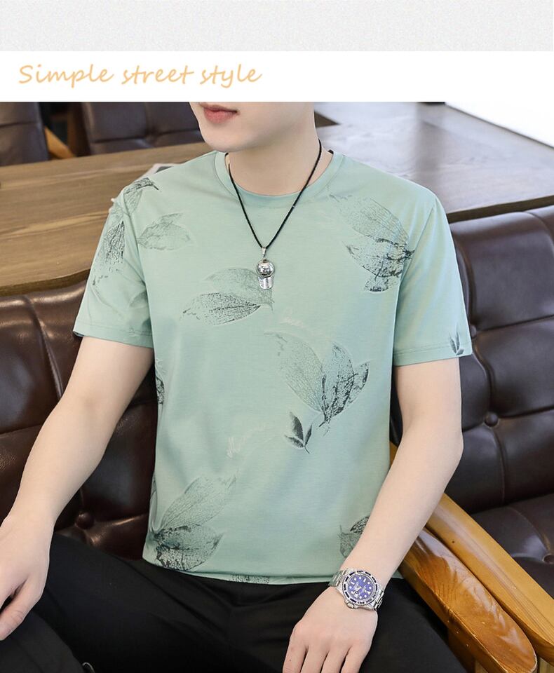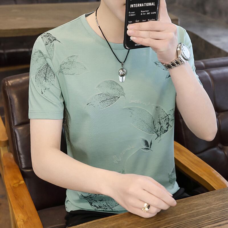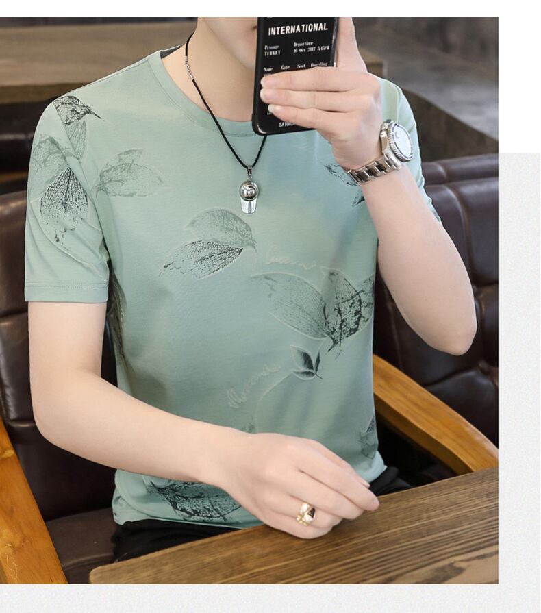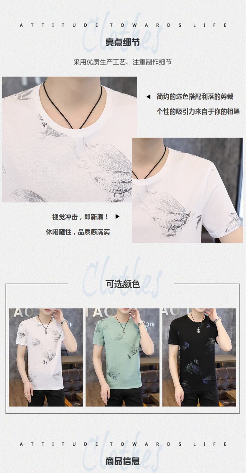 Summer tide brand ice short-sleeved t-shirt men's ice silk cotton elastic half-sleeved slim trend youth men's shirt t-shirt コットン エラスティック 伸縮 サマー 夏物 スリム シルク Tシャツ doushi94036793806