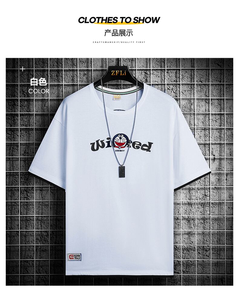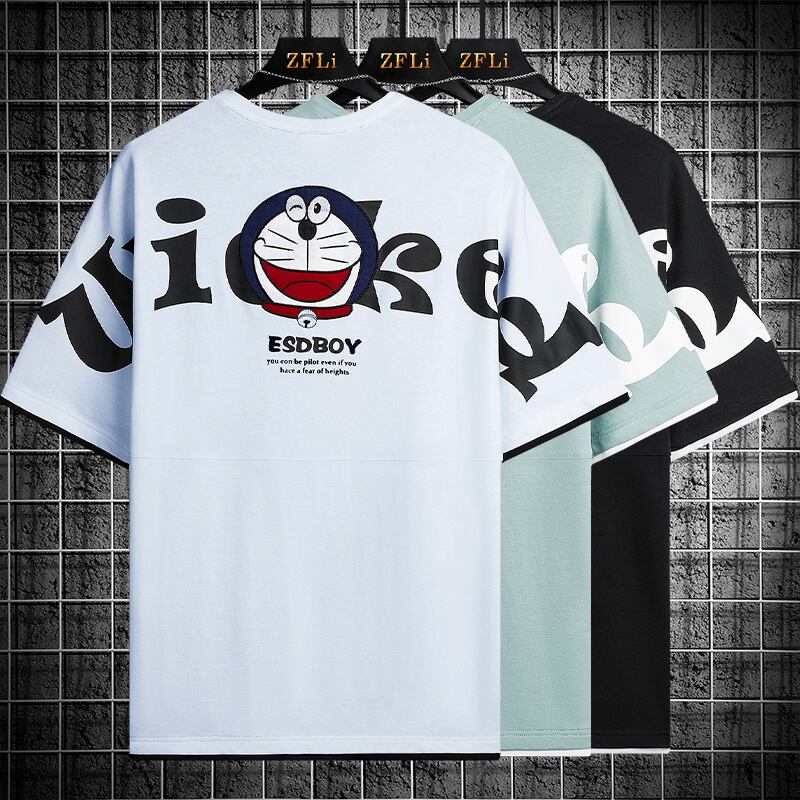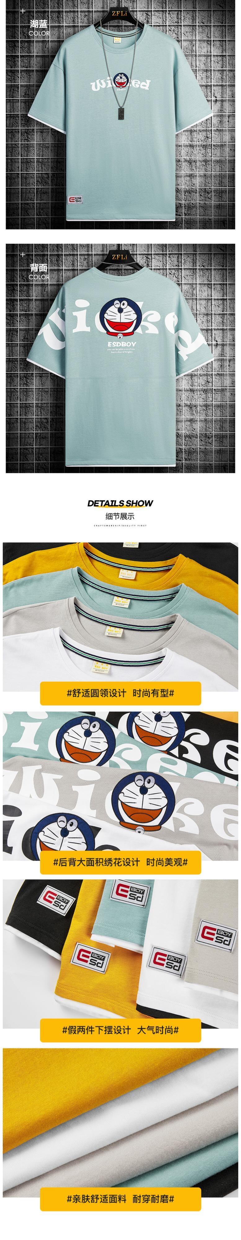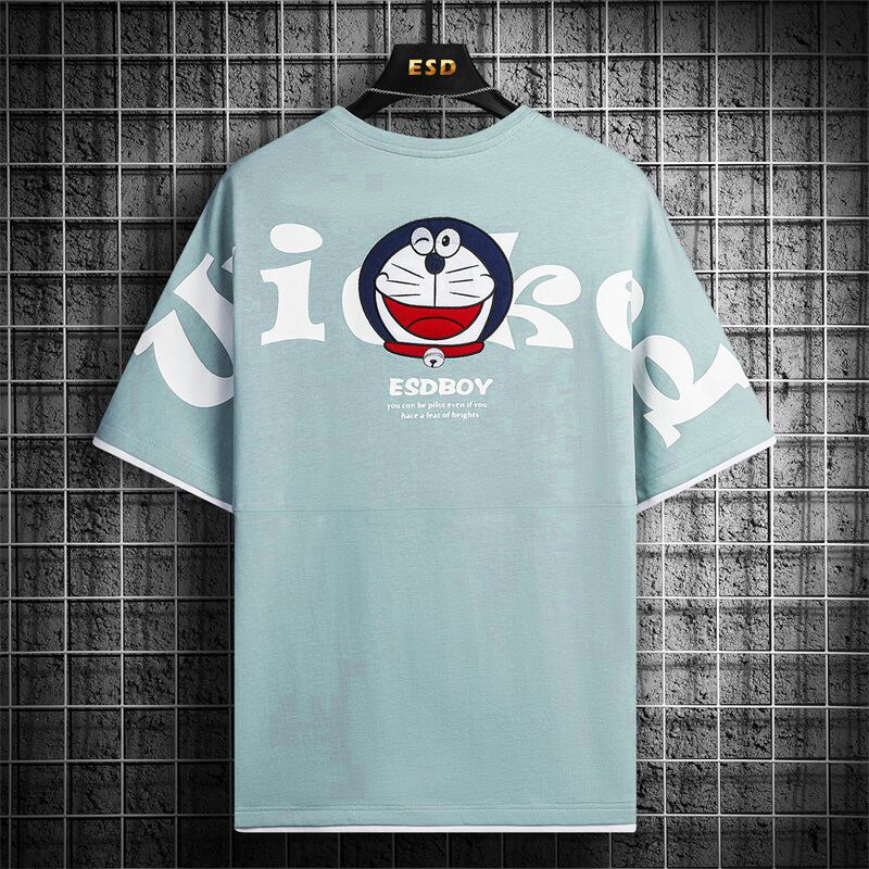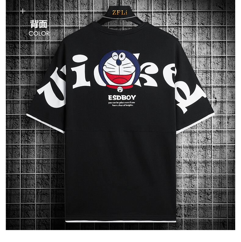 Embroidered cotton short-sleeved t-shirt men's tide brand trend national tide fake two half-sleeved men's t-shirt ice silk loose clothes T レッド コットン 刺繍 シルク Tシャツ doushi14095053933
