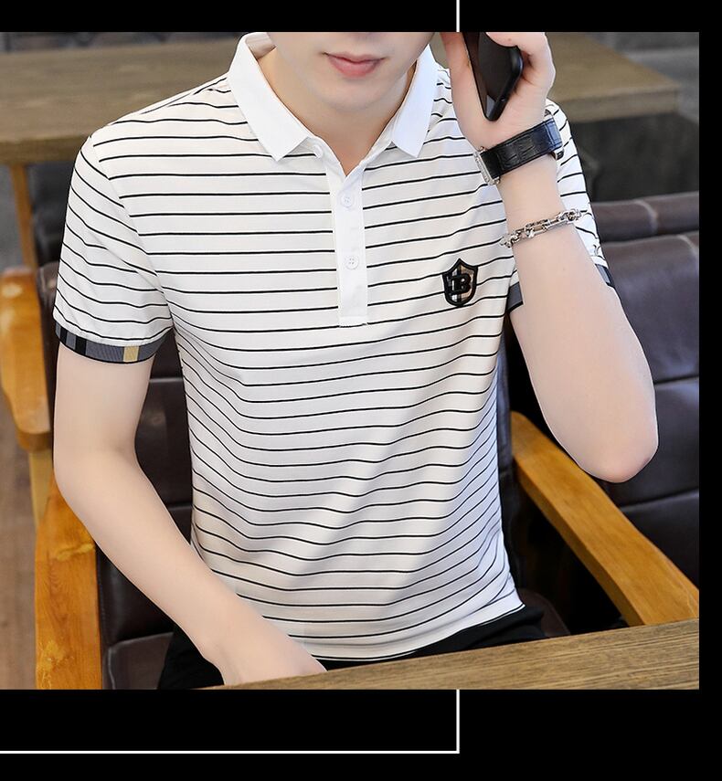Lapel Cotton Short Sleeve T-Shirt Men's Summer Lapel T-Shirt with Collar POLO Shirt Half Sleeve Striped Youth Top ショート コットン 半袖 ハーフスリーブ サマー 夏物 ストライプ Tシャツ doushi33389665961