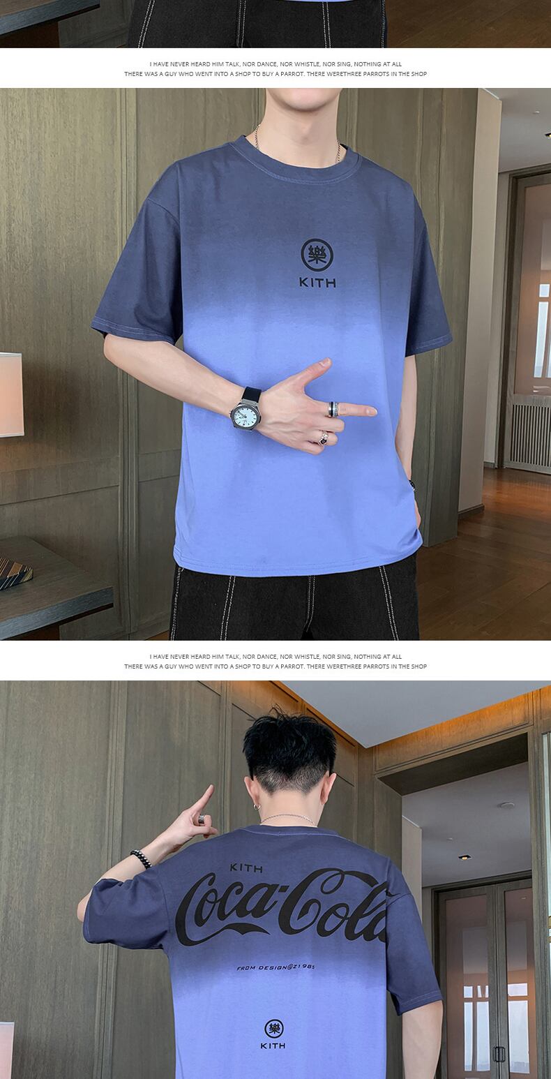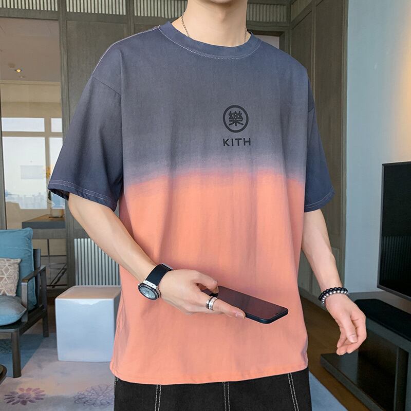 Men's short-sleeved t-shirt summer 2022 new loose tide brand ins gradient half-sleeved cotton t-shirt men's clothes コットン サマー 夏物 Tシャツ doushi28818282371