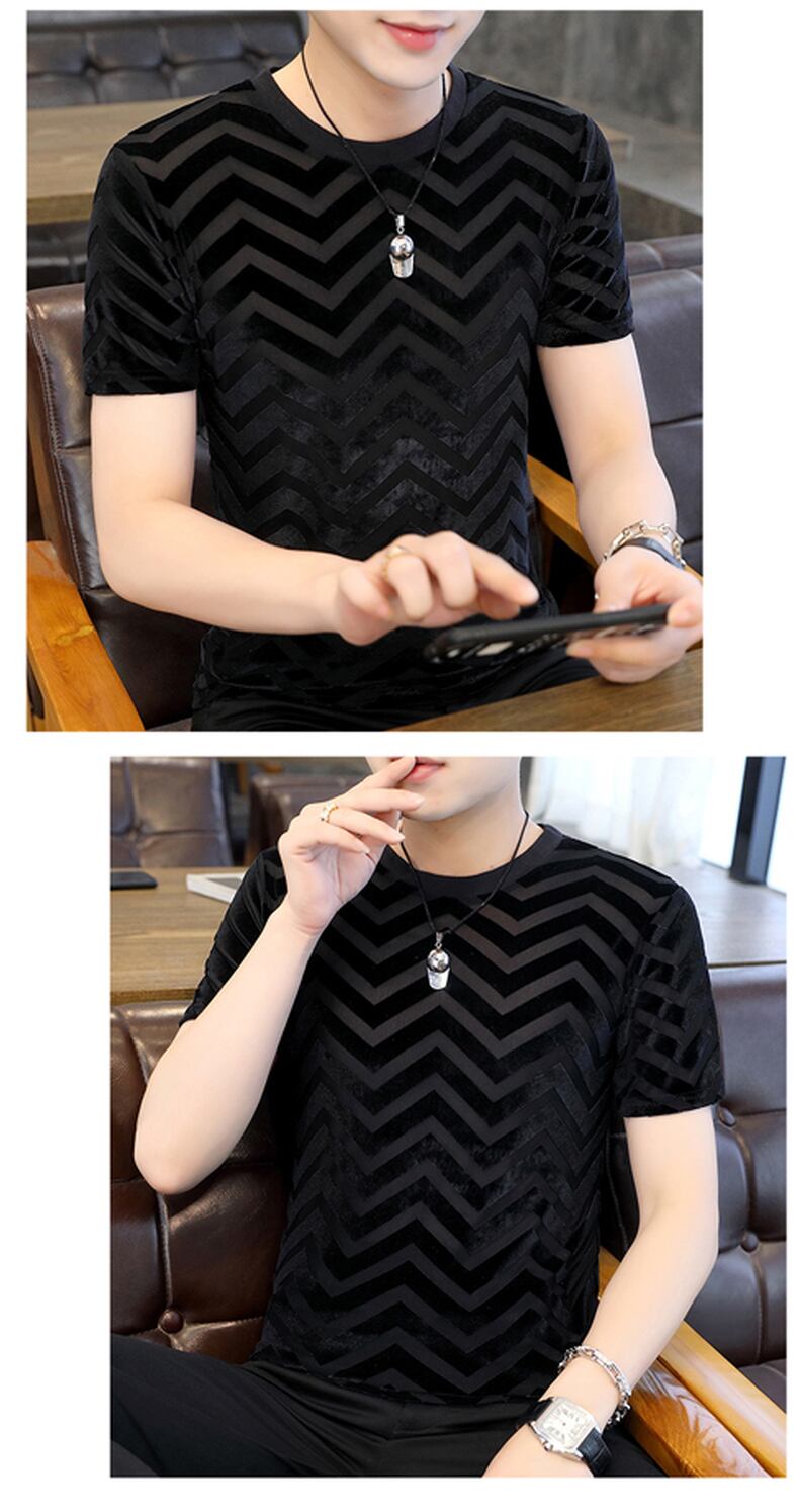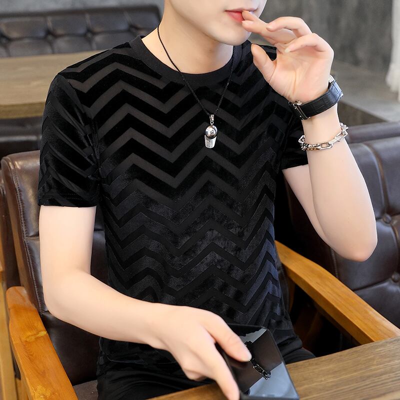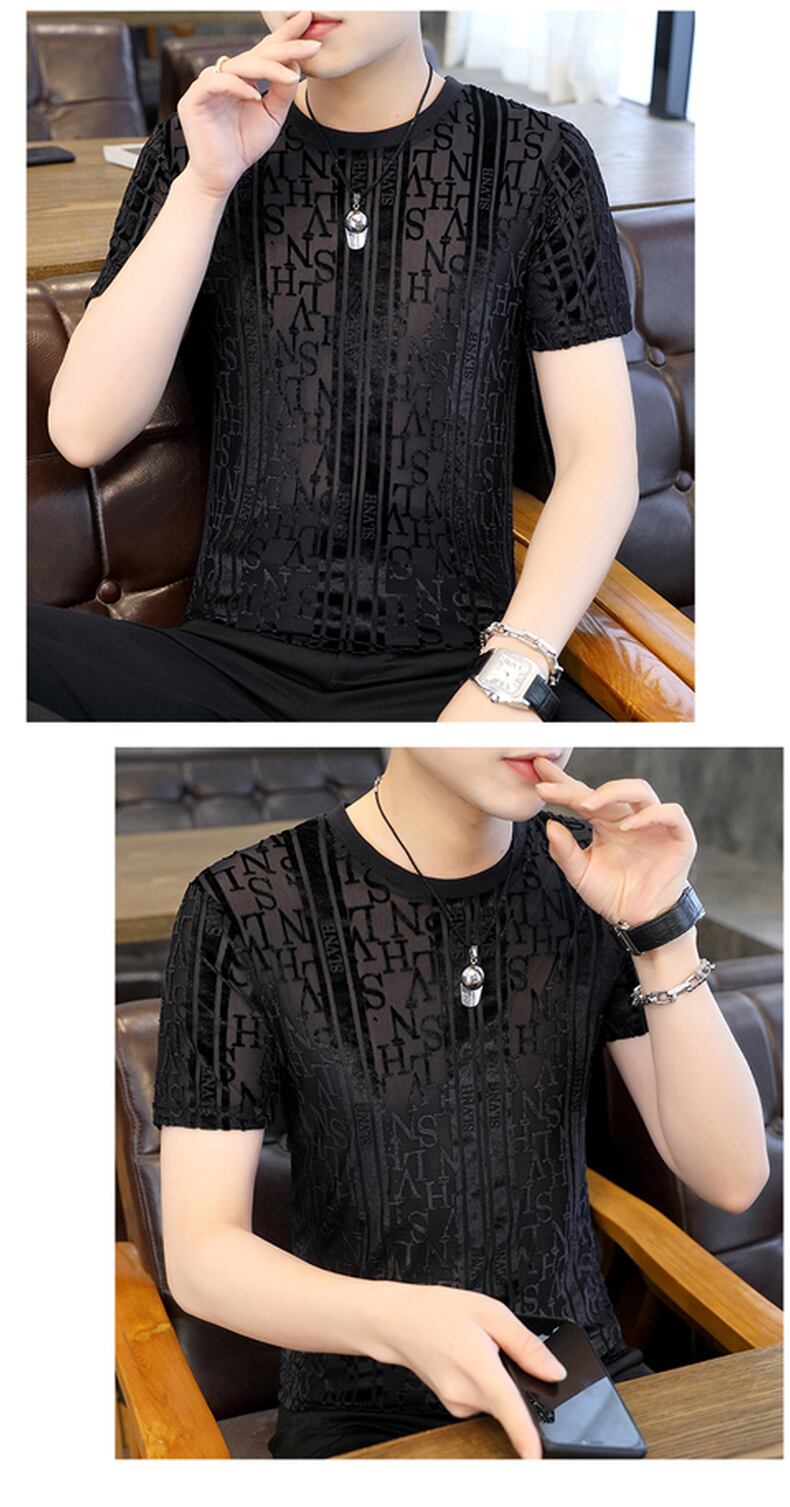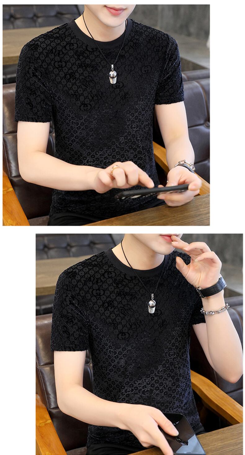 Summer ice silk short-sleeved T-shirt men's round neck tide brand personality hollow printing half-sleeved thin handsome trend t-shirt サマー 夏物 Oネック シルク Tシャツ doushi63922152511