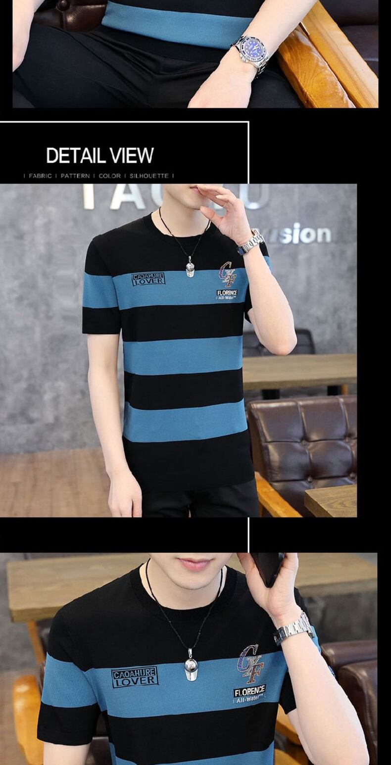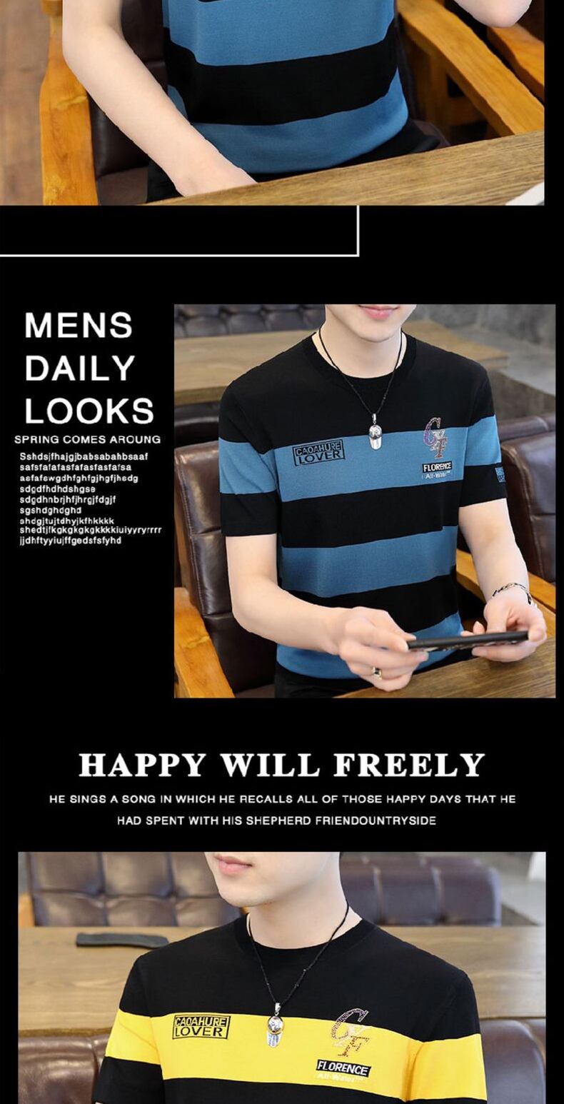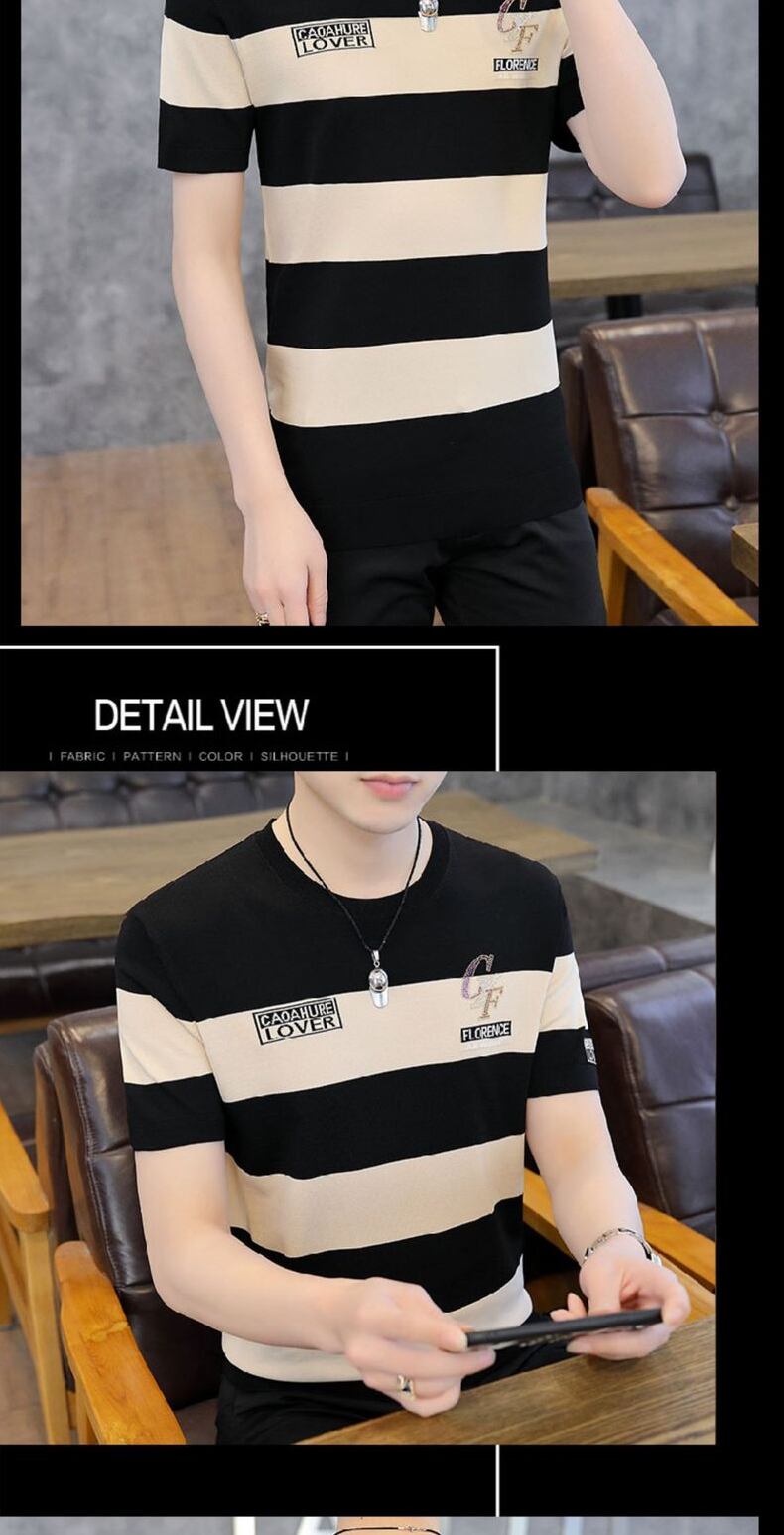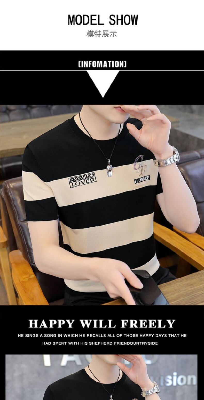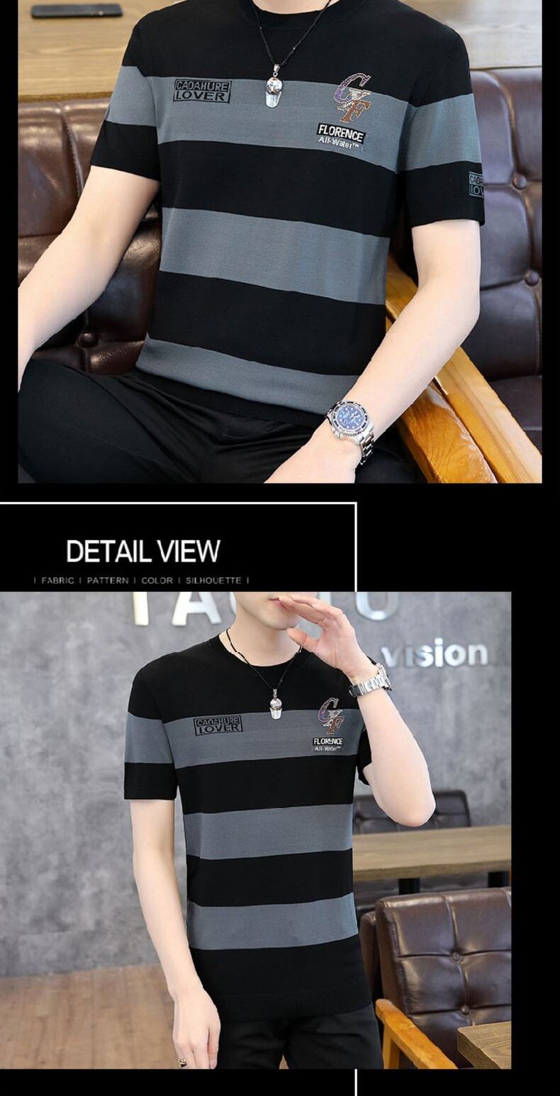 Short-sleeved t-shirt men's summer ice silk sweater striped top 2022 new high-end men's half-sleeved ice-sensing t-shirt サマー 夏物 ストライプ シルク Tシャツ doushi8478839241