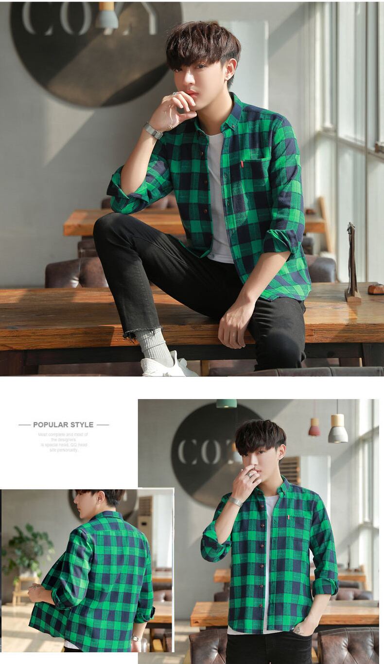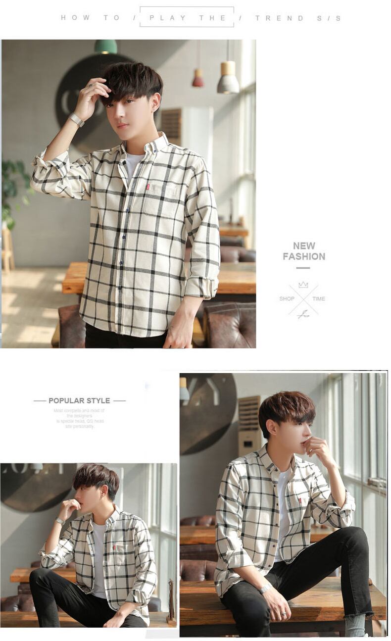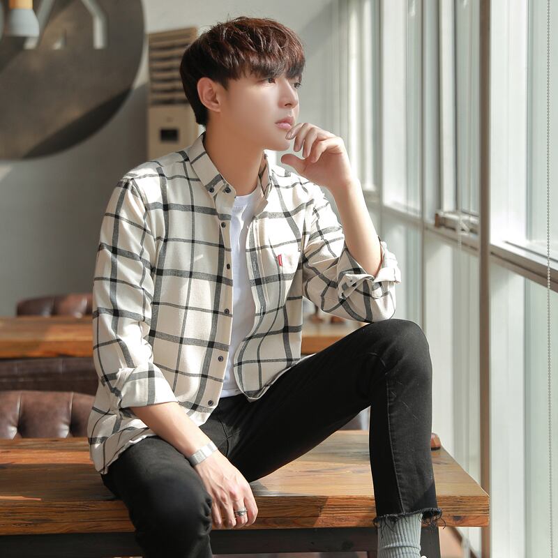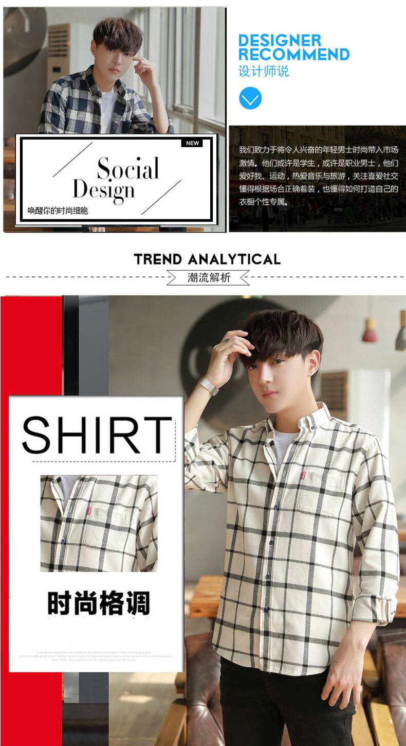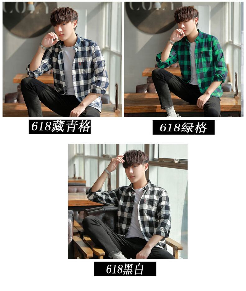 Plaid shirt men's spring and autumn casual jacket Hong Kong style ese men's long-sleeved flannel shirt trend top ロング カジュアル スプリング 春物 オータム 秋物 doushi1406300405