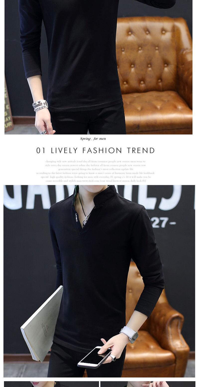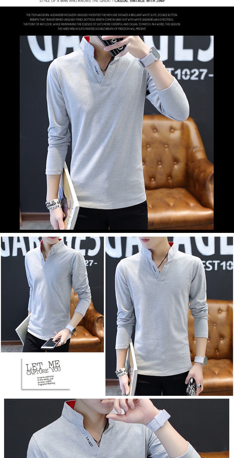 Men's t-shirt long-sleeved V-neck top shirt 2022 spring version slim short-sleeved bottoming shirt trendy sweater ロング スプリング 春物 Vネック スリム Tシャツ doushi57045569801
