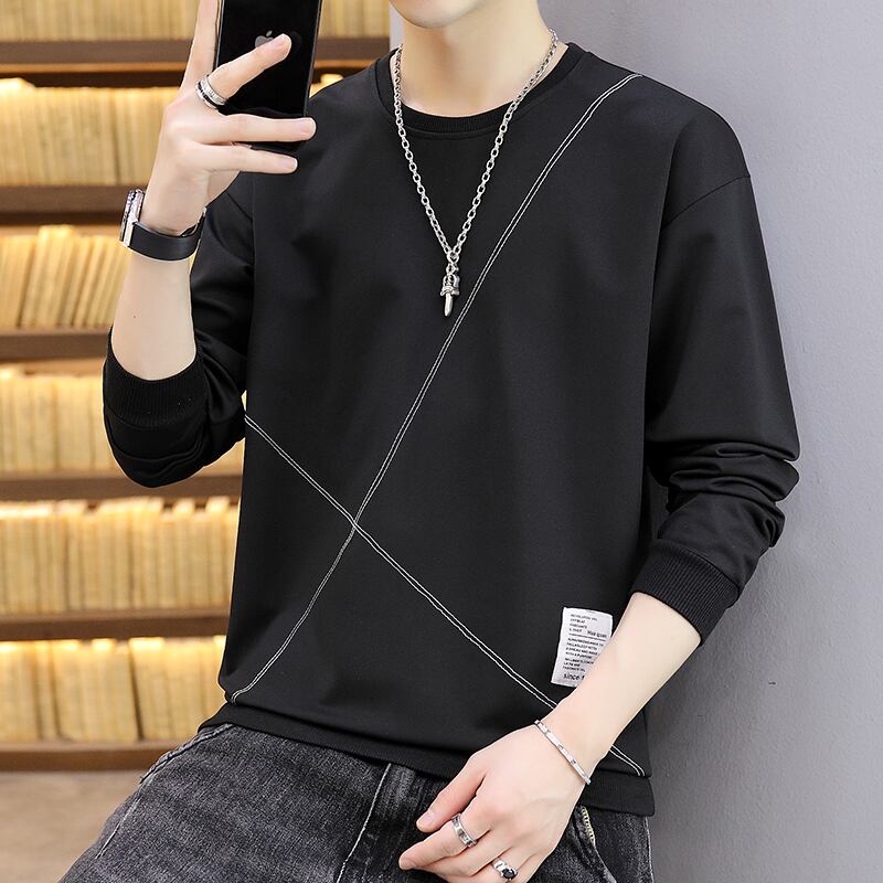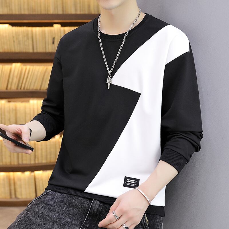 Round neck sweater men's spring and autumn small shirt 2022 new color matching trend loose youth long-sleeved t-shirt bottoming shirt ロング スプリング 春物 オータム 秋物 Oネック Tシャツ doushi49179657713