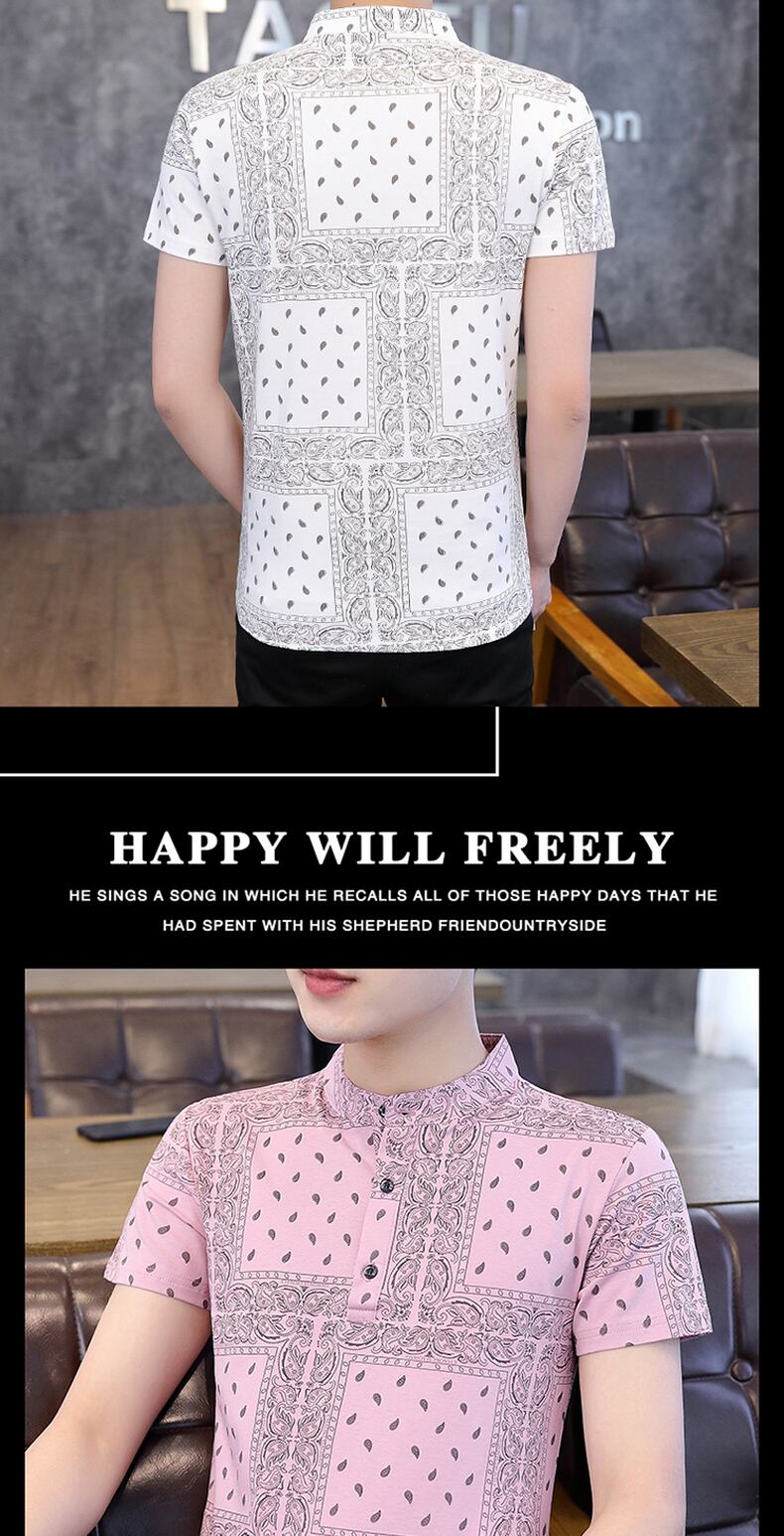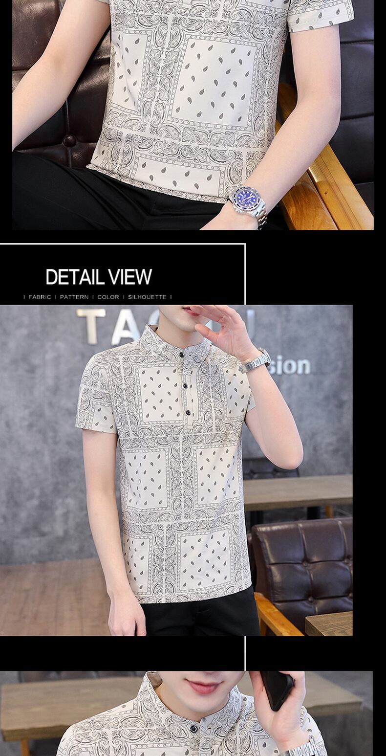 Trendy handsome stand-collar short-sleeved men's T-shirt 2022 summer new trendy brand ins t-shirt POLO shirt slim clothes サマー 夏物 スリム Tシャツ doushi73713913149