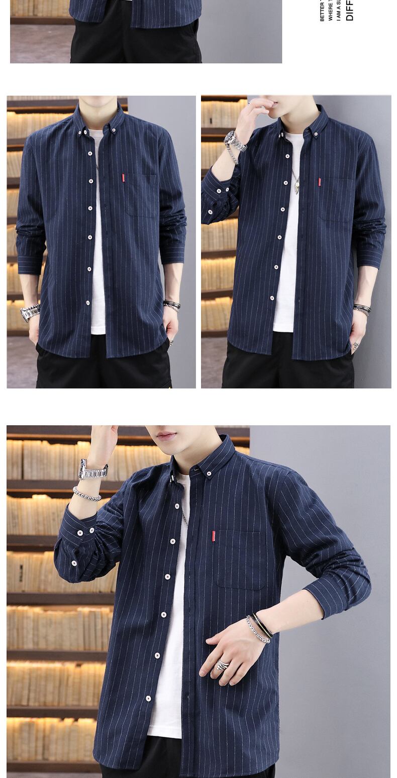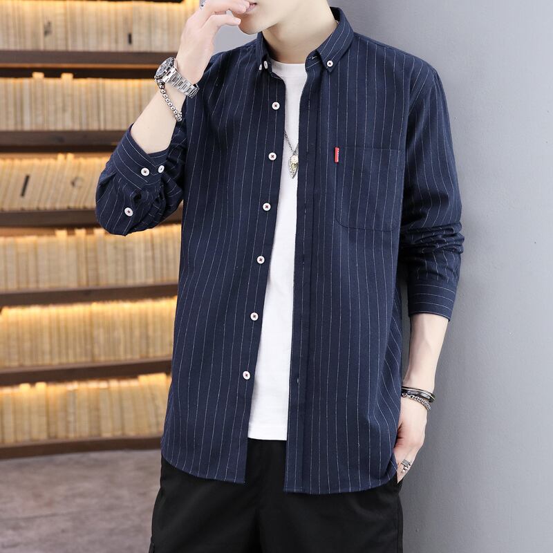 Men's striped shirt spring and autumn casual jacket 2022 new version of the trend shirt handsome and versatile top clothes カジュアル スプリング 春物 オータム 秋物 ストライプ doushi63210560254