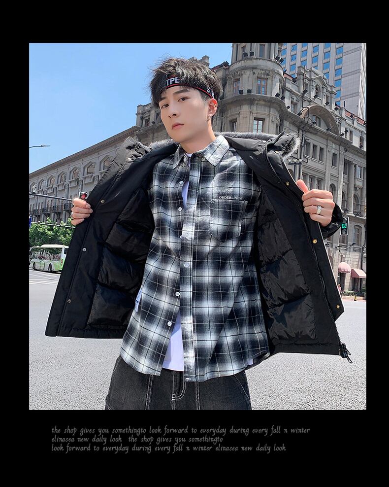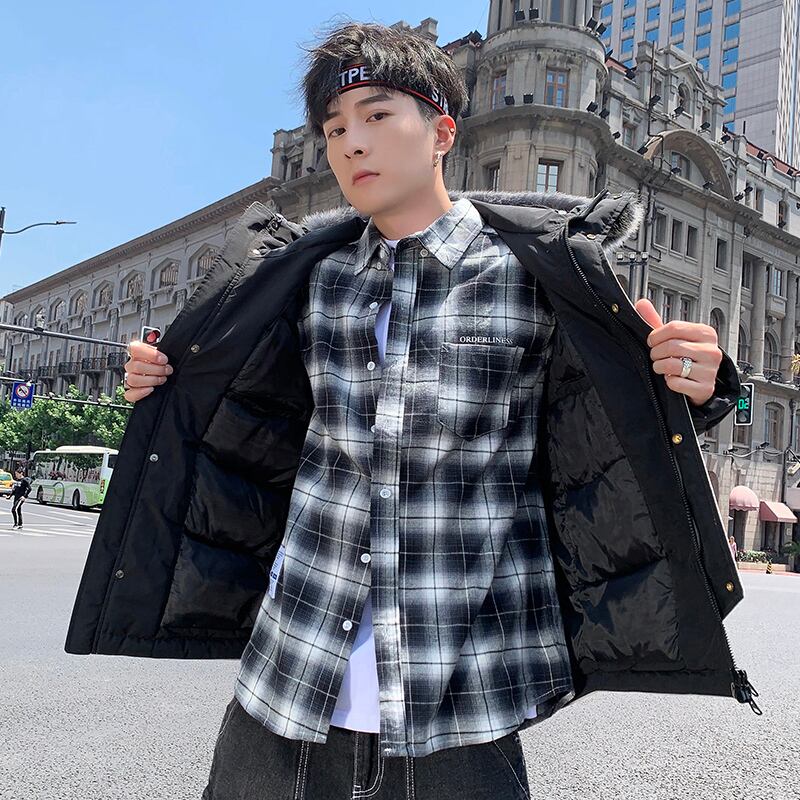 Mid-length cotton coat men's 2022 new winter version of the trend down cotton coat student fur collar jacket winter coat コットン ウィンター 冬物 doushi30015352074
