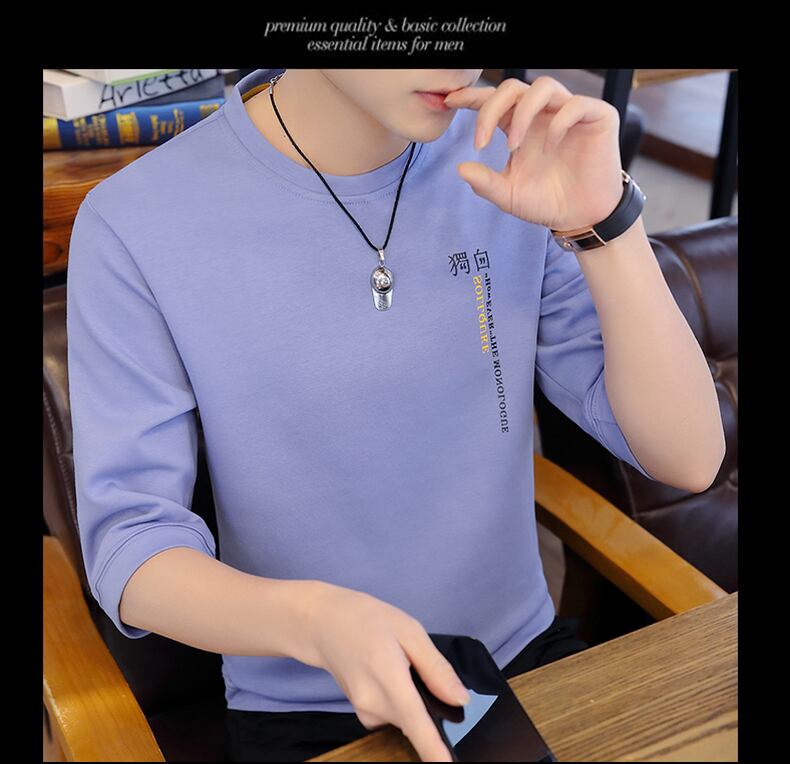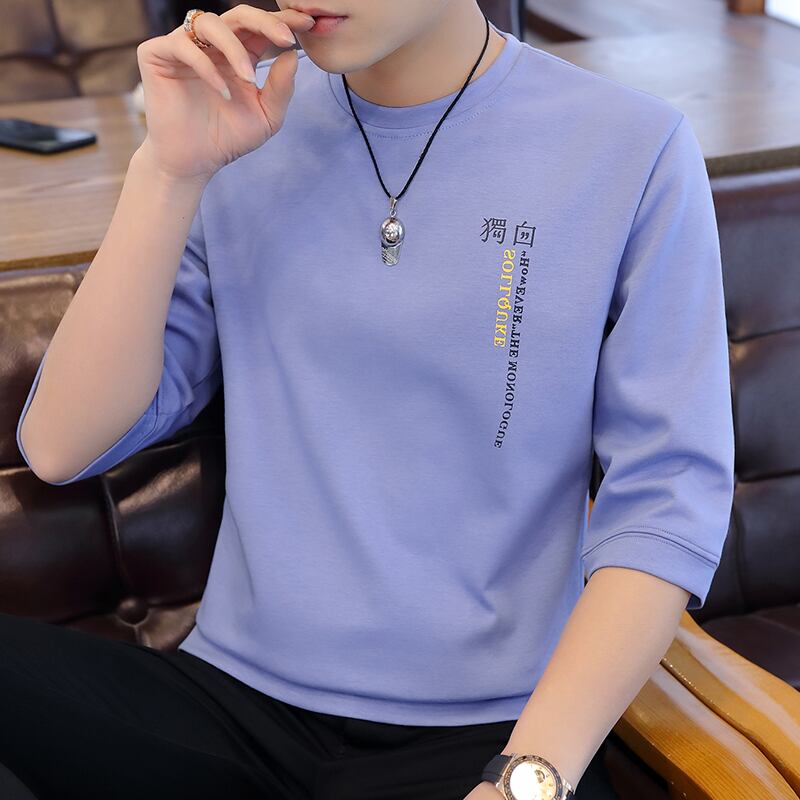 Mid-sleeve T-shirt men's round neck 5 five-point sleeve summer trend short-sleeved tide brand 7 seven-point sleeve T-shirt half-sleeve air-conditioning shirt サマー 夏物 Oネック Tシャツ doushi83332527430