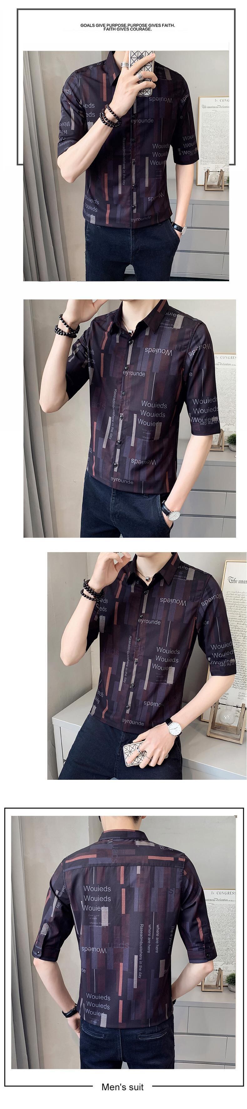 2022 summer short-sleeved ice silk printed shirt men's three-quarter sleeves slim version trendy ruffian handsome five-point mid-sleeve shirt プリント サマー 夏物 スリム シルク doushi68376892890