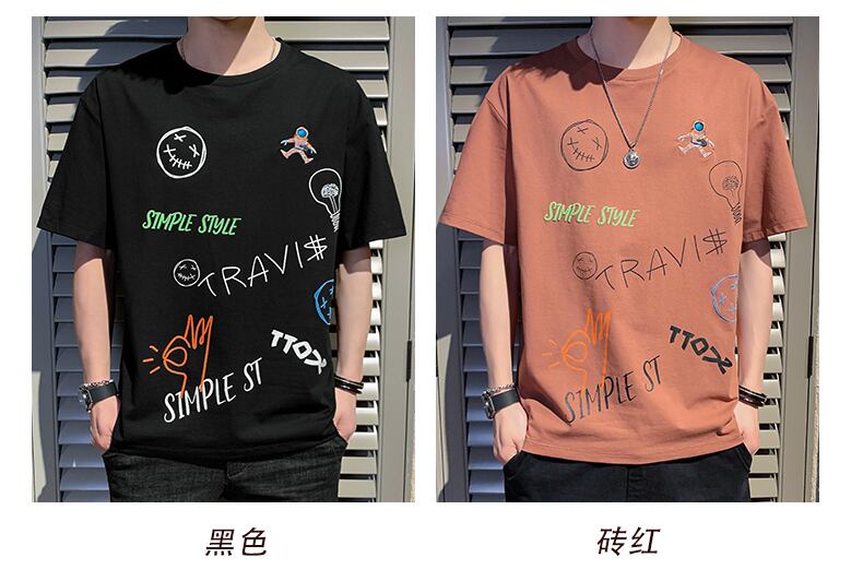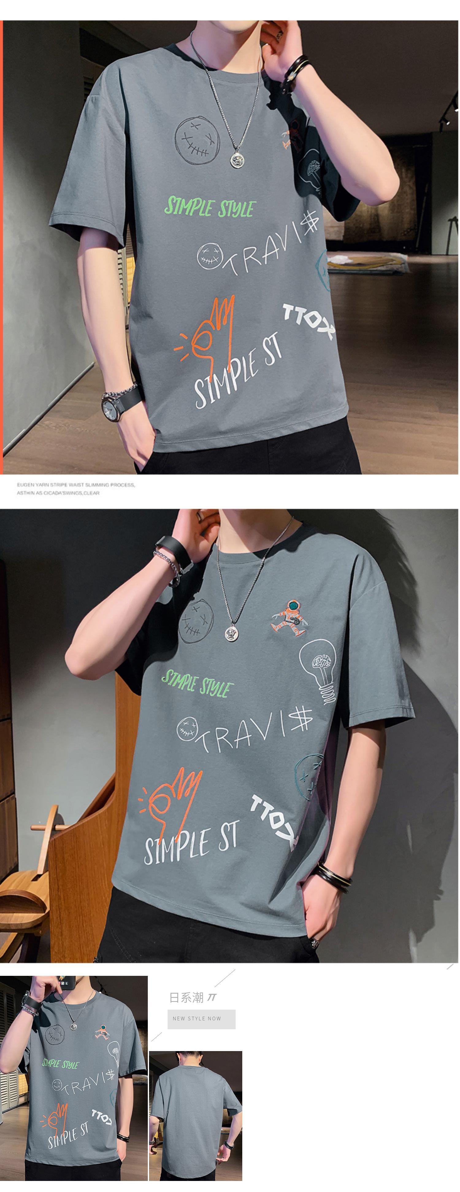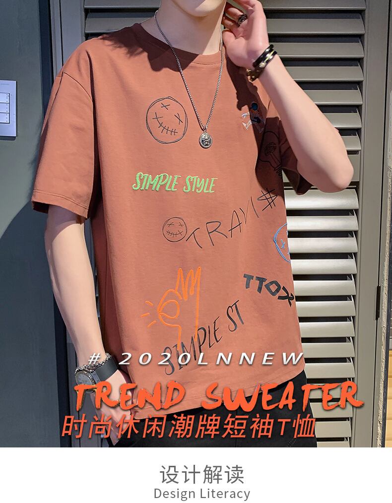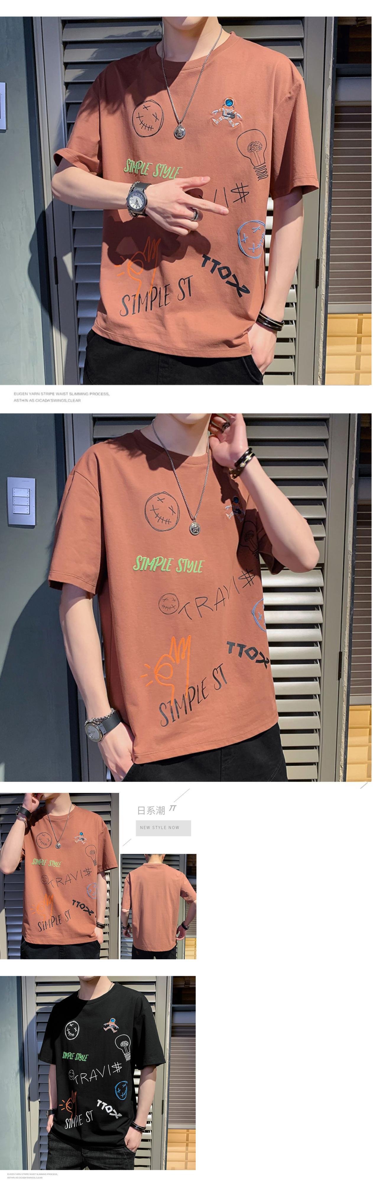Men's version short-sleeved T-shirt summer loose men's clothing trendy brand new half-sleeved T-shirt bottoming shirt サマー 夏物 Tシャツ doushi85812657257