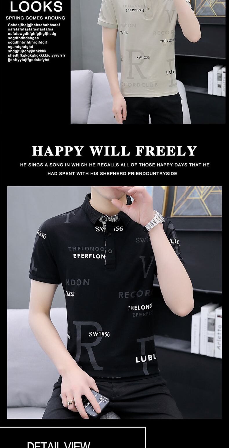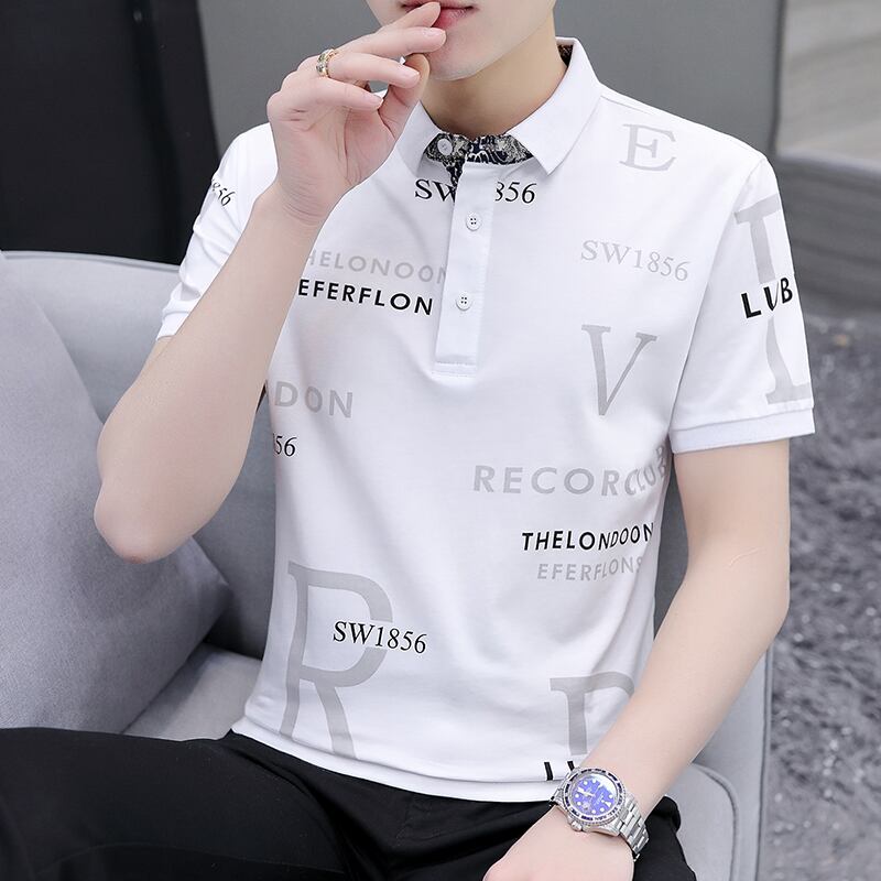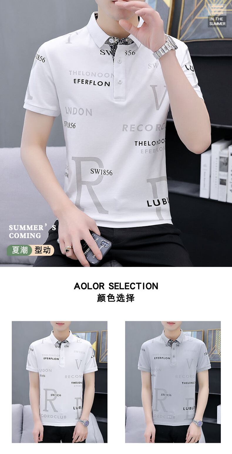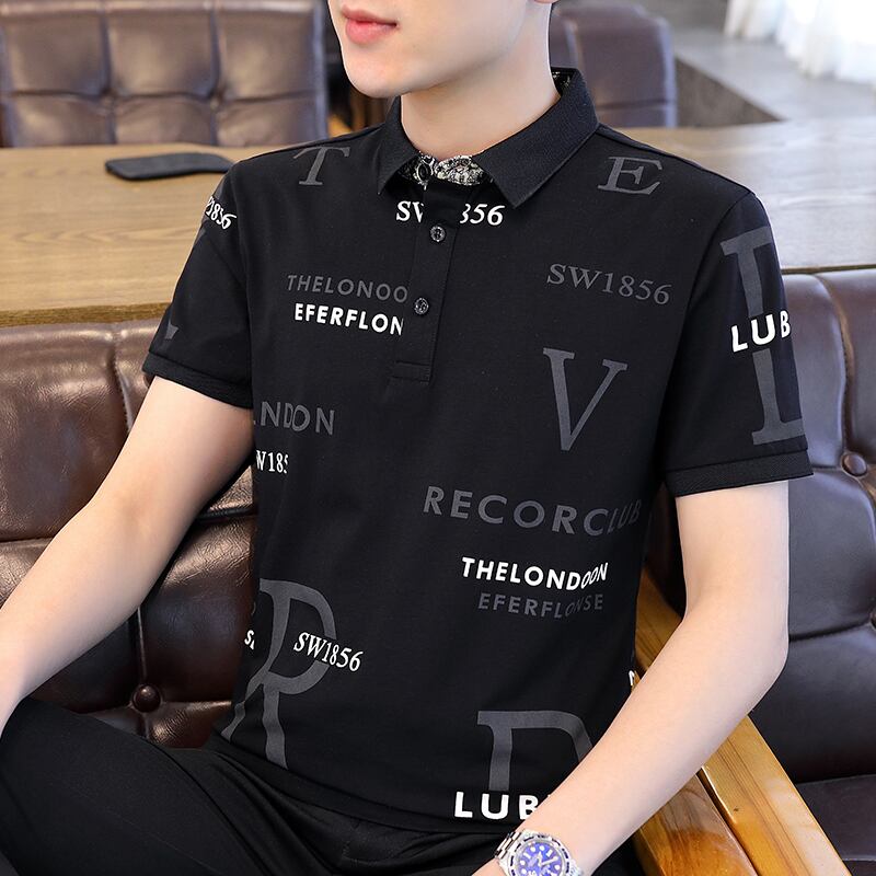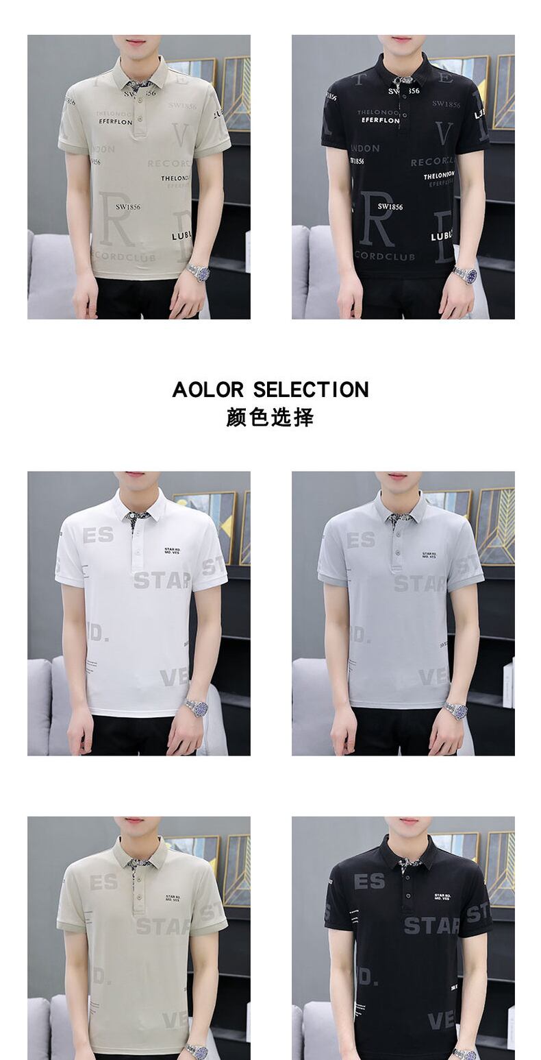 Summer youth polo shirt men's short-sleeved t-shirt fashion tide brand cotton lapel printing half-sleeved middle-aged men's top コットン サマー 夏物 Tシャツ doushi37285099222