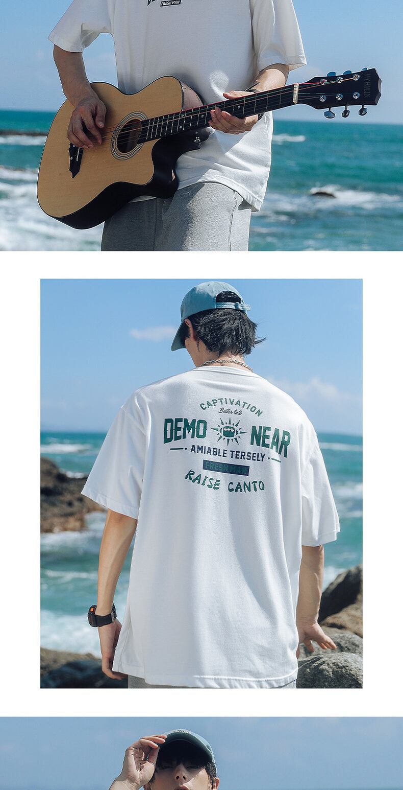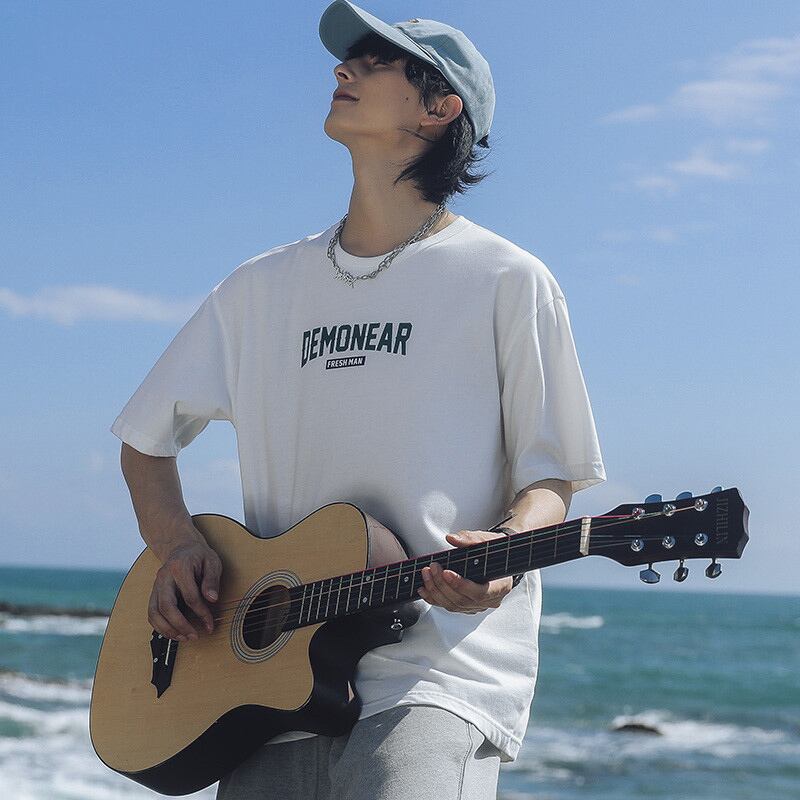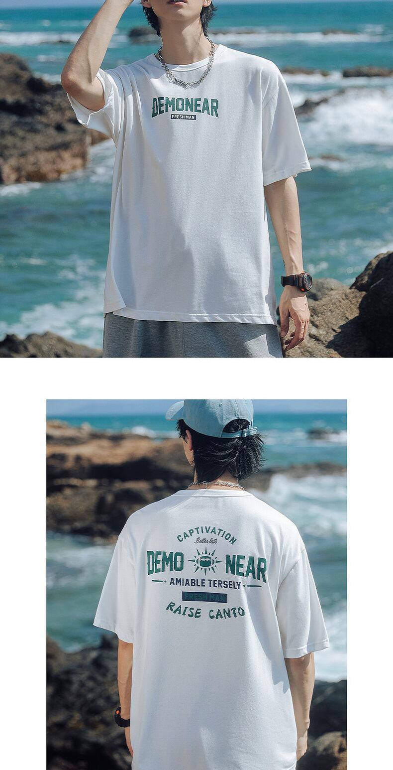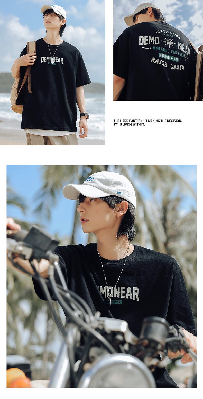 Men's cotton t-shirt men's summer round neck loose casual couple short-sleeved 2022 new trendy brand couple clothes summer clothes コットン カジュアル サマー 夏物 Oネック Tシャツ doushi56942036356