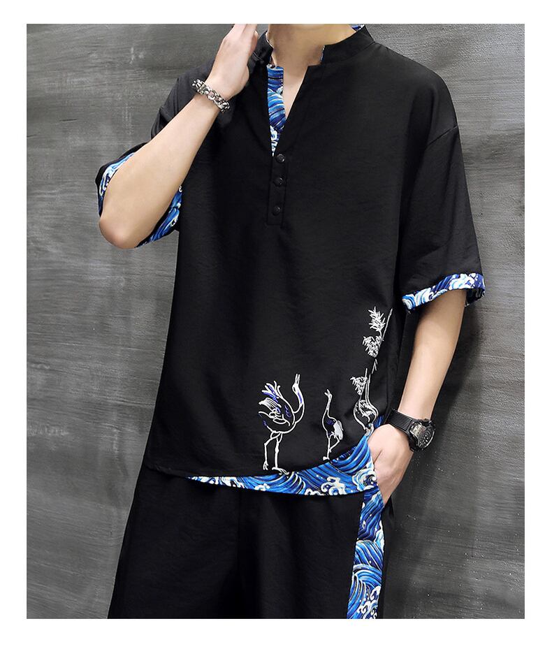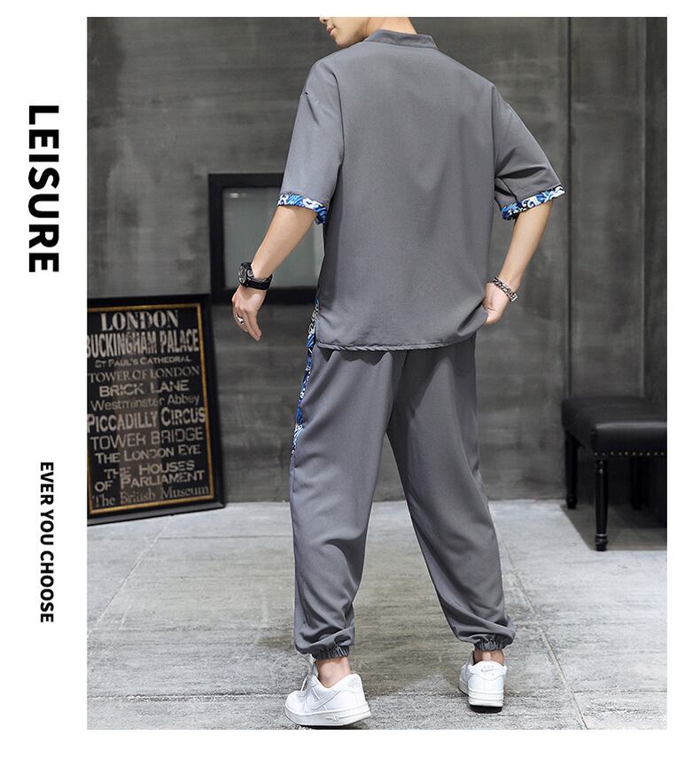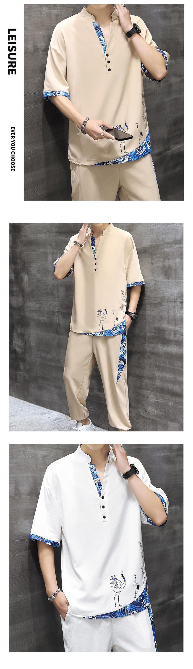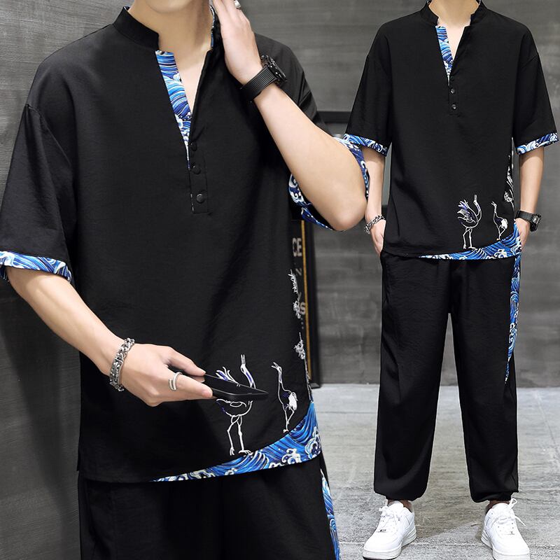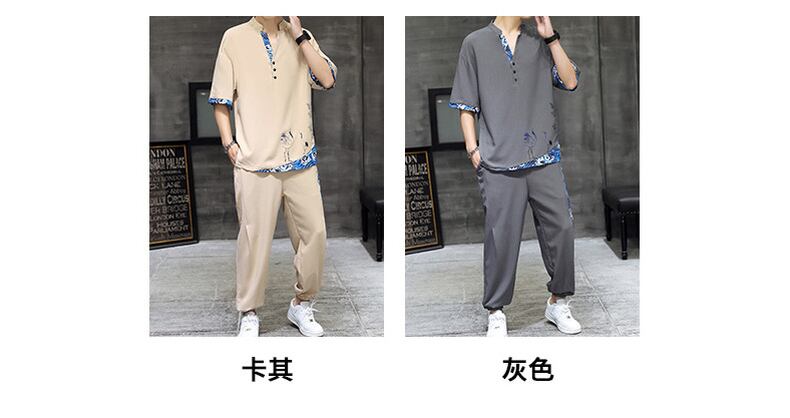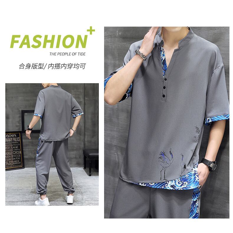 Summer ice silk suit short-sleeved t-shirt men's fashion trend 2022 new casual Chinese style Tang suit and Hanfu suit カジュアル サマー 夏物 シルク Tシャツ doushi41305913445