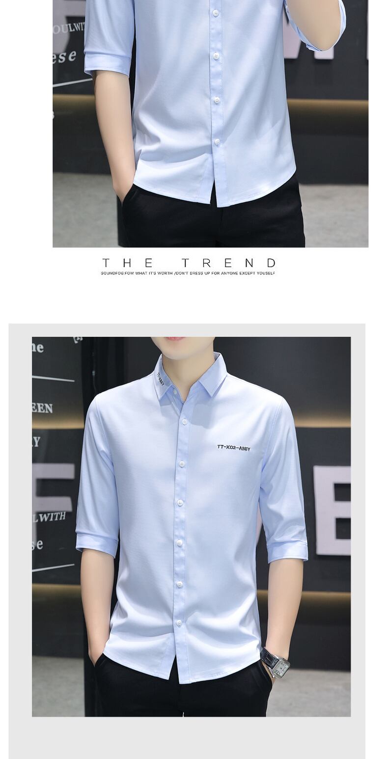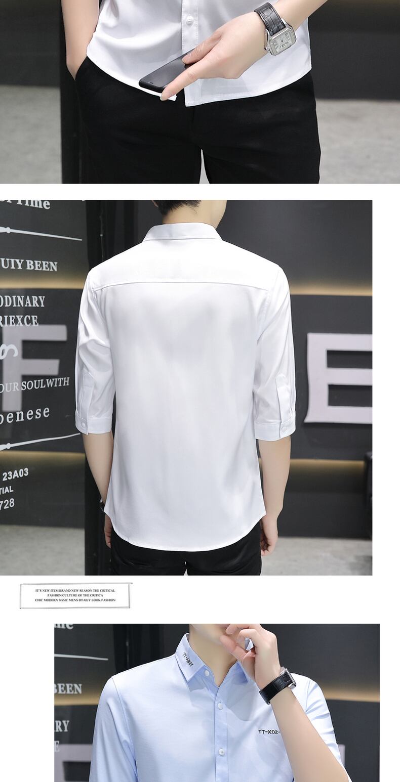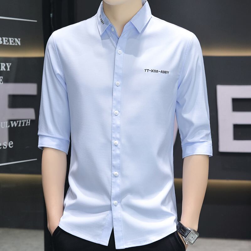 Summer three-quarter sleeve shirt men's short-sleeved casual elastic ice silk five-point sleeve shirt trendy handsome middle-sleeve shirt カジュアル エラスティック 伸縮 サマー 夏物 シルク doushi67704452277