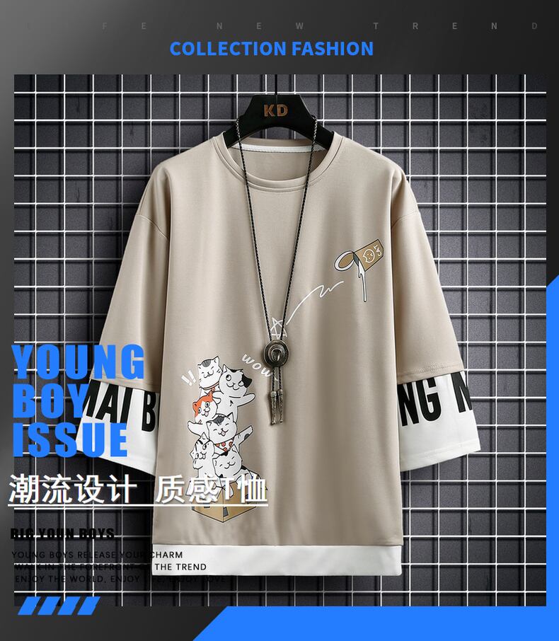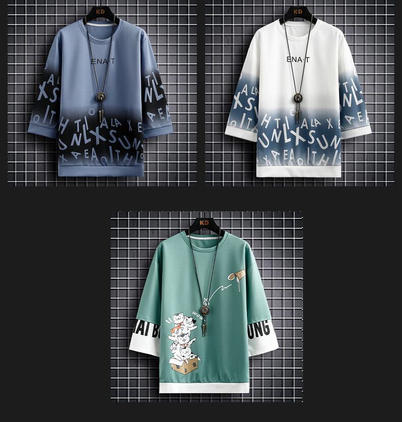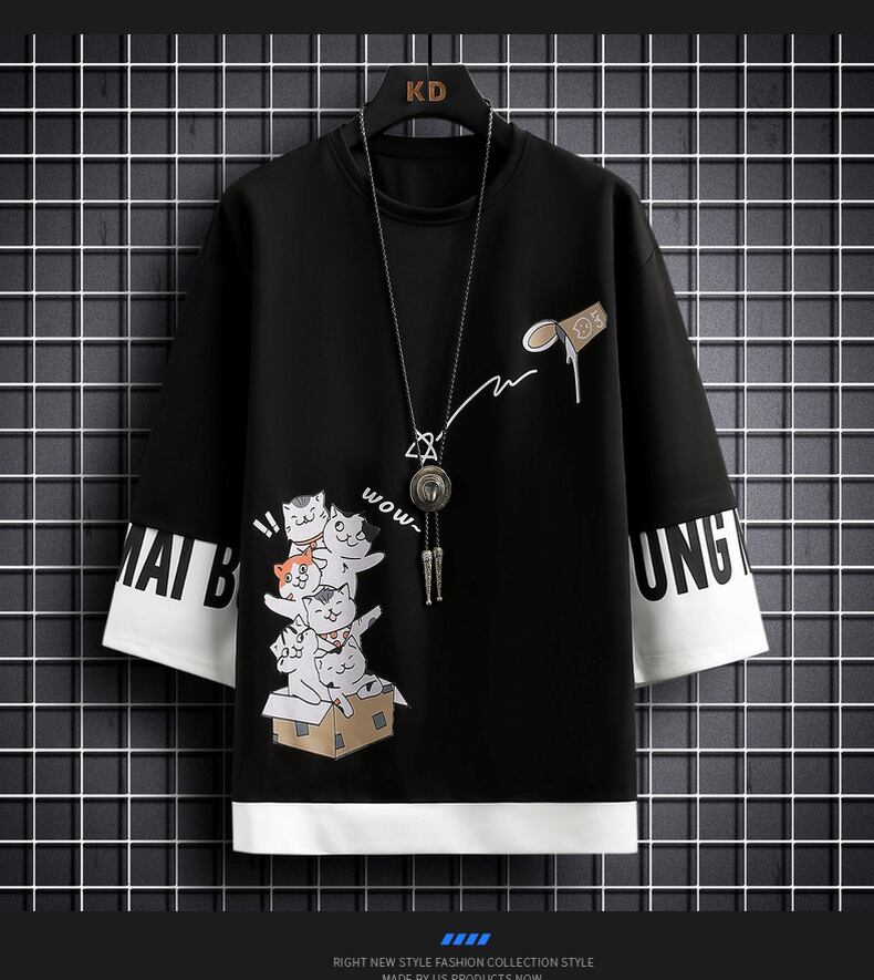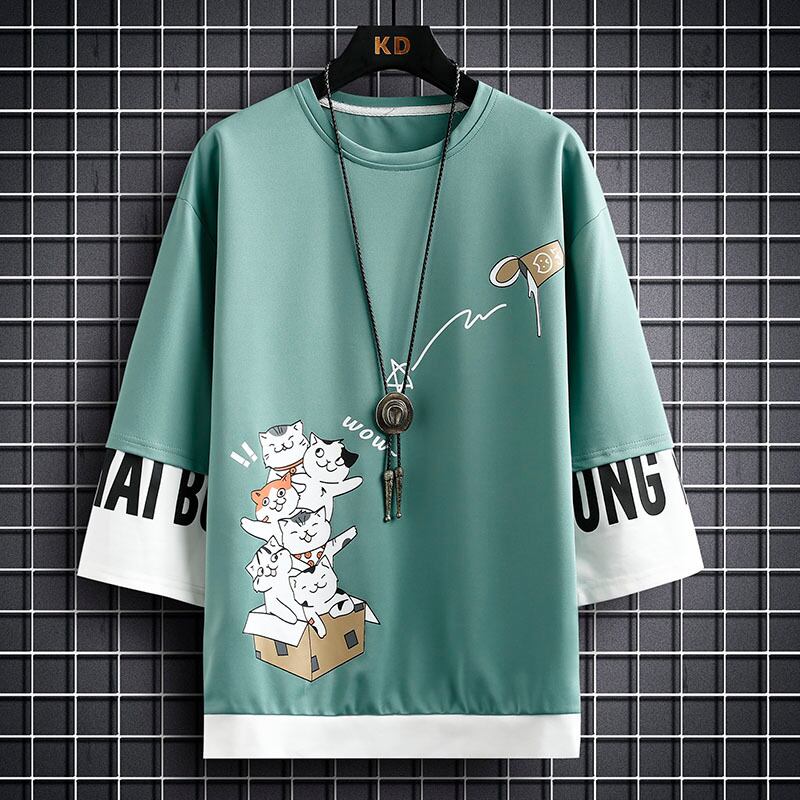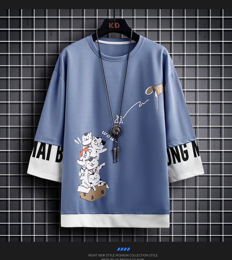 Cartoon short-sleeved t-shirt men's tide brand loose summer ice silk seven-point sleeve t-shirt youth five-point half-sleeve clothes サマー 夏物 シルク Tシャツ doushi32088372431