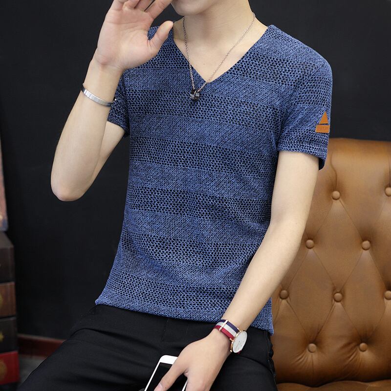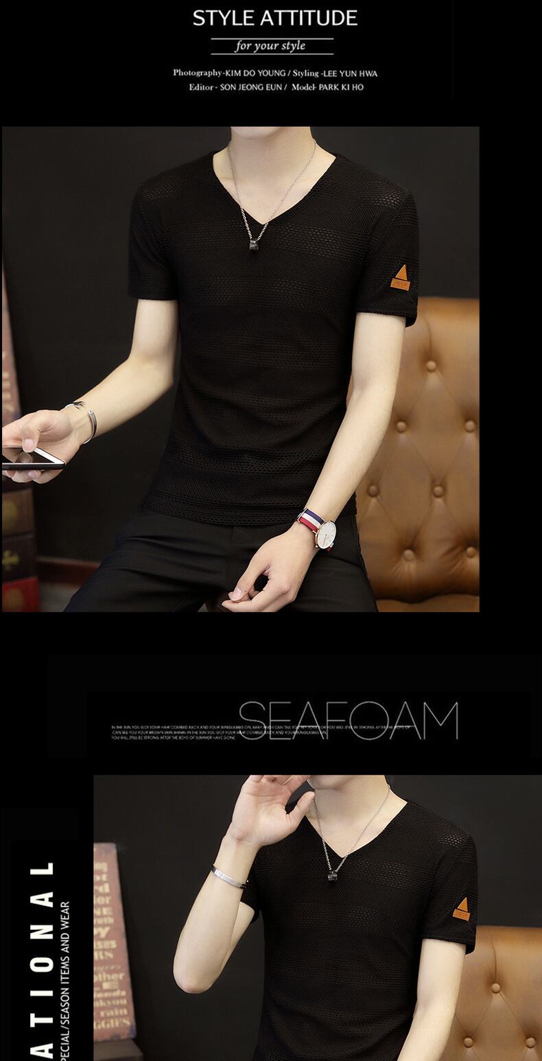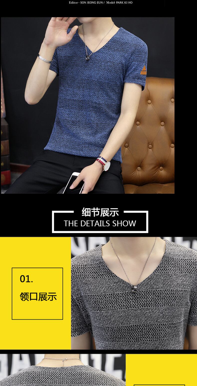 Men's ice silk short-sleeved t-shirt men's V-neck 2022 new summer thin t-shirt men's clothes men's half-sleeved サマー 夏物 Vネック シルク Tシャツ doushi92675396534