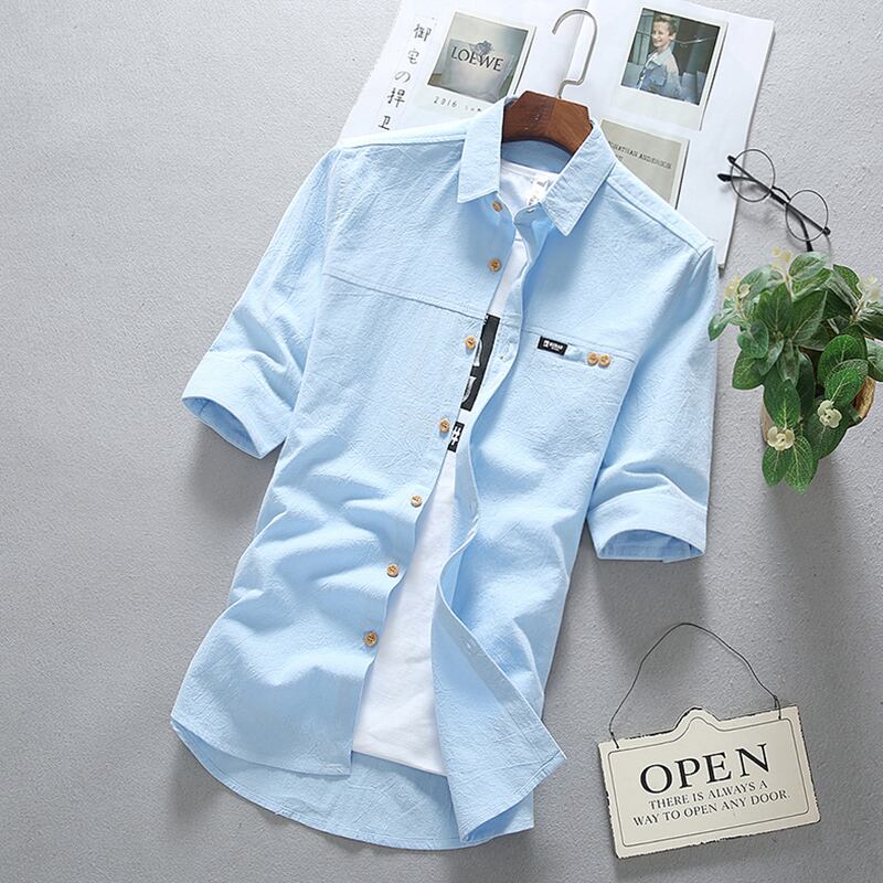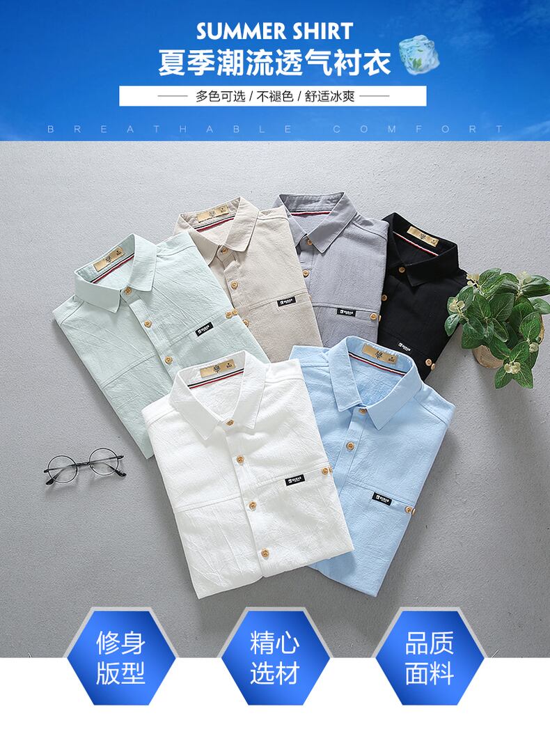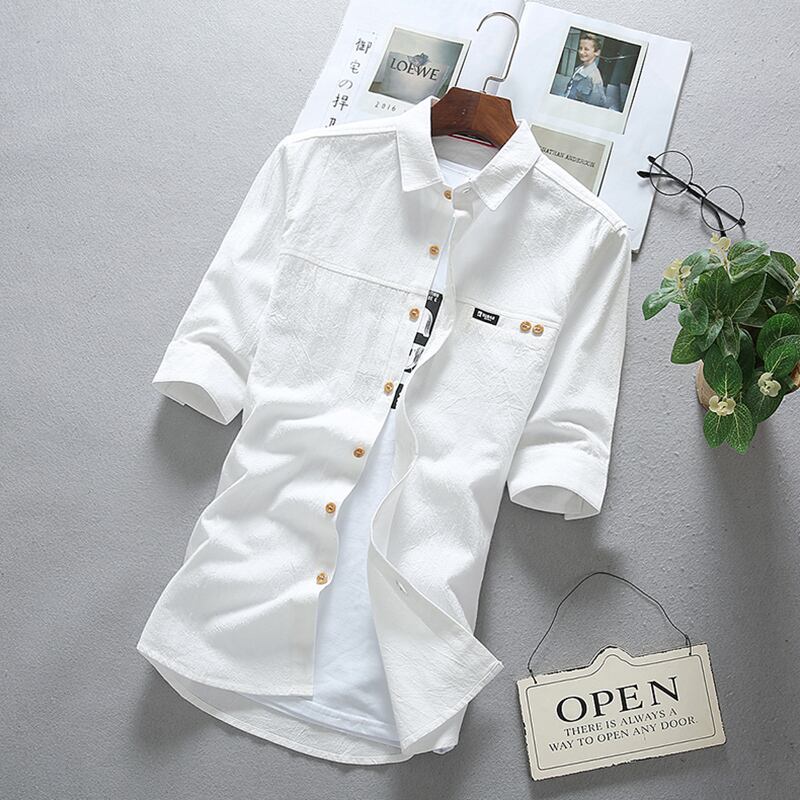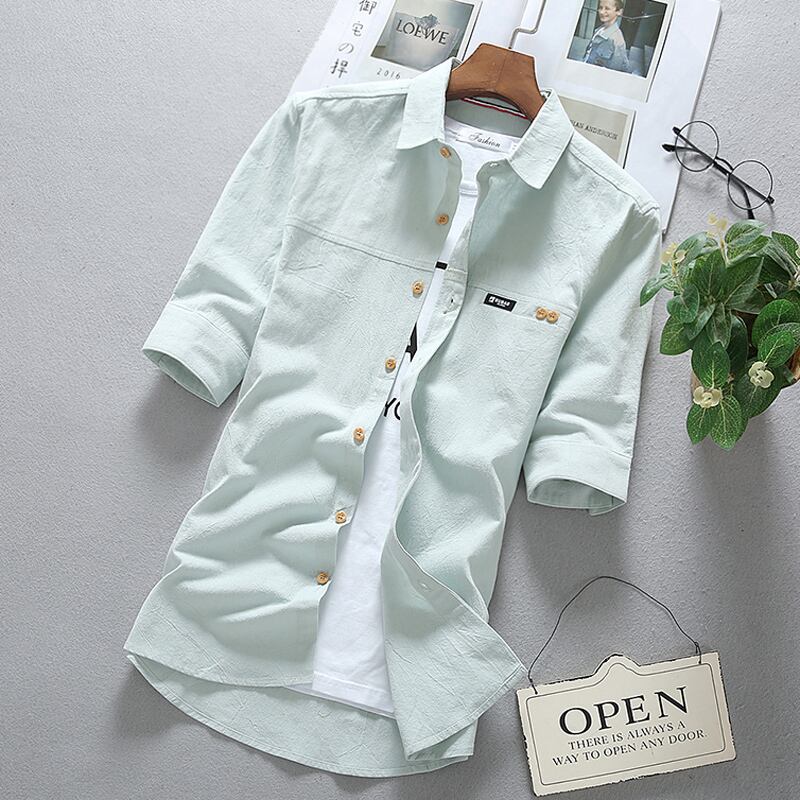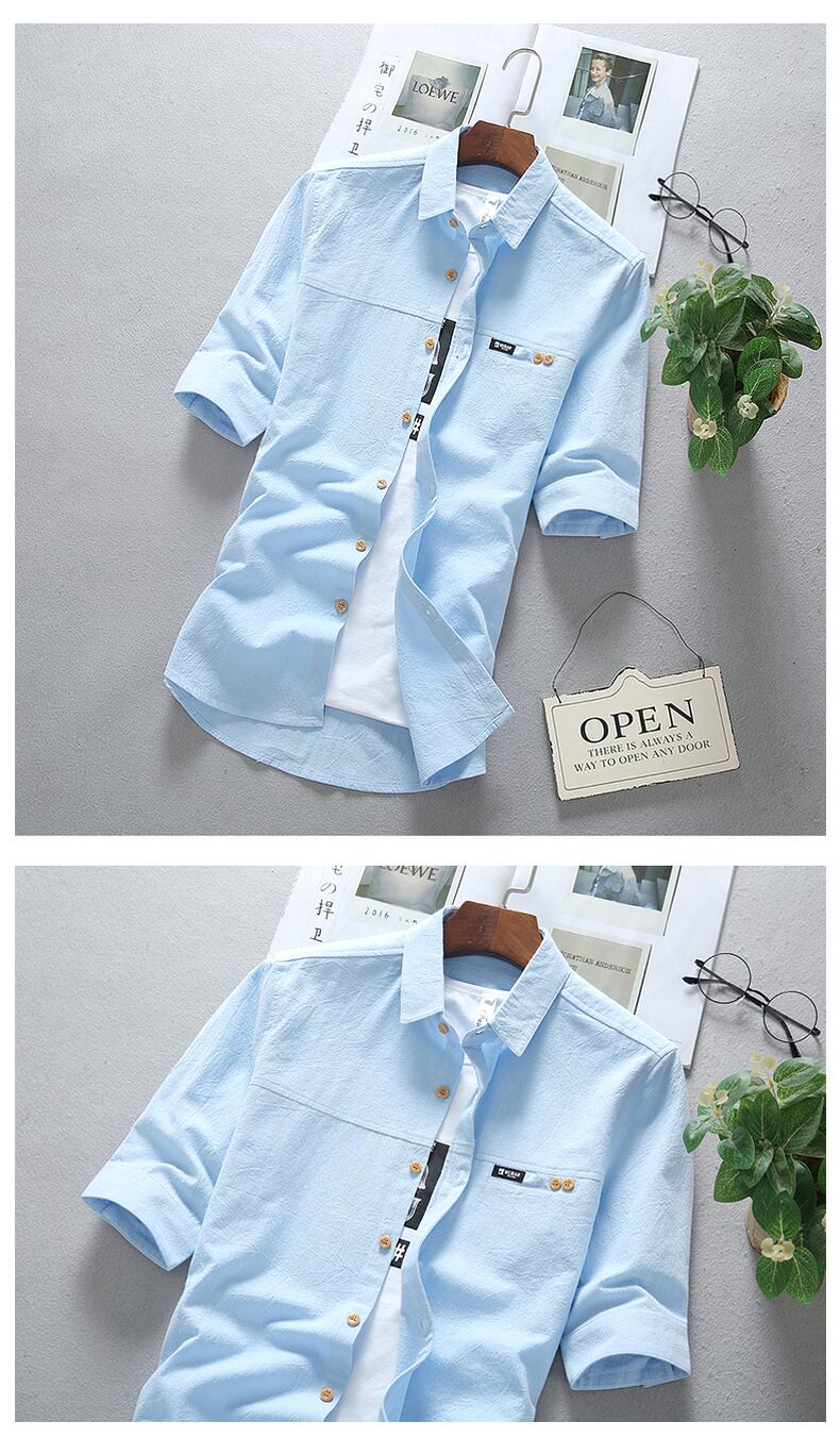 Summer thin short-sleeved shirt men's five-point sleeve version trend casual all-match shirt handsome student mid-sleeve top カジュアル サマー 夏物 doushi99806341921