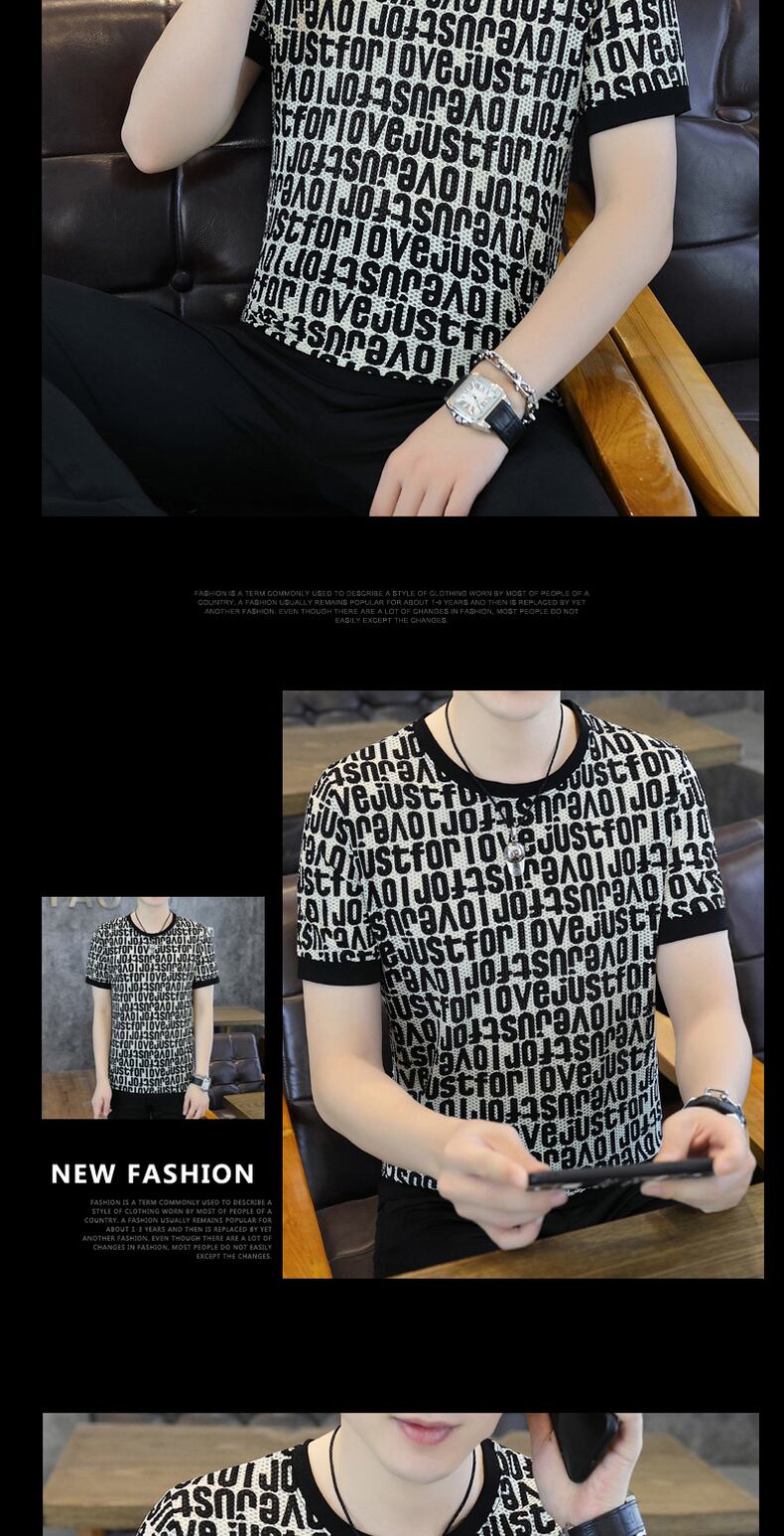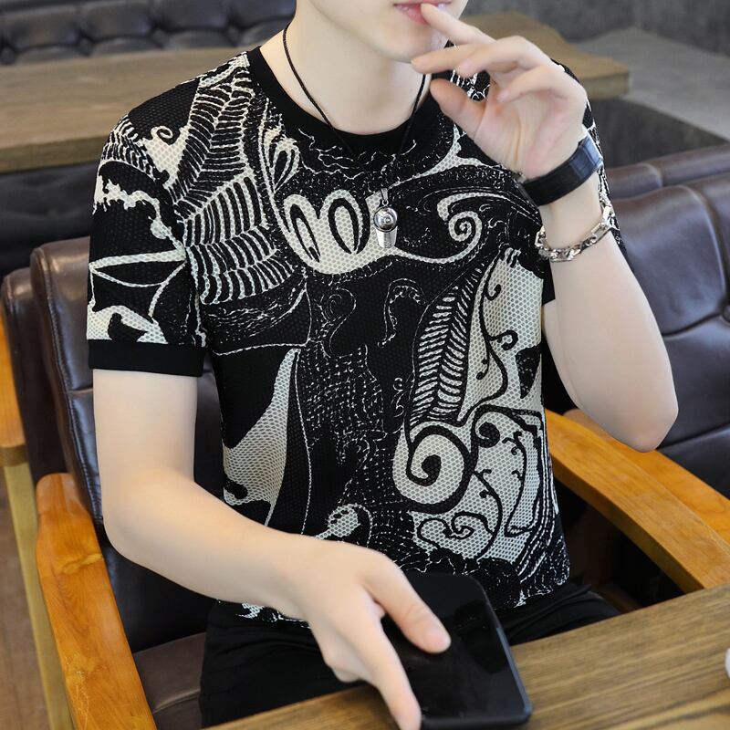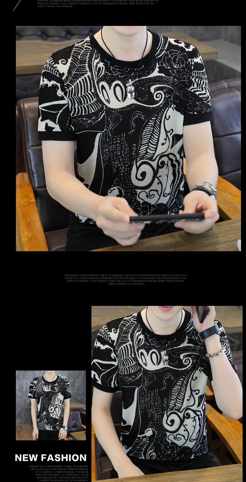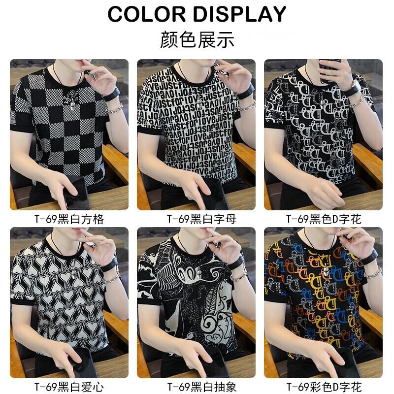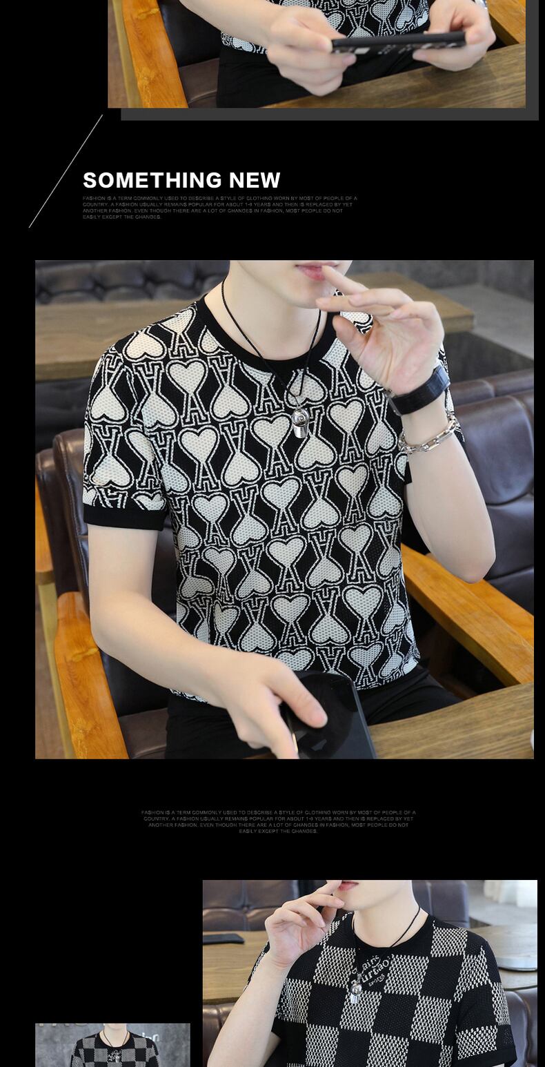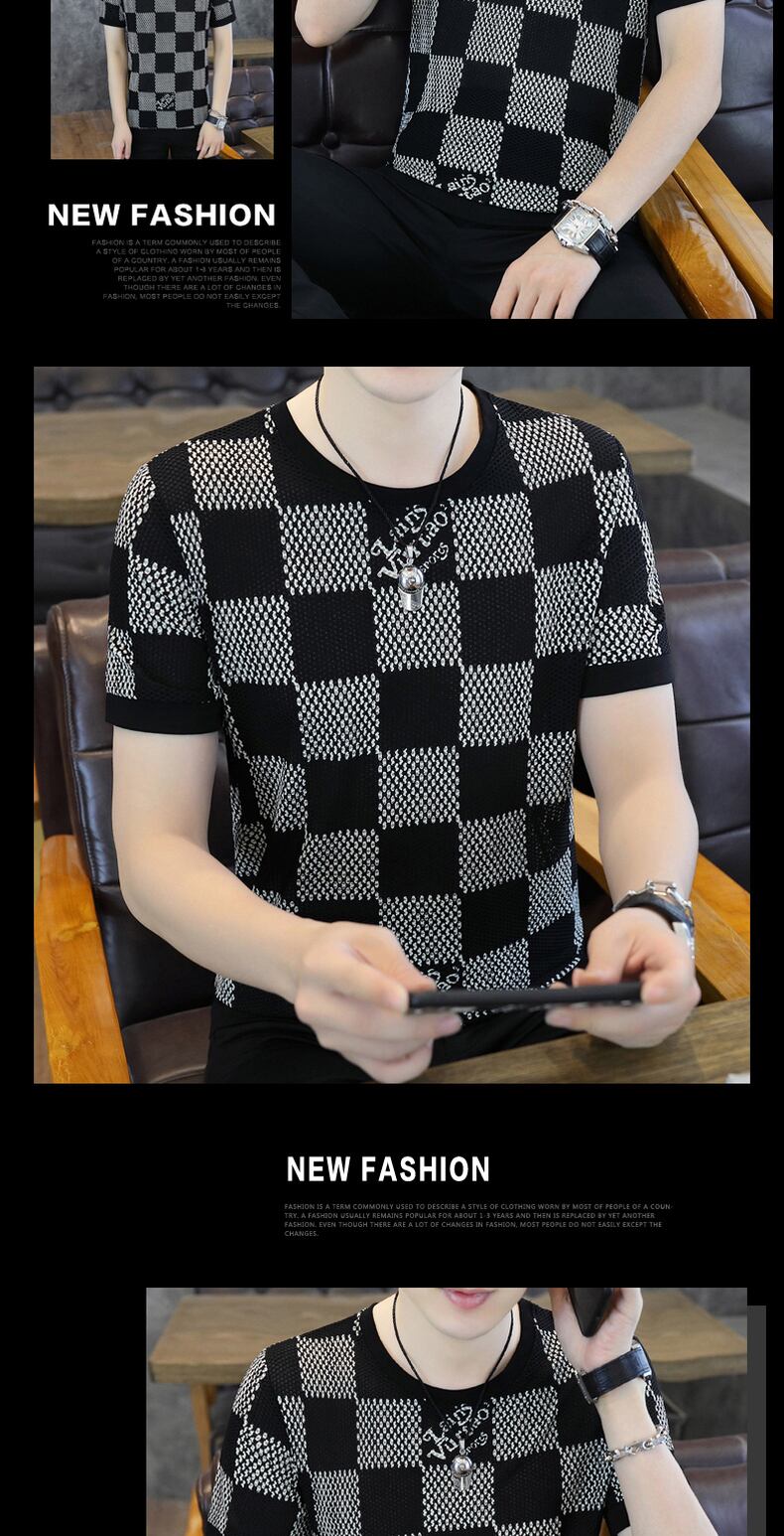 Men's 2022 new summer trend ice silk short-sleeved t-shirt men's plaid half-sleeved tide brand handsome hollow t-shirt サマー 夏物 シルク Tシャツ doushi46949519992