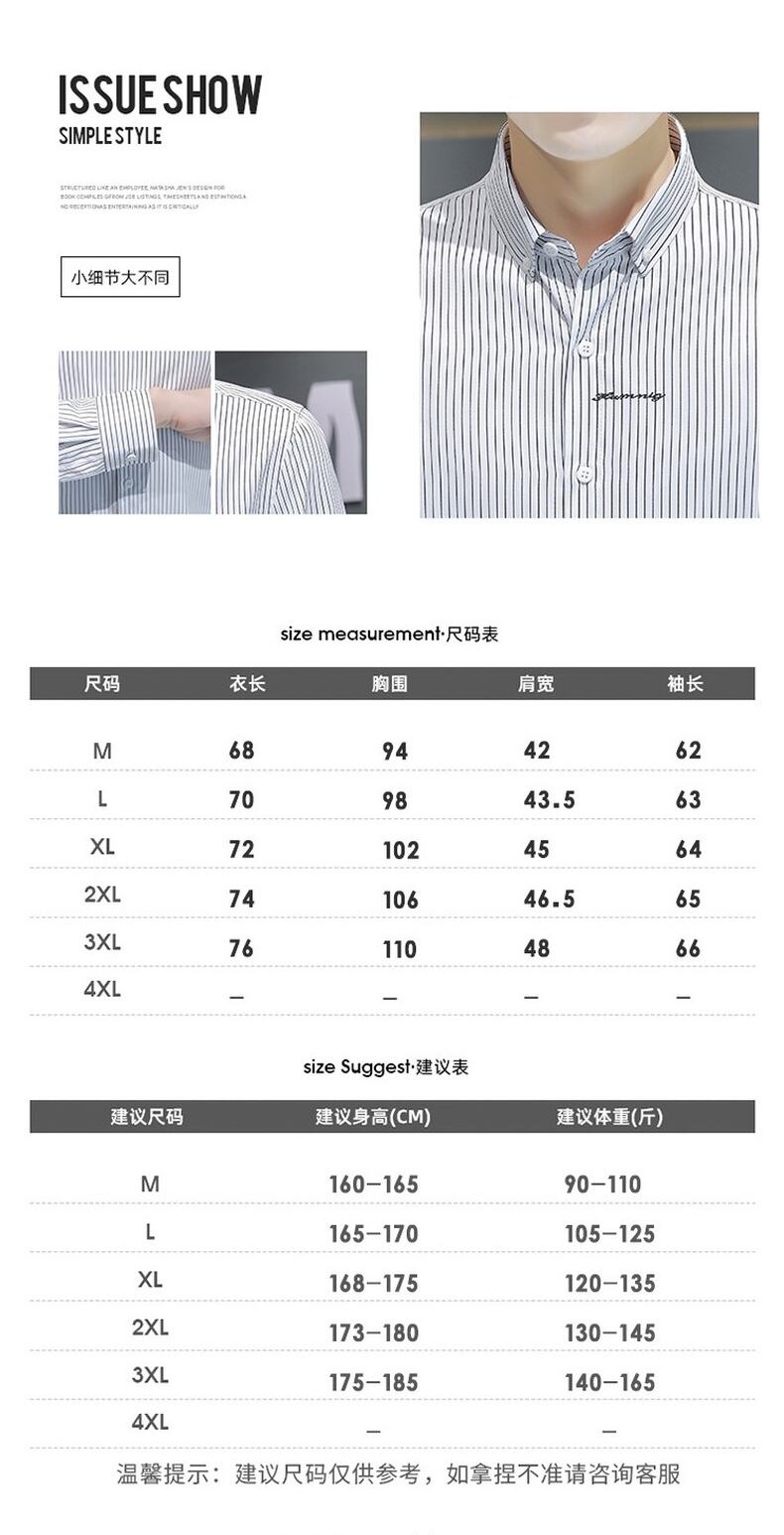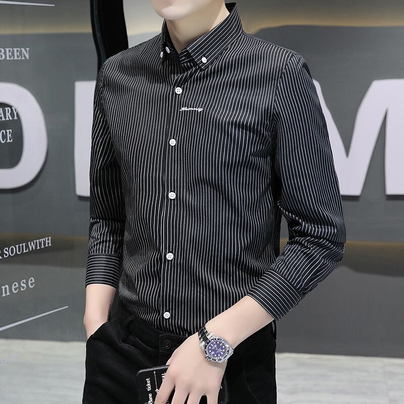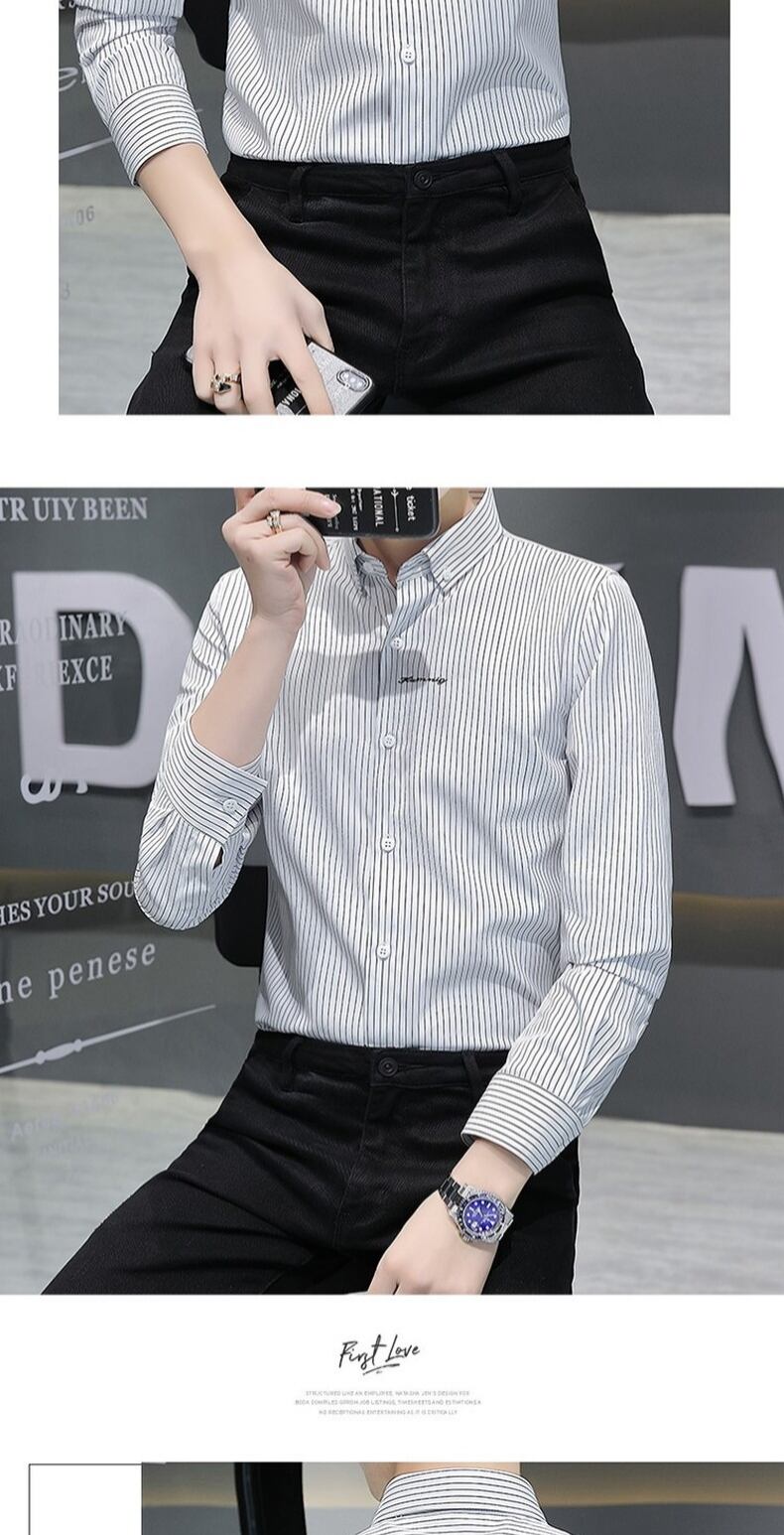 2022 long-sleeved shirts men's shirts spring and autumn new trendy brand business casual striped inch shirt jacket men ロング カジュアル シャツ スプリング 春物 オータム 秋物 ストライプ doushi7105605644