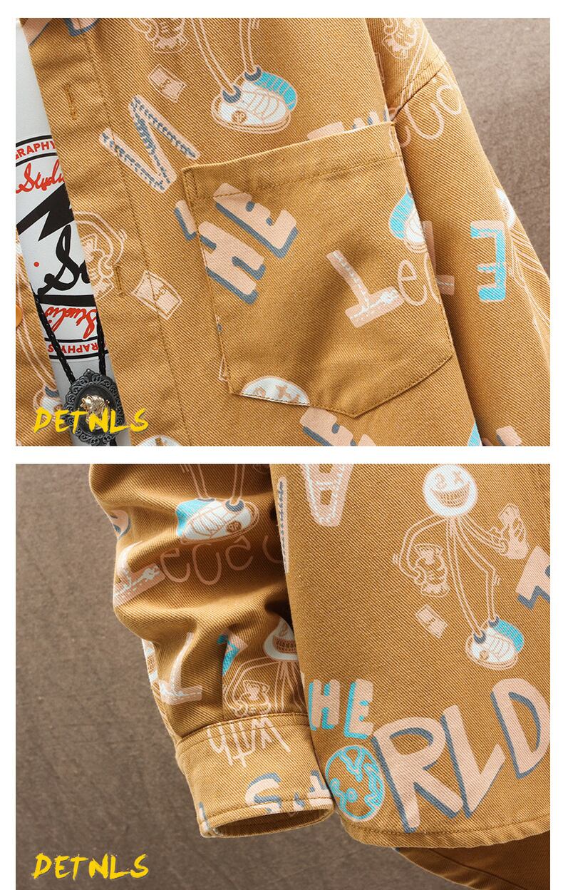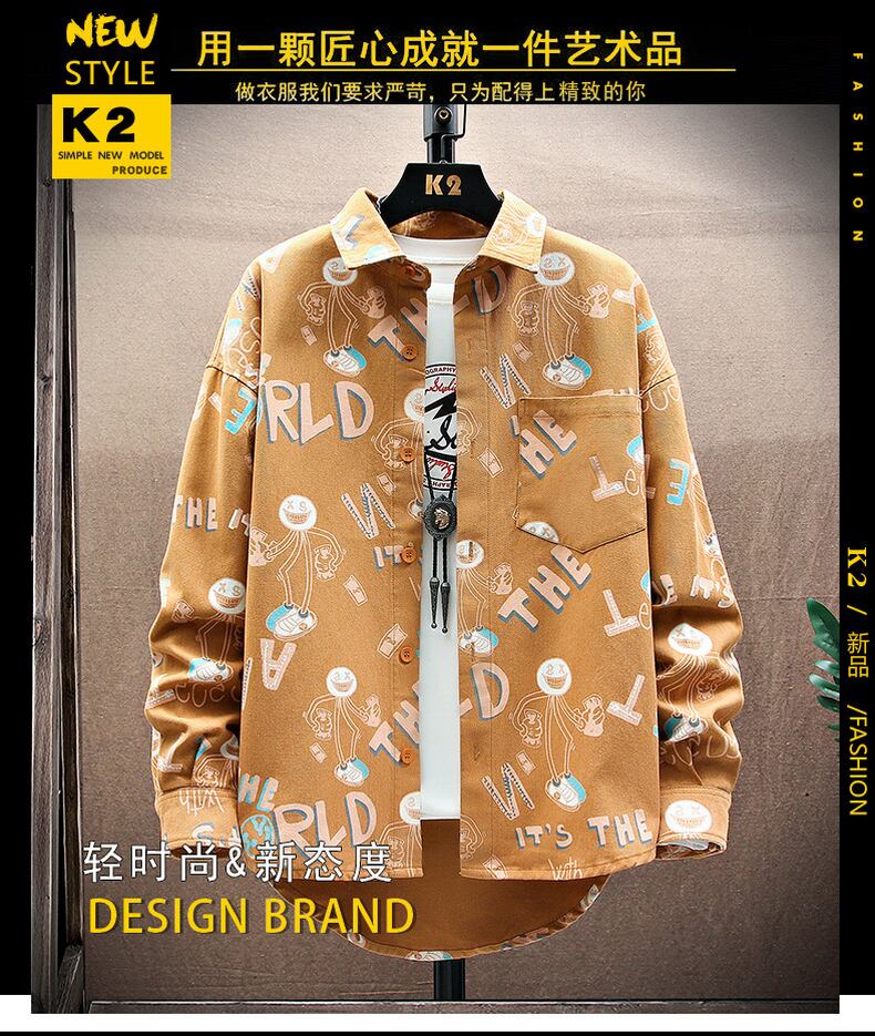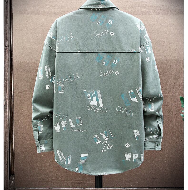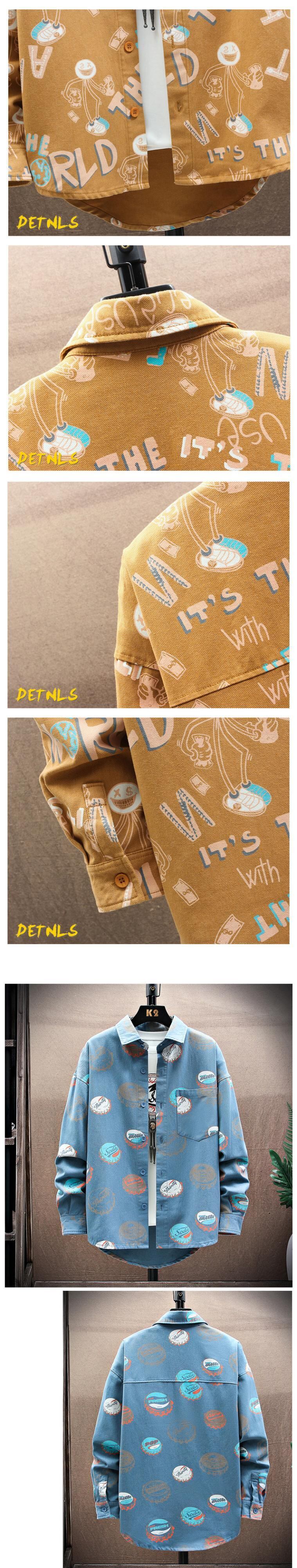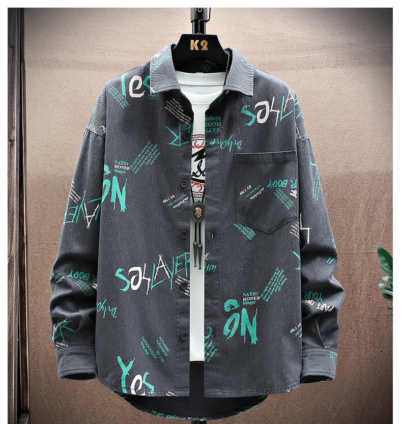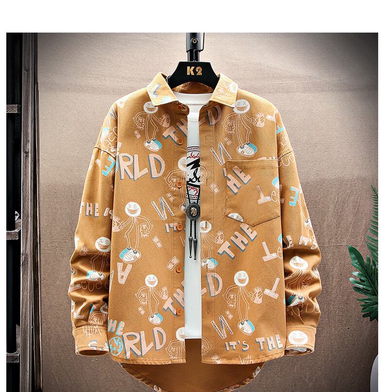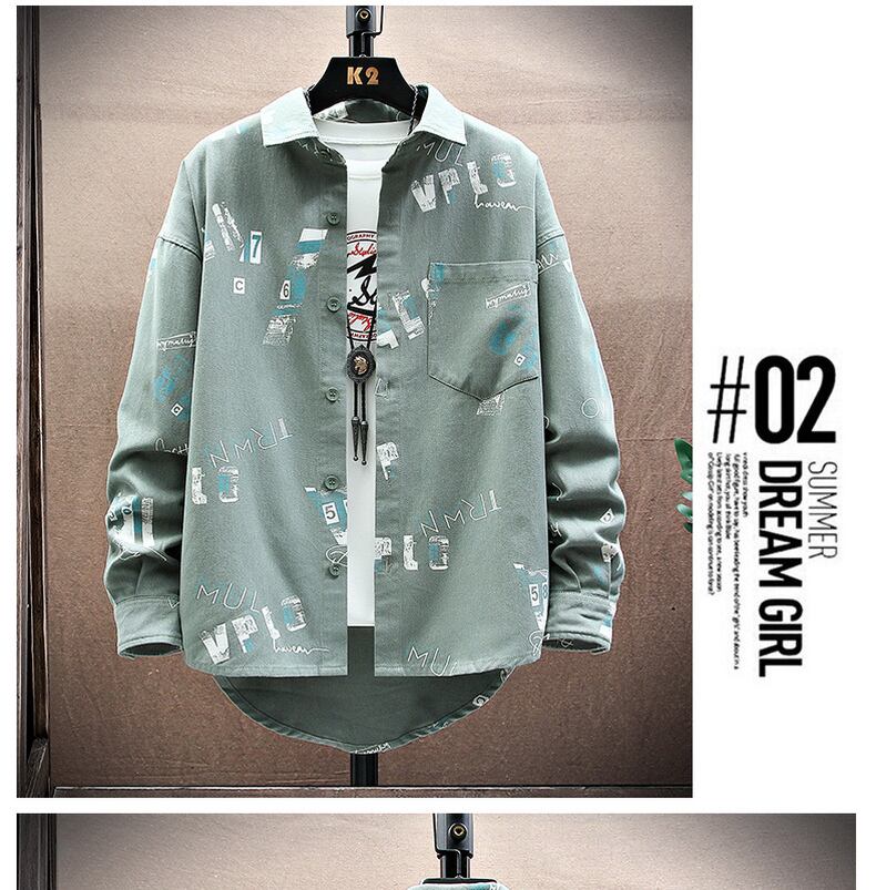 Spring and autumn denim flower shirt men's ins tide brand ese Hong Kong style loose long-sleeved shirt youth student jacket ロング スプリング 春物 オータム 秋物 フラワーデザイン doushi83329039098