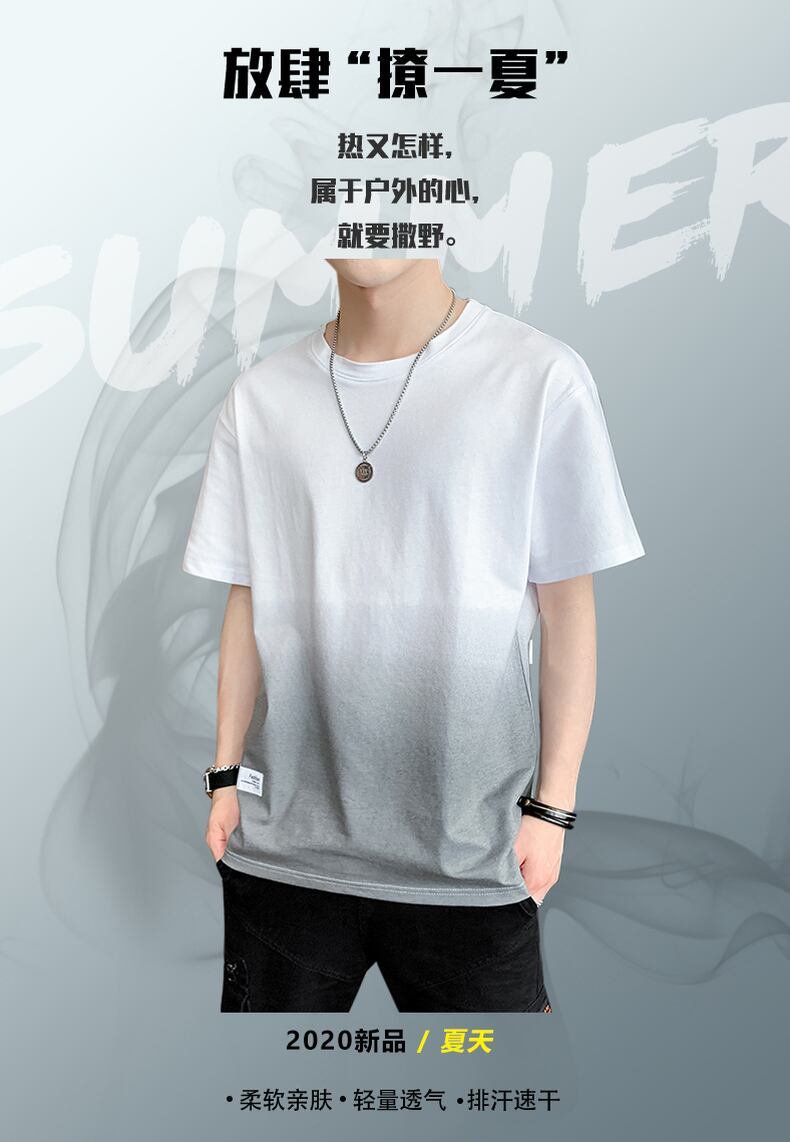 Summer men's short-sleeved T-shirt loose round neck 2022 new gradient color half-sleeved thin t-shirt cotton trend コットン サマー 夏物 Oネック Tシャツ doushi4042882203
