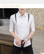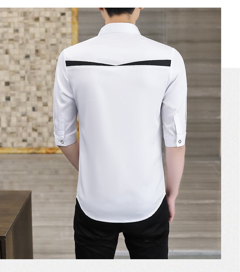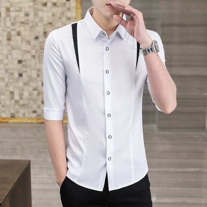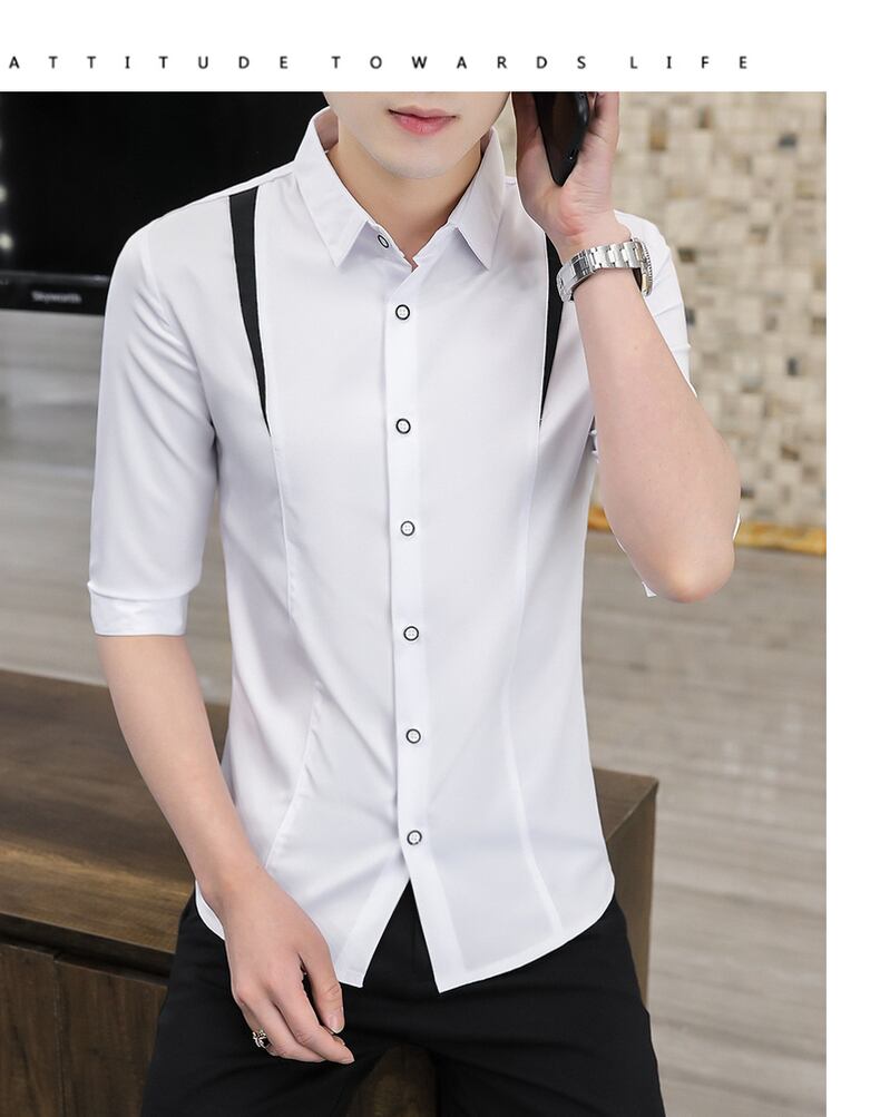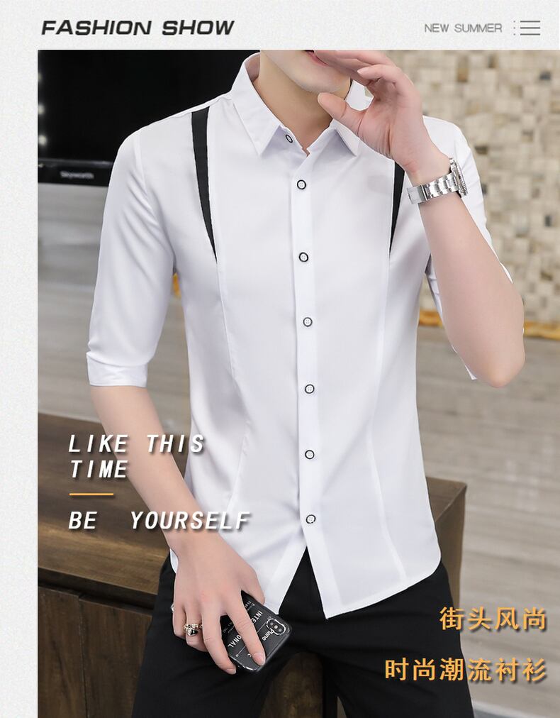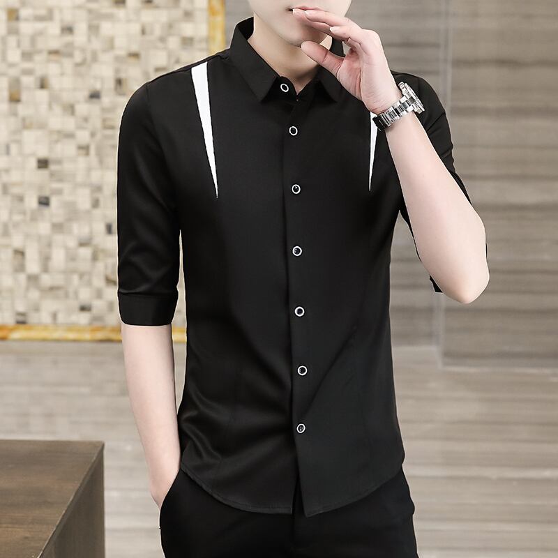 Summer dress three-quarter sleeve shirt men's ice silk short-sleeved trendy handsome mid-sleeve shirt summer thin five-point sleeve inch clothes サマー 夏物 シルク doushi12053353480