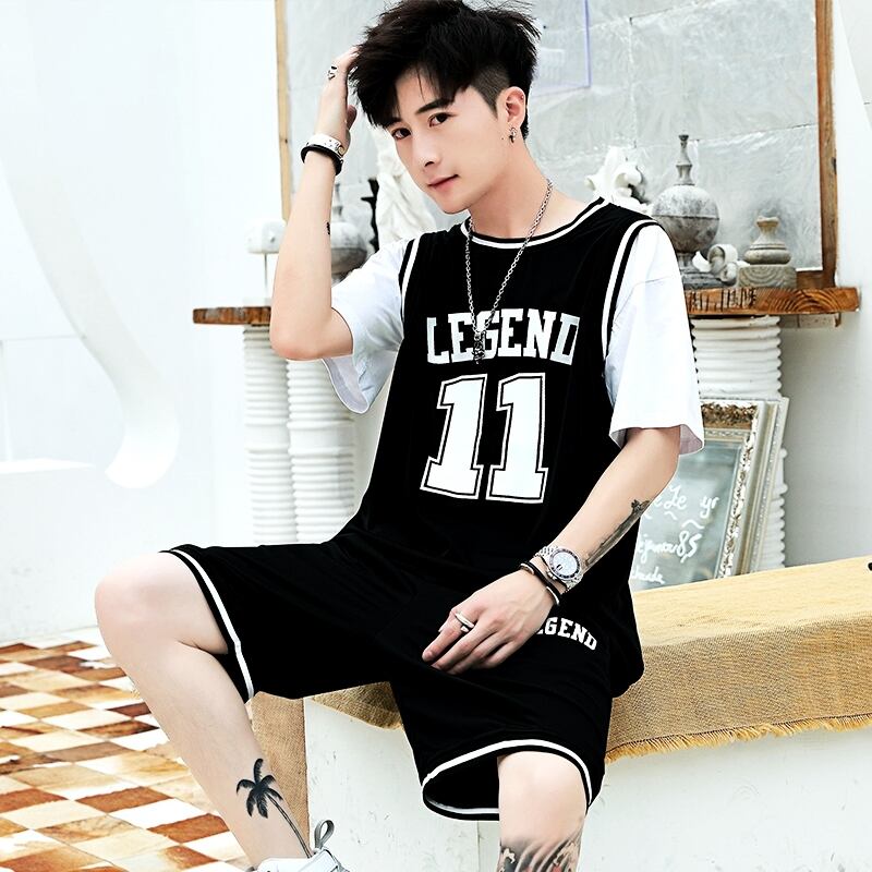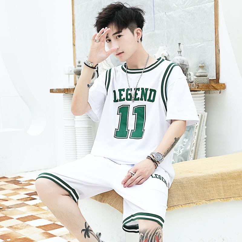 Youth summer ice silk short-sleeved T-shirt high junior high student sports suit big boy basketball clothes boy clothes サマー 夏物 シルク Tシャツ doushi48382507761