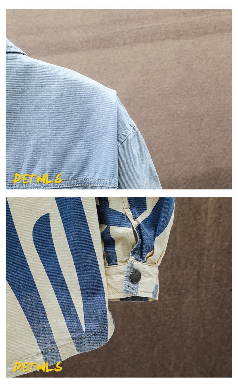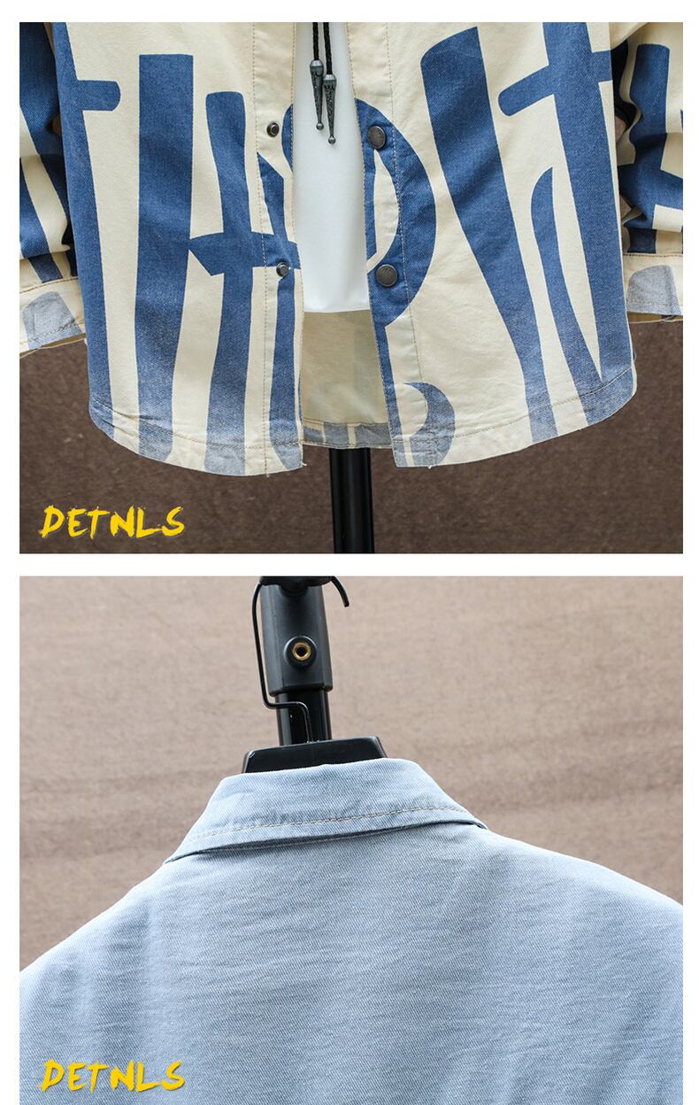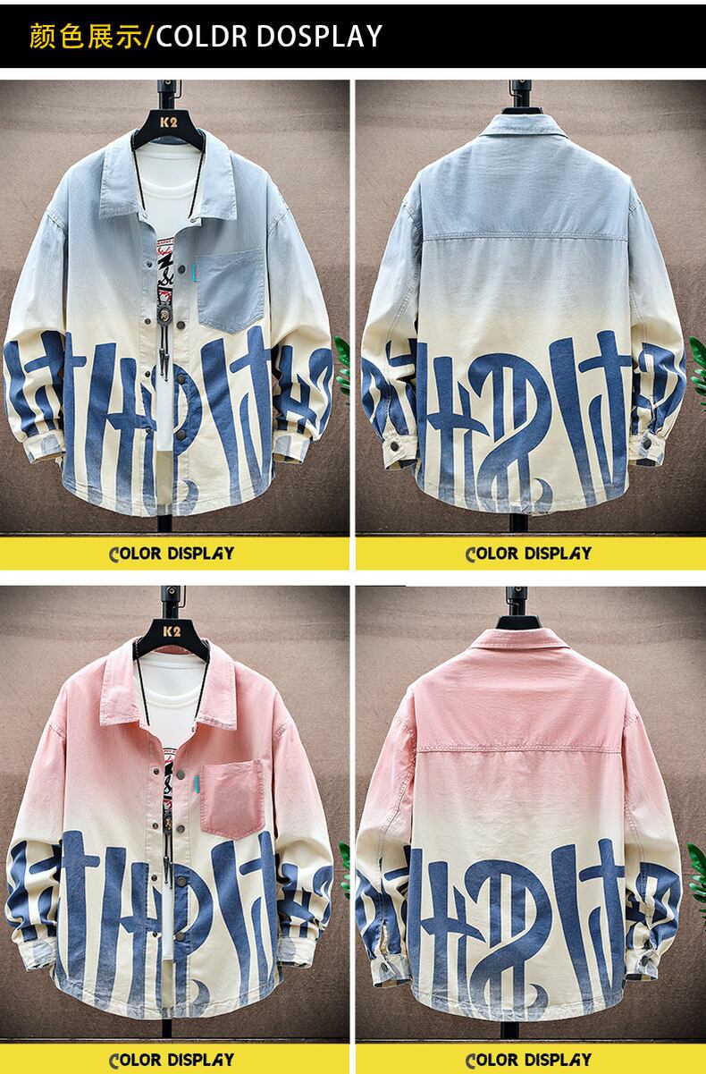 Denim long-sleeved shirt men's spring and autumn youth tide brand loose shirt junior high students trend coat ロング スプリング 春物 オータム 秋物 doushi26291048737
