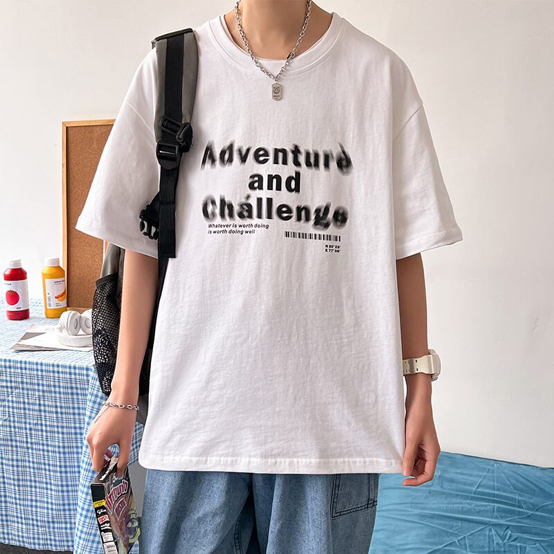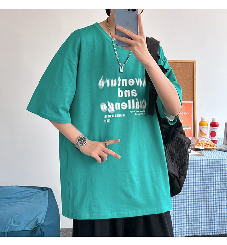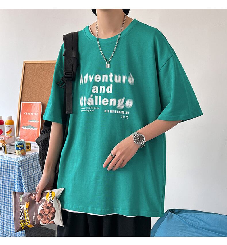 Short-sleeved t-shirt men's 2022 new summer tide brand half-sleeved t-shirt cotton loose Hong Kong style round neck top clothes men's コットン サマー 夏物 Oネック Tシャツ doushi14038579774