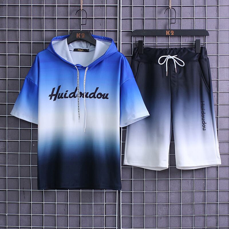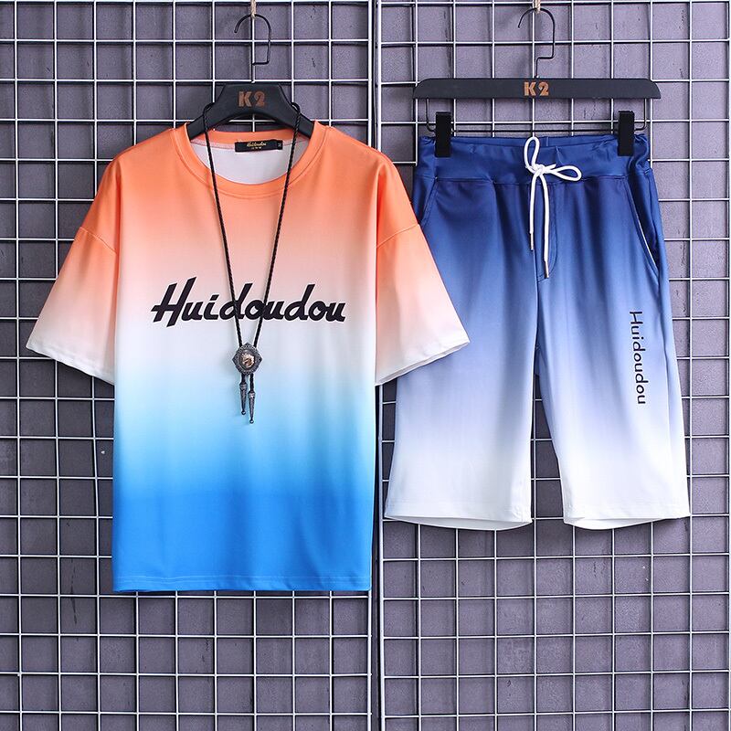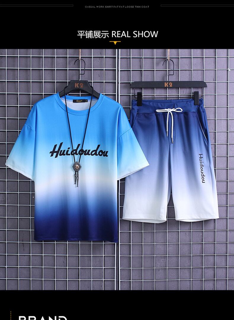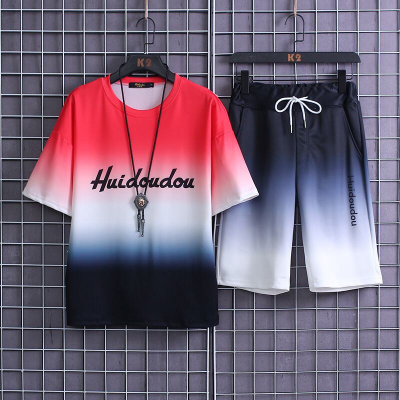 Ice silk short-sleeved shorts suit men's sports and leisure ice-sensing t-shirt summer thin section slim half-sleeved tide brand 2-piece set サマー 夏物 ショーツ ブルマー スリム シルク Tシャツ doushi13392811696