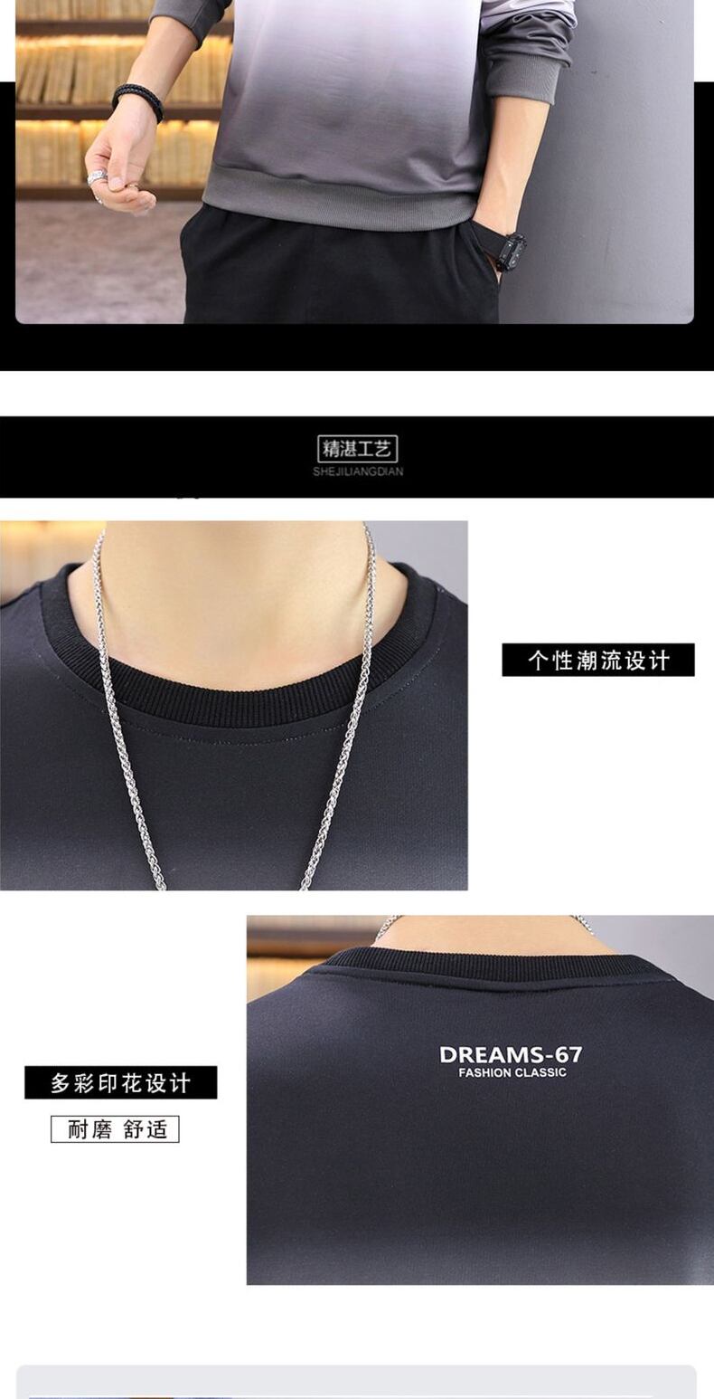 Men's Long Sleeve T-Shirt Youth Round Neck Gradient Loose Trend Sweater Versatile Print Student Autumn Jacket ロング 長袖 オータム 秋物 Oネック Tシャツ doushi44735404681