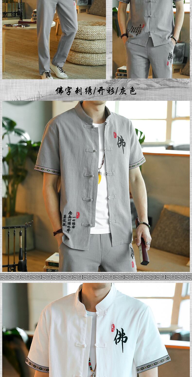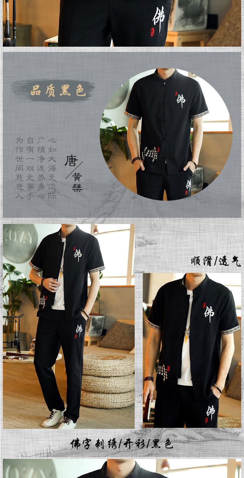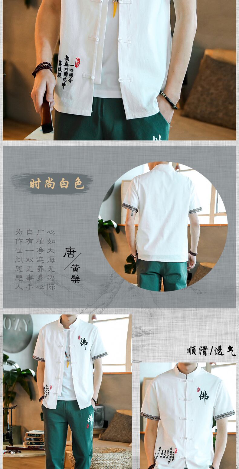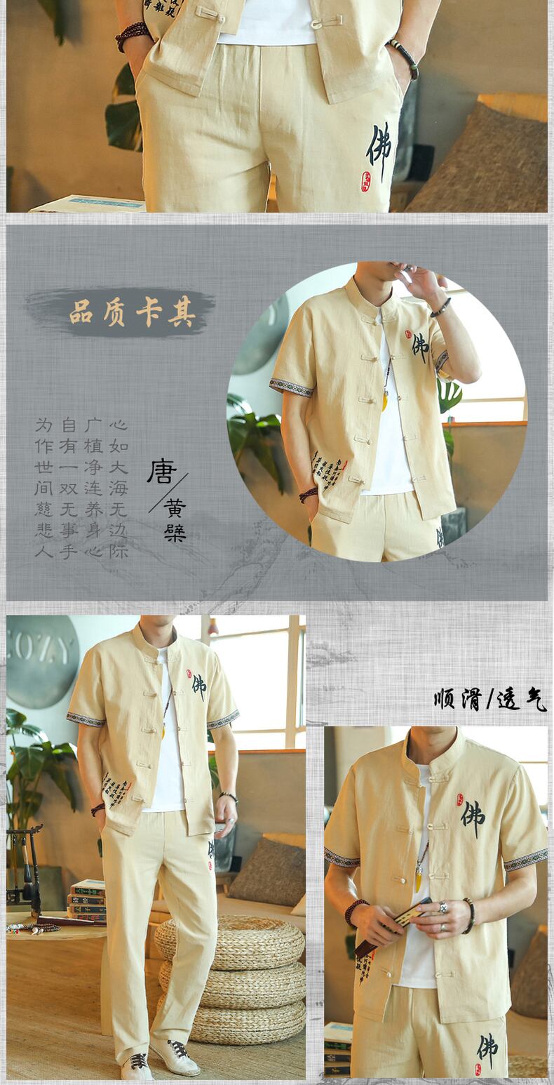 2022 new Chinese style men's summer linen suit men's cotton and linen short-sleeved t-shirt v Tang suit clothes thin retro コットン レトロ サマー 夏物 Tシャツ doushi96598407867