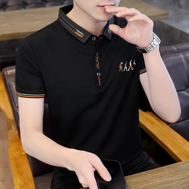 Summer shirt collar Polo shirt men's lapel ice silk short-sleeved t-shirt men's trend summer tops and t-shirts シャツ サマー 夏物 シルク Tシャツ doushi49194947359