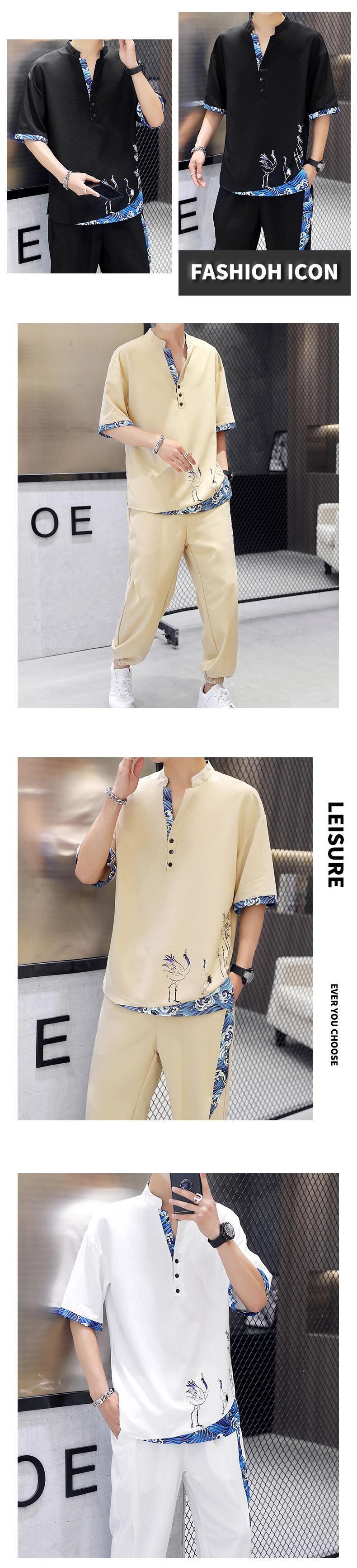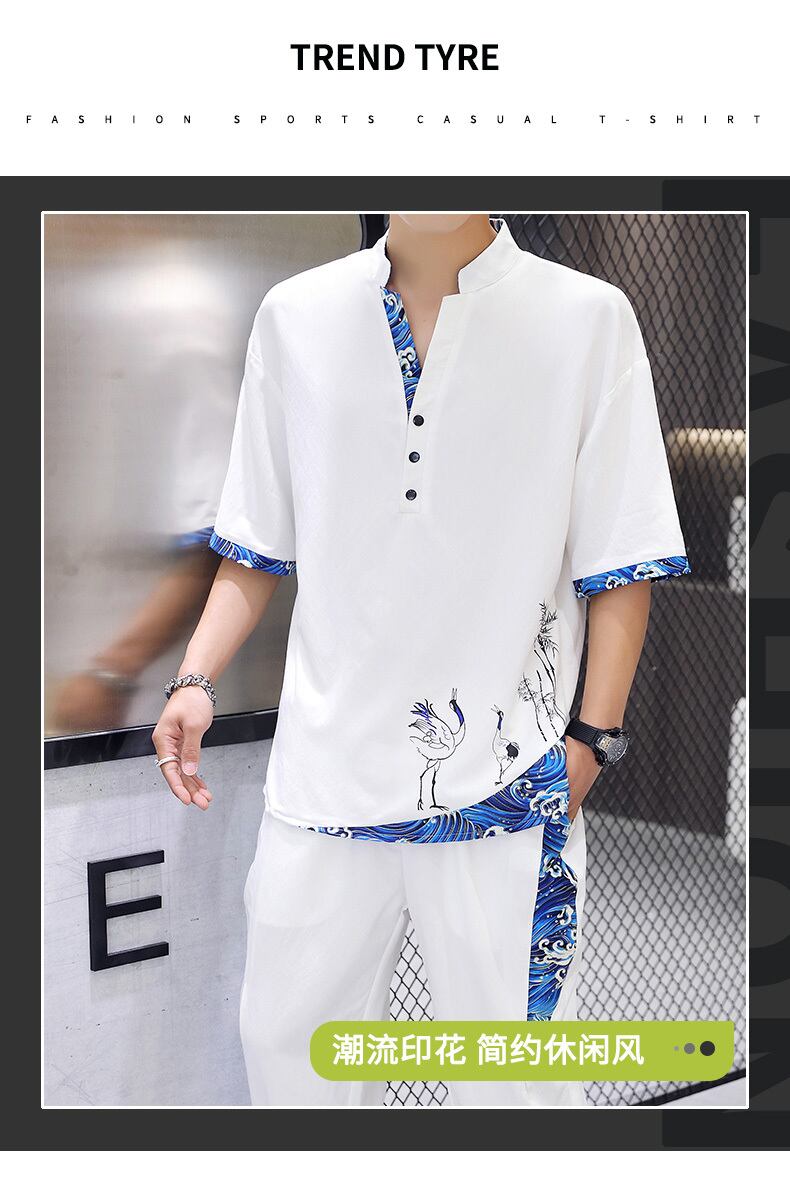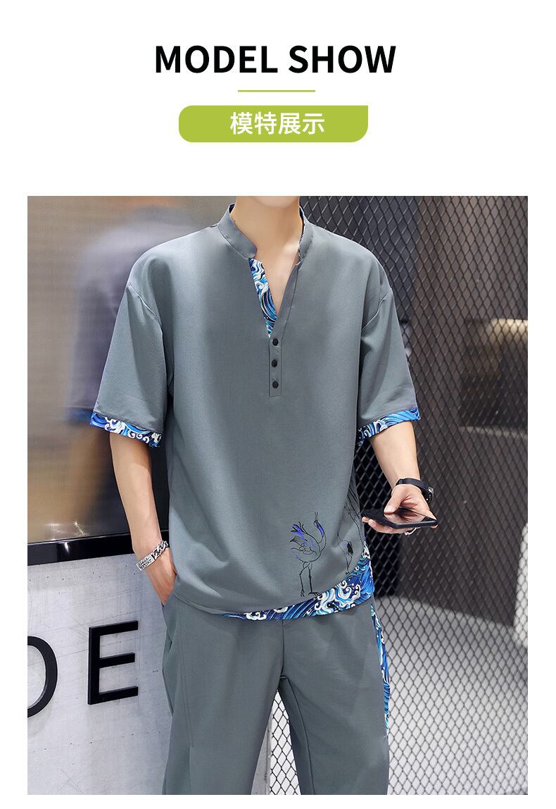Summer men's clothes casual Chinese style suit Buddhist trend summer men's short-sleeved pants set with handsome カジュアル サマー 夏物 doushi69111588282