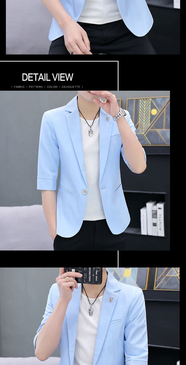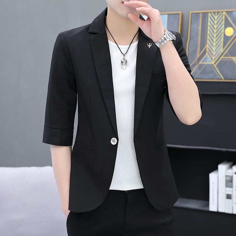 suit men's solid color small Western body fitting version tide three-quarter sleeves single western thin ice silk summer coat サマー 夏物 シルク ソリッドカラー doushi88415140487