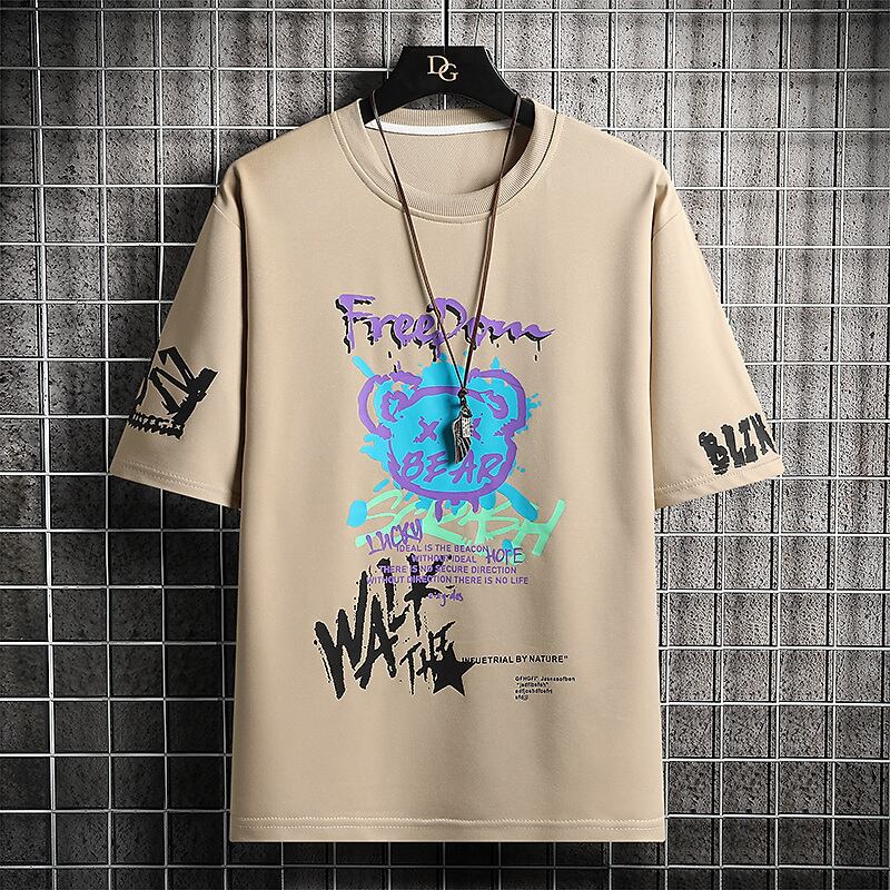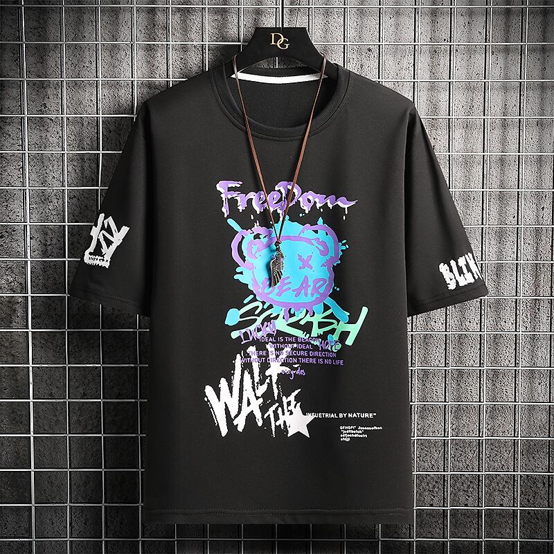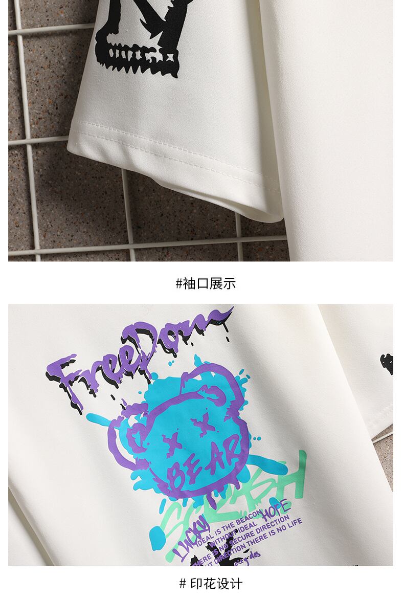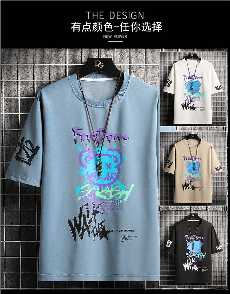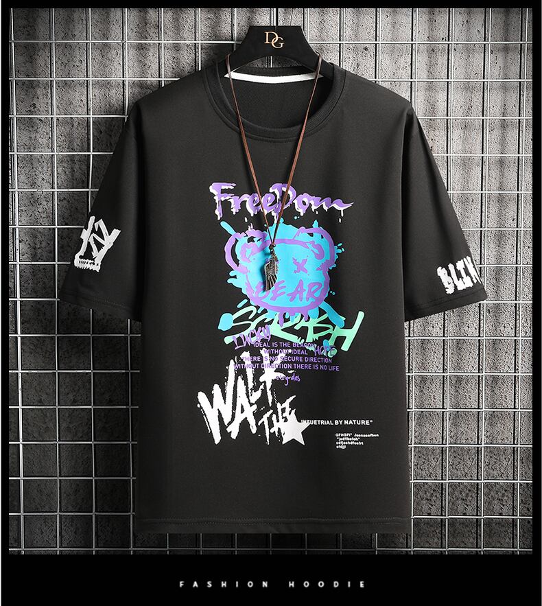 National tide printing short-sleeved men's tide brand loose summer new ice silk half-sleeved t-shirt men's quick-drying T-shirt top clothes サマー 夏物 シルク Tシャツ doushi22486837566