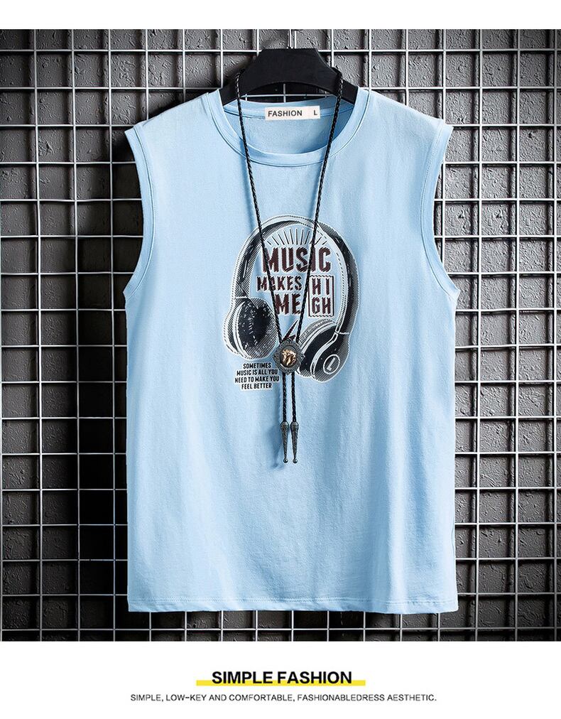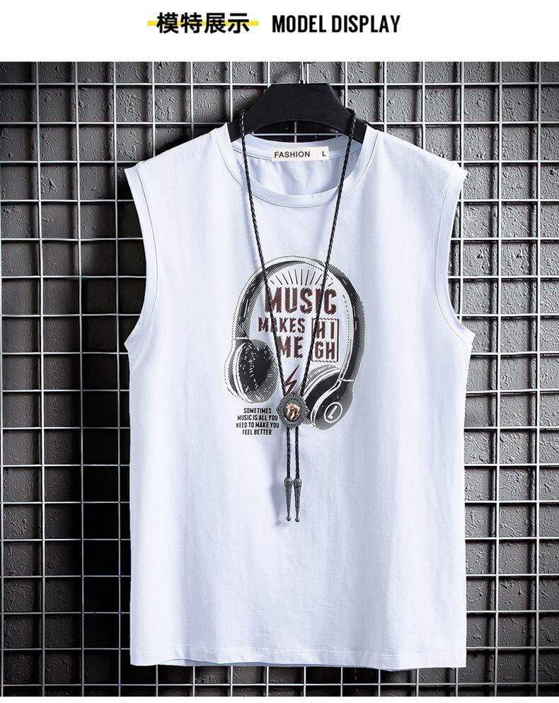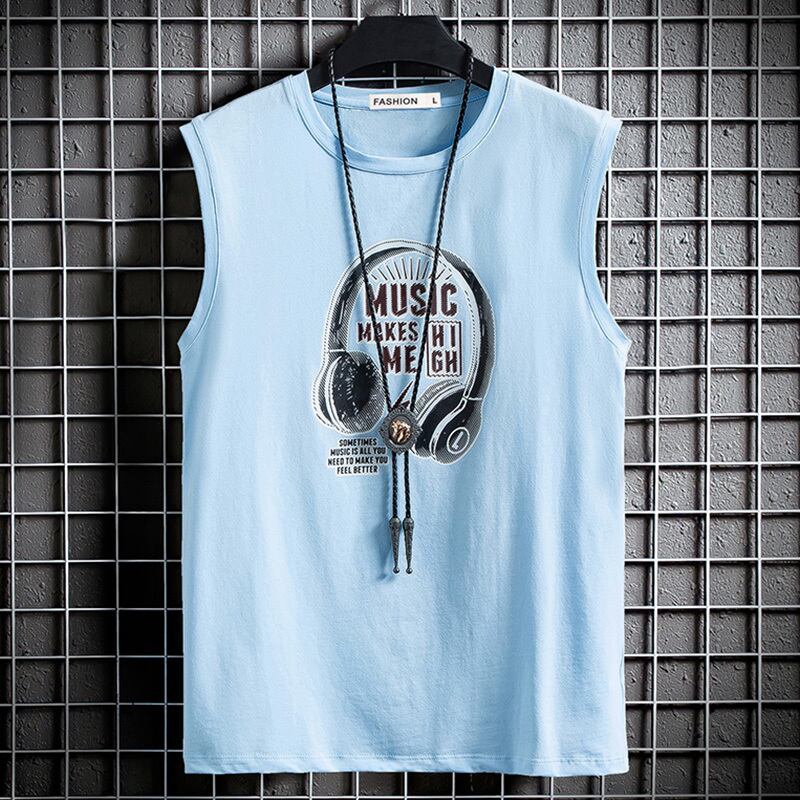 Vest men's ins tide brand wear waistcoat sports summer men's cotton bottoming shirt printing student sleeveless T-shirt コットン サマー 夏物 ノースリーブ Tシャツ doushi17529650512