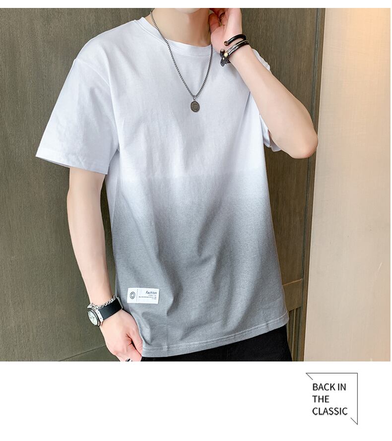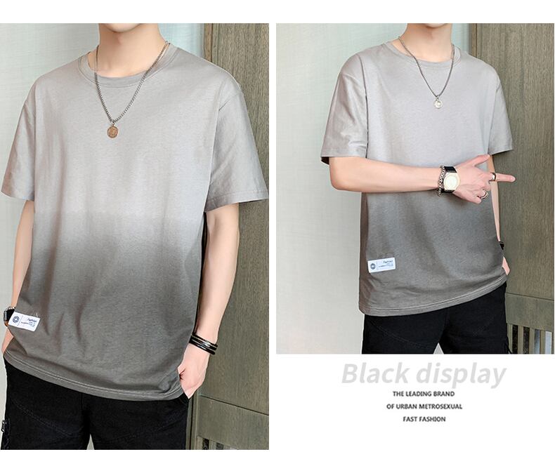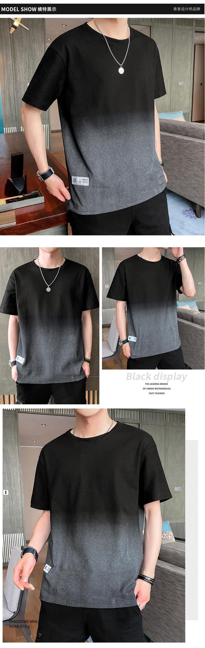Summer men's loose short-sleeved t-shirt ins cotton gradient t-shirt large size men's cotton half-sleeve top clothes tide brand コットン 大きめサイズ サマー 夏物 Tシャツ doushi50531702225
