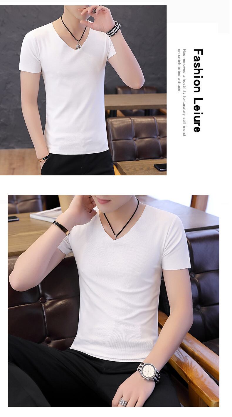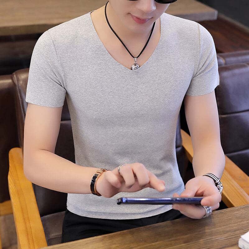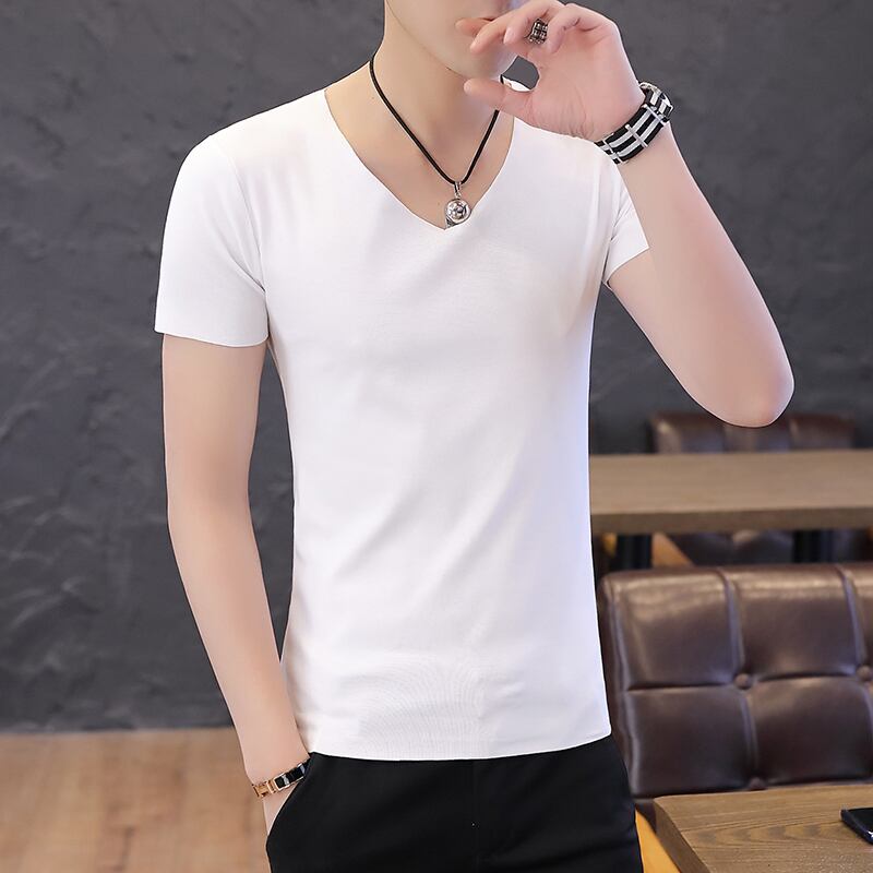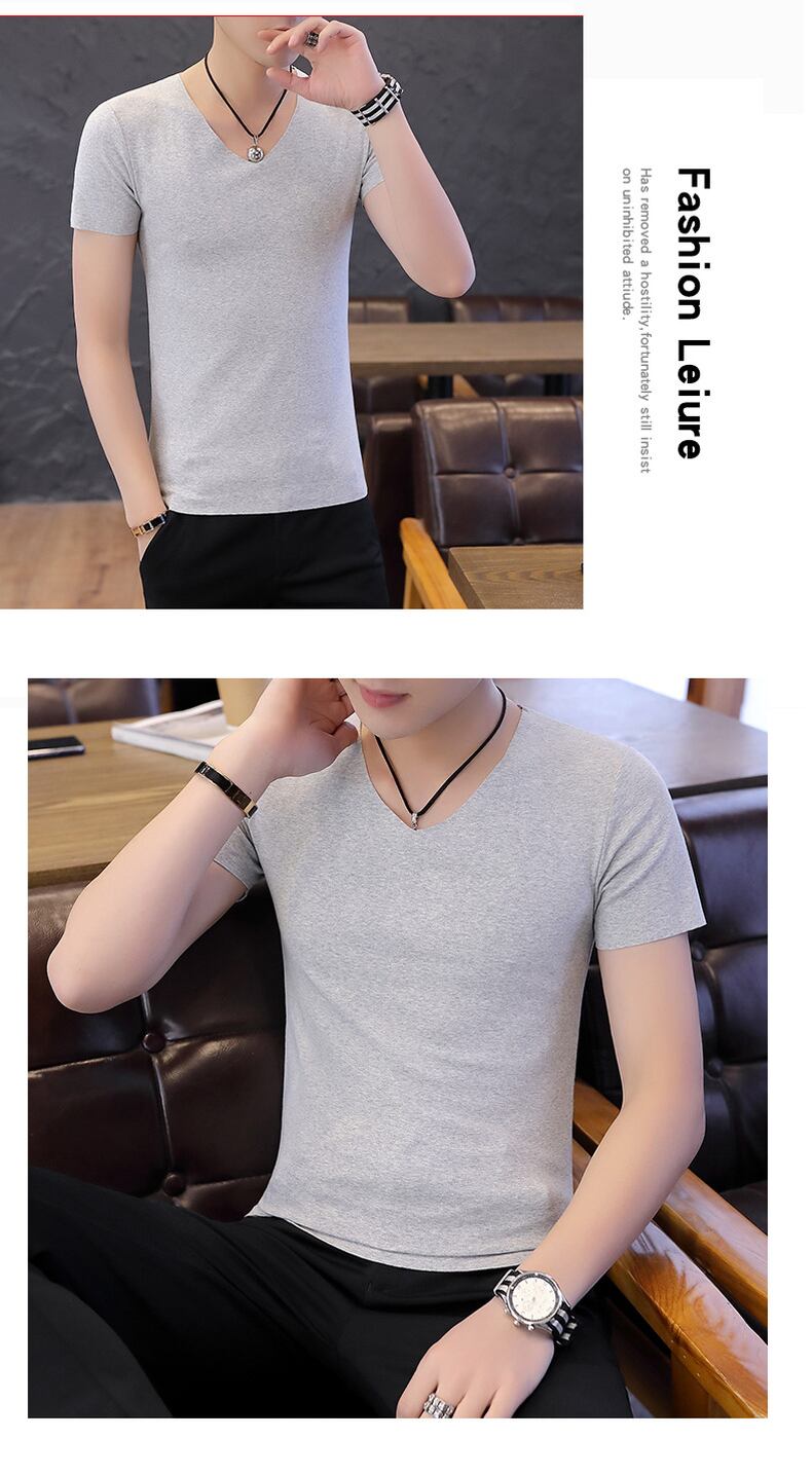 Short-sleeved t-shirt men's v-neck seamless slim half-sleeve summer sports thin cotton t-shirt men's bottoming shirt underwear コットン サマー 夏物 Vネック スリム Tシャツ doushi69664766911