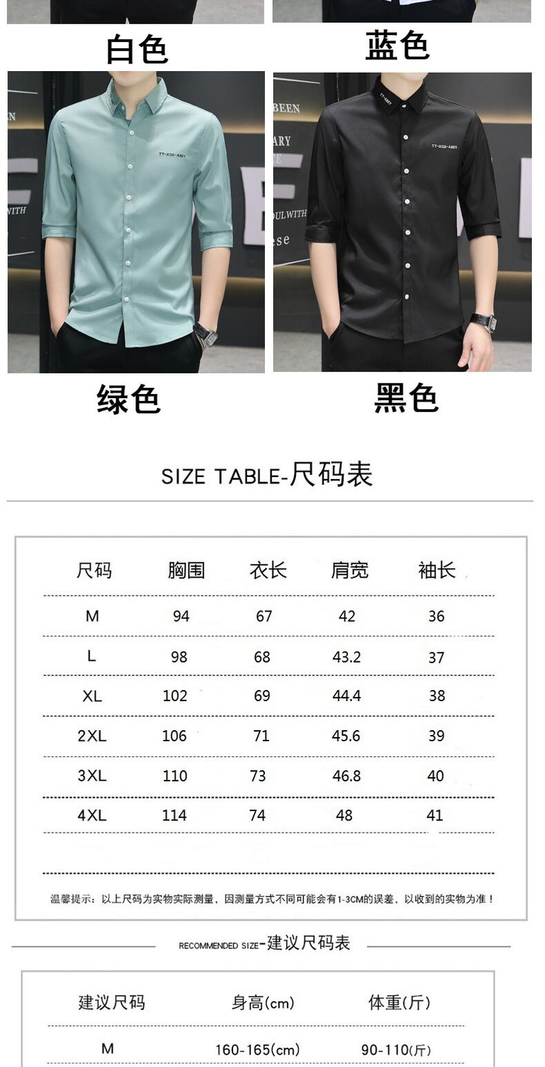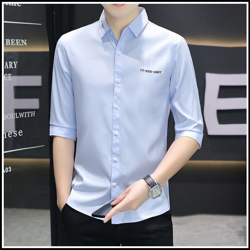 Shirt men's short-sleeved slim version men's casual three-quarter sleeve shirt trendy handsome half-sleeved summer mid-sleeve inch shirt カジュアル サマー 夏物 スリム doushi22077505984