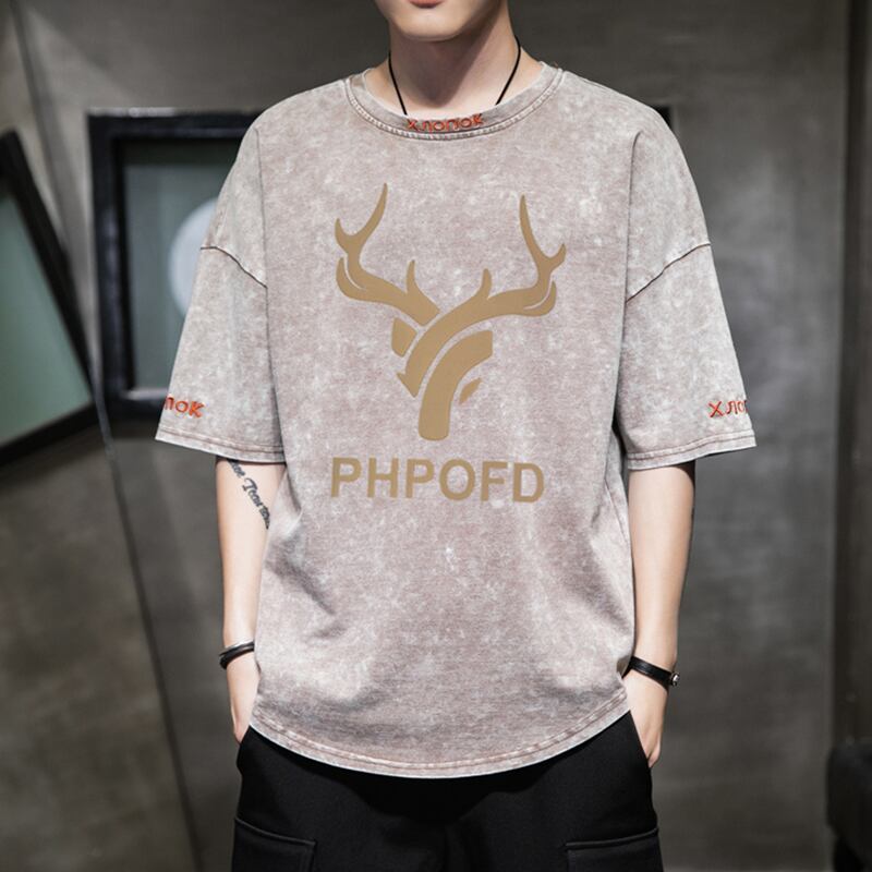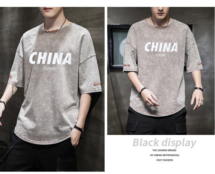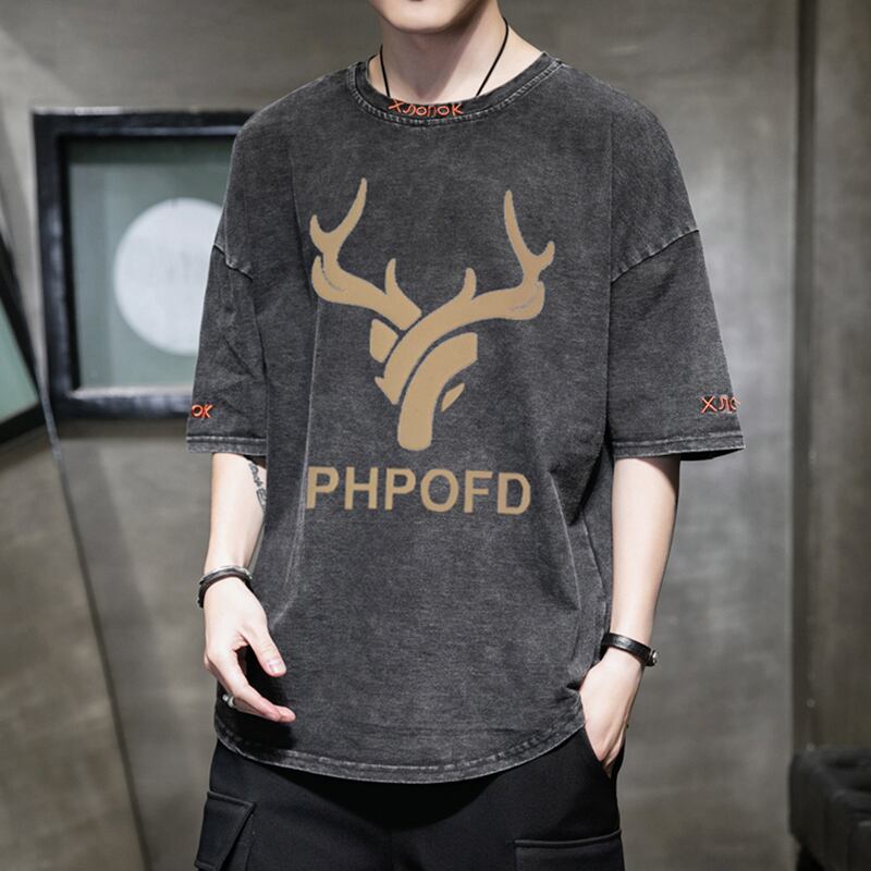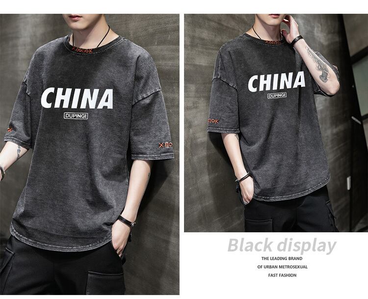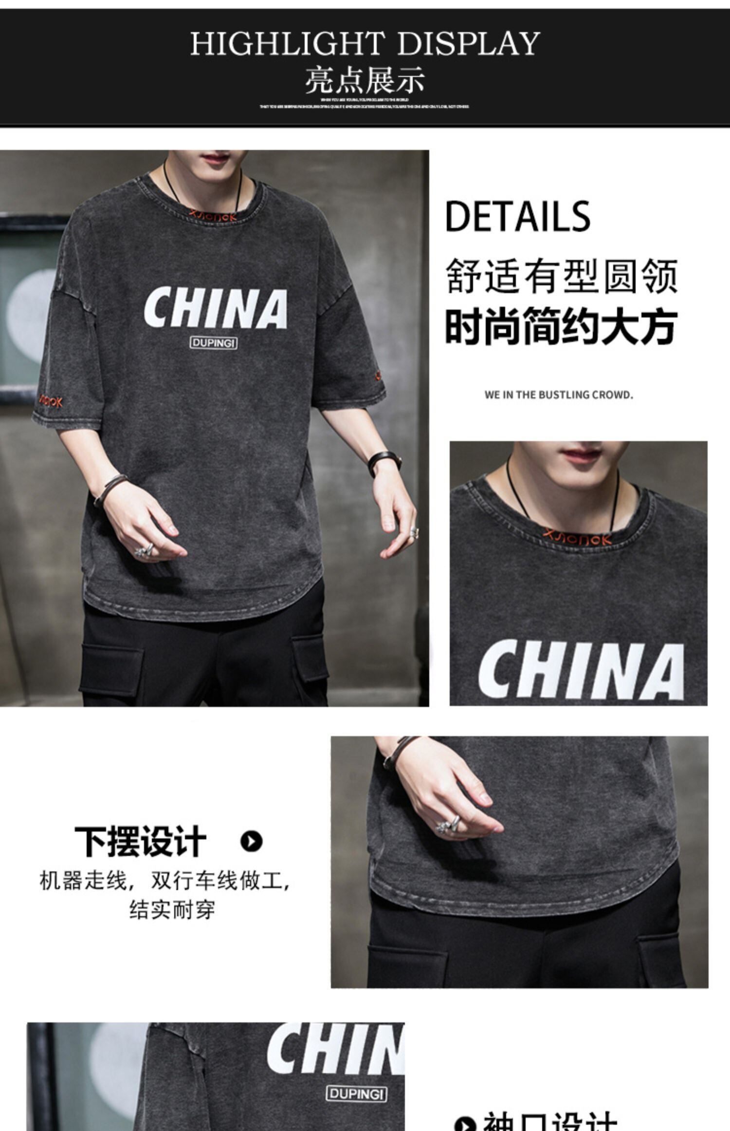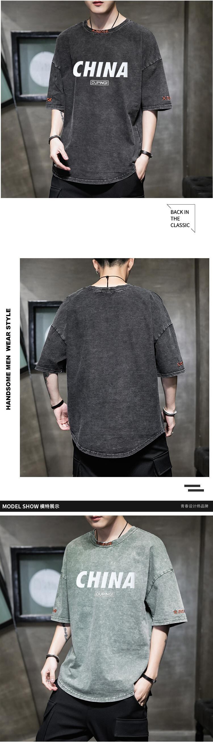 Denim short-sleeved t-shirt men's summer loose 2022 new trendy brand retro sweater cotton top clothes half-sleeved shirt コットン レトロ サマー 夏物 Tシャツ doushi48441828139