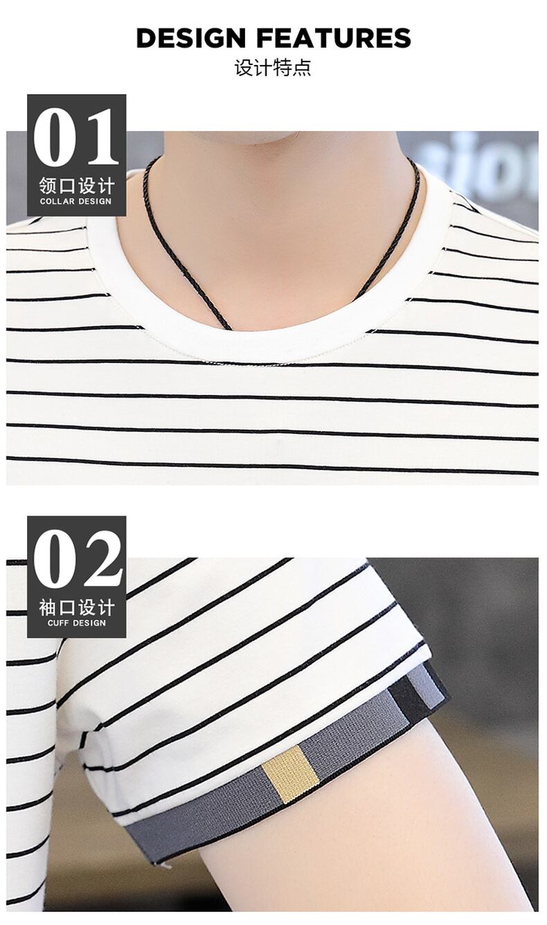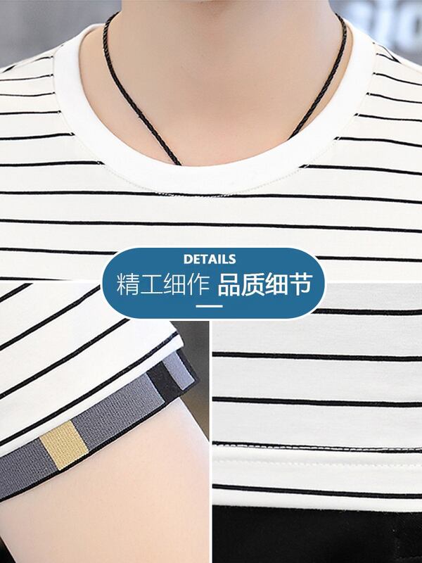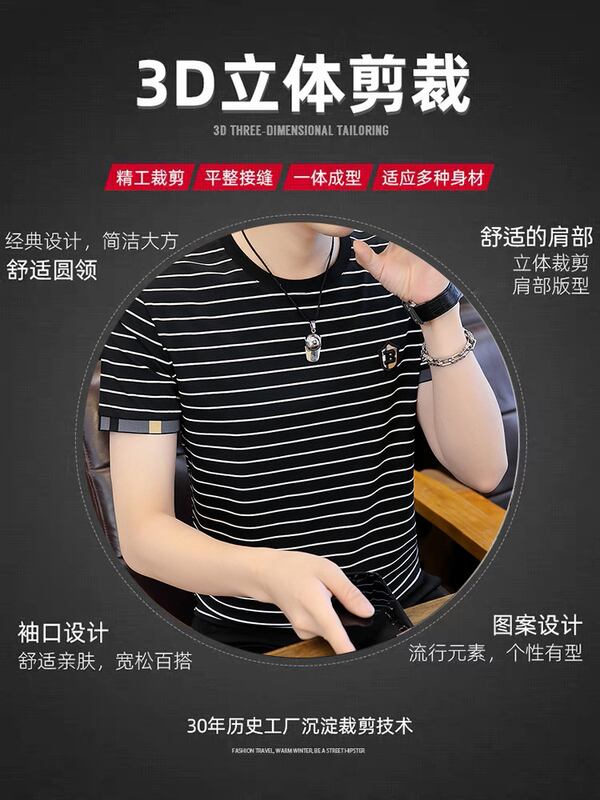 Men's t-shirt short-sleeved striped 2022 summer new trend loose cotton half-sleeved tide brand all-match men's summer clothes コットン サマー 夏物 ストライプ Tシャツ doushi50142858274