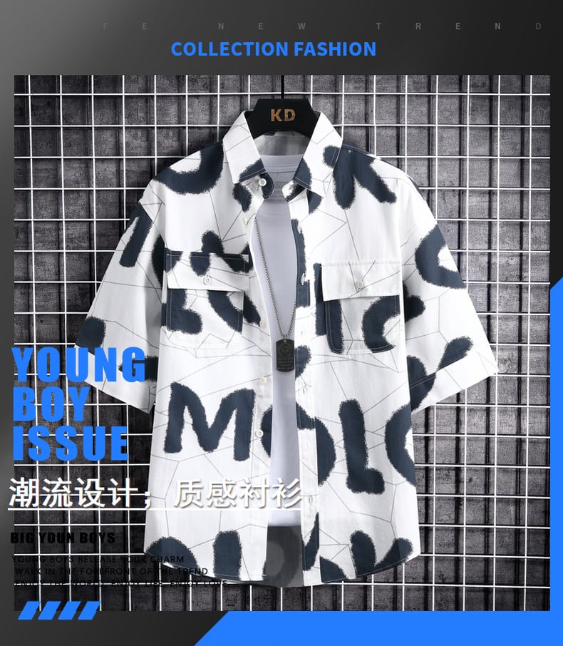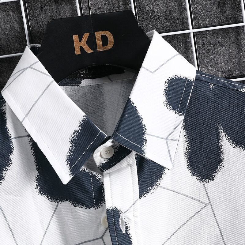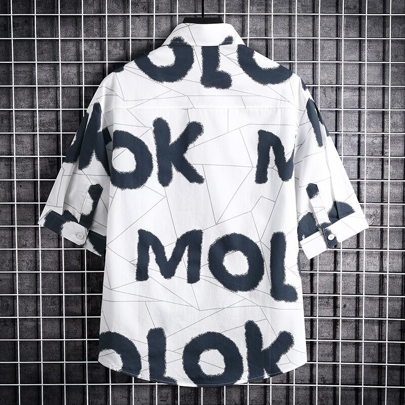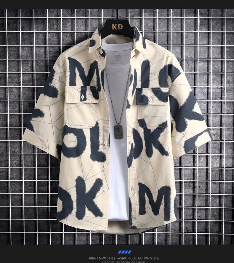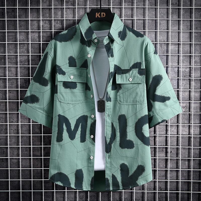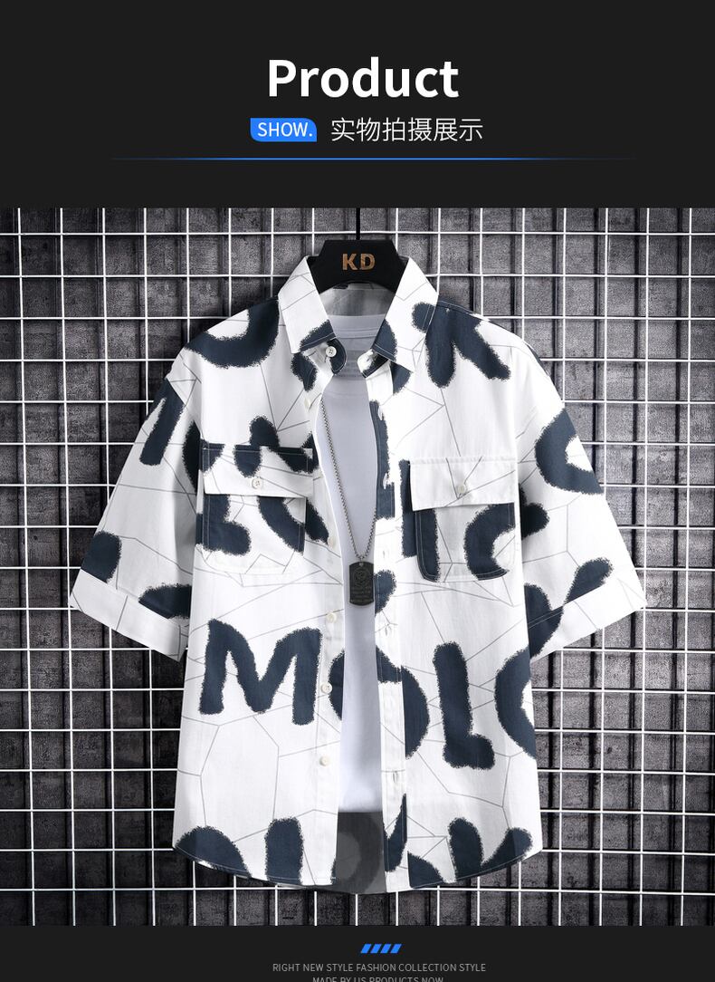 2022 summer short-sleeved cotton shirt men's three-quarter sleeve trend five-point mid-sleeve shirt thin section all-match loose floral コットン サマー 夏物 花柄 doushi826764394