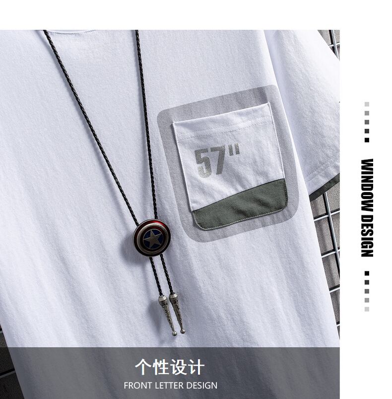 Fake two-piece t-shirt men's personality pocket half-sleeve top clothes summer loose letter printing short-sleeved t-shirt men サマー 夏物 Tシャツ doushi66501251625