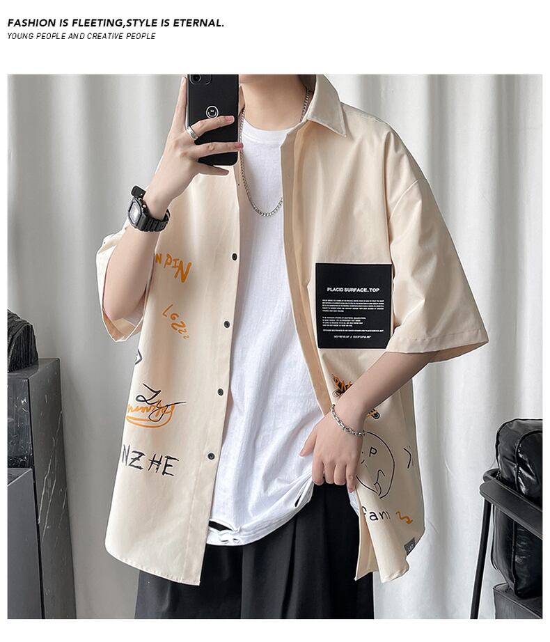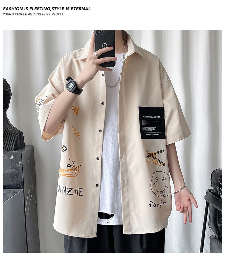 Hong Kong style Hawaiian short-sleeved shirt men's large size loose couple half-sleeved inch shirt tide brand summer tooling shirt men 大きめサイズ サマー 夏物 doushi11576258615