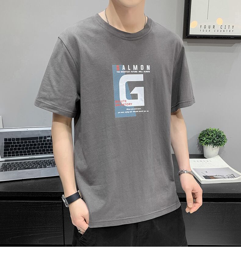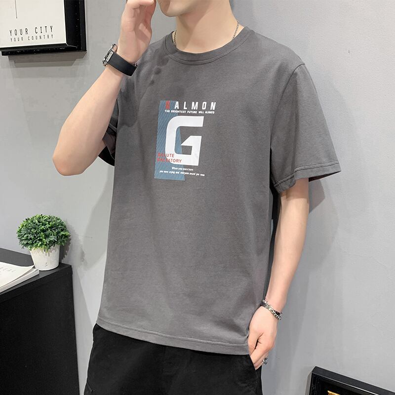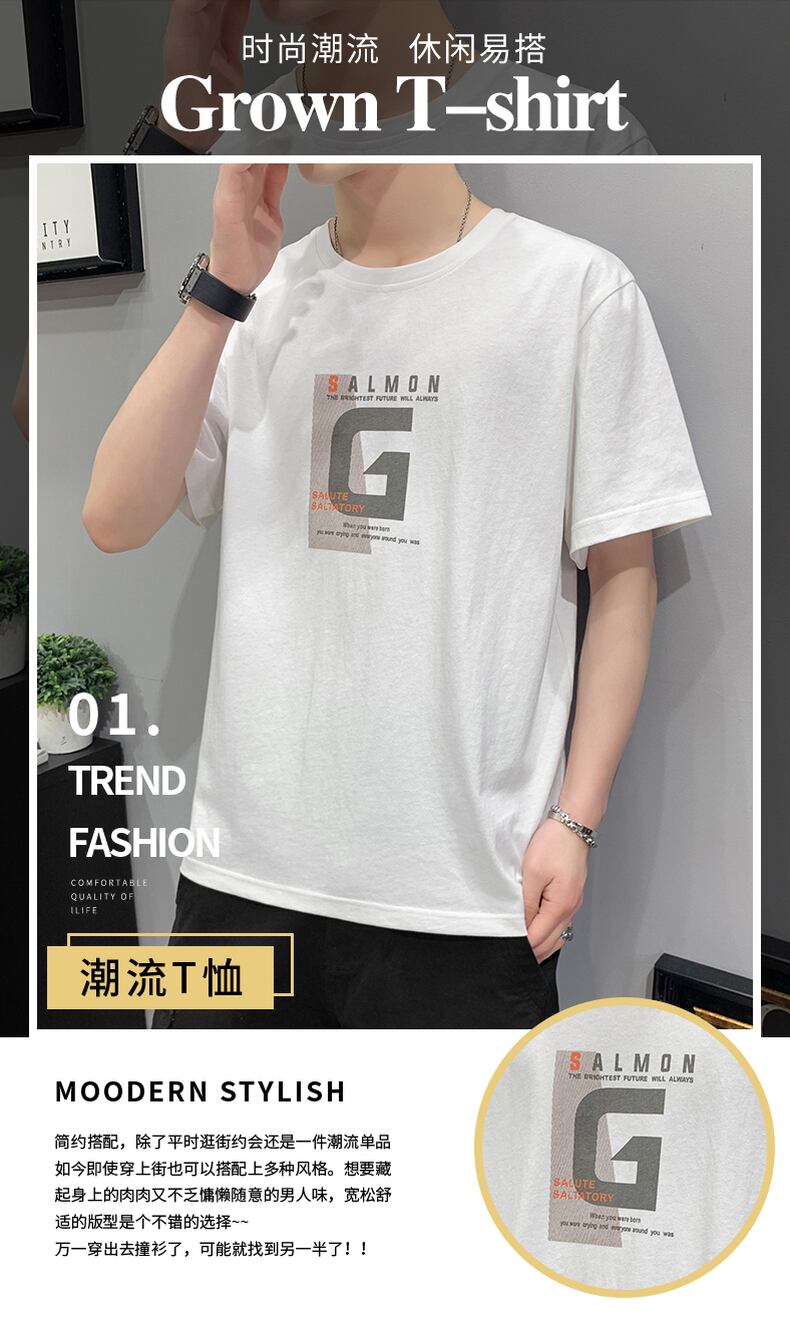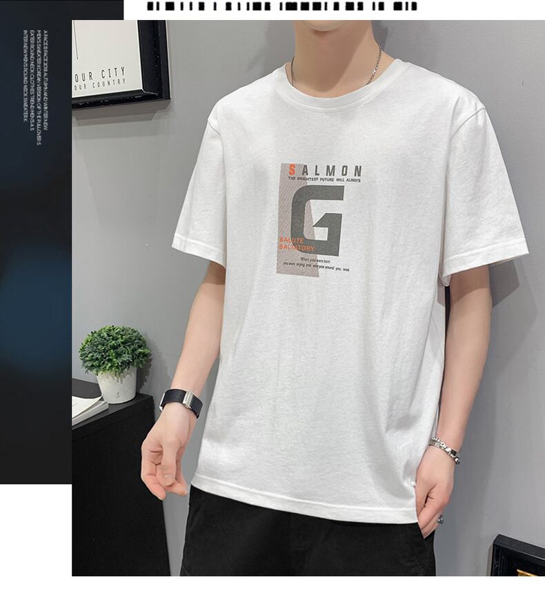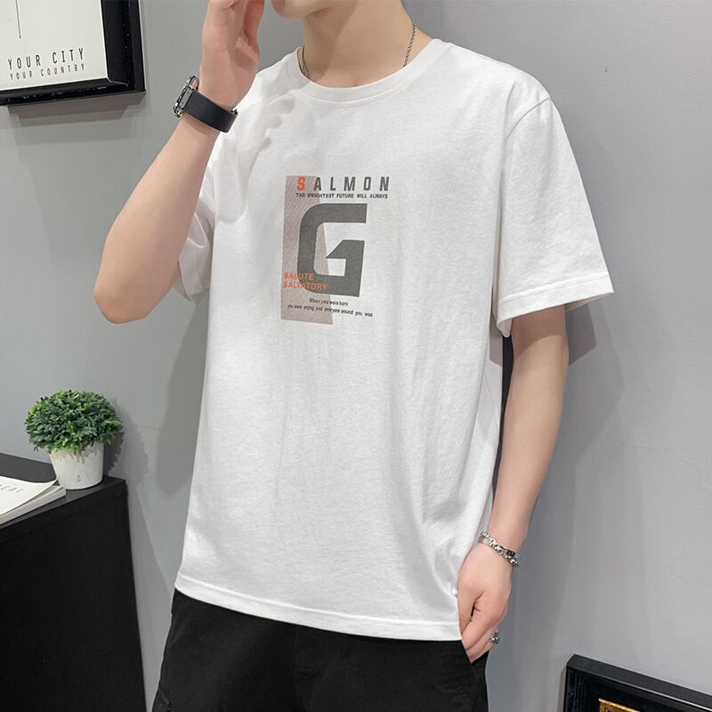 2022 new summer white short-sleeved t-shirt men's tide brand cotton summer boys' clothes trendy half-sleeved loose ホワイト コットン サマー 夏物 Tシャツ doushi68655334961